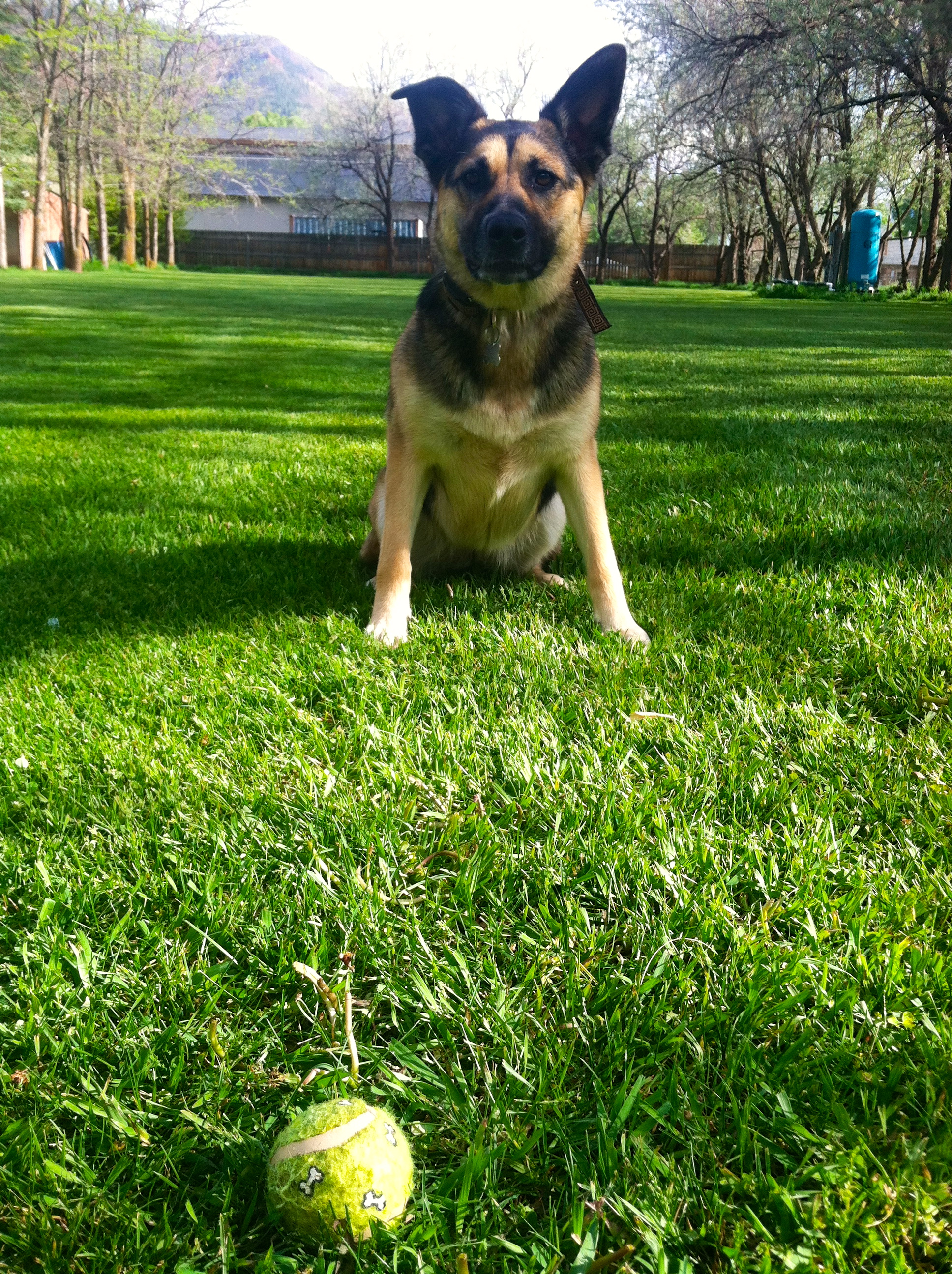 Cholula is in L-O-V-E with the yard at Grandma’s house. And this ball.