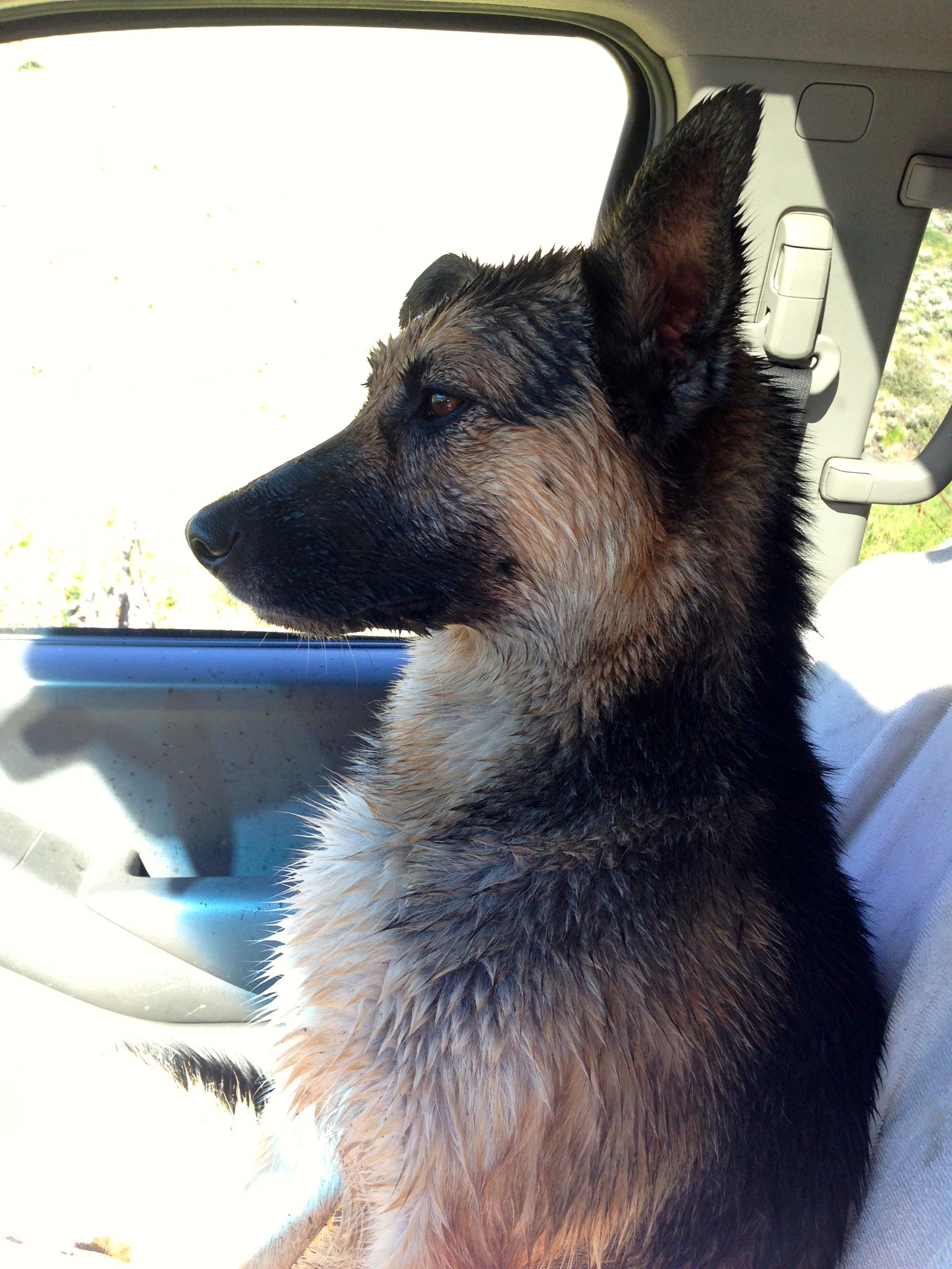 Post-swim contentment, sitting shotgun.