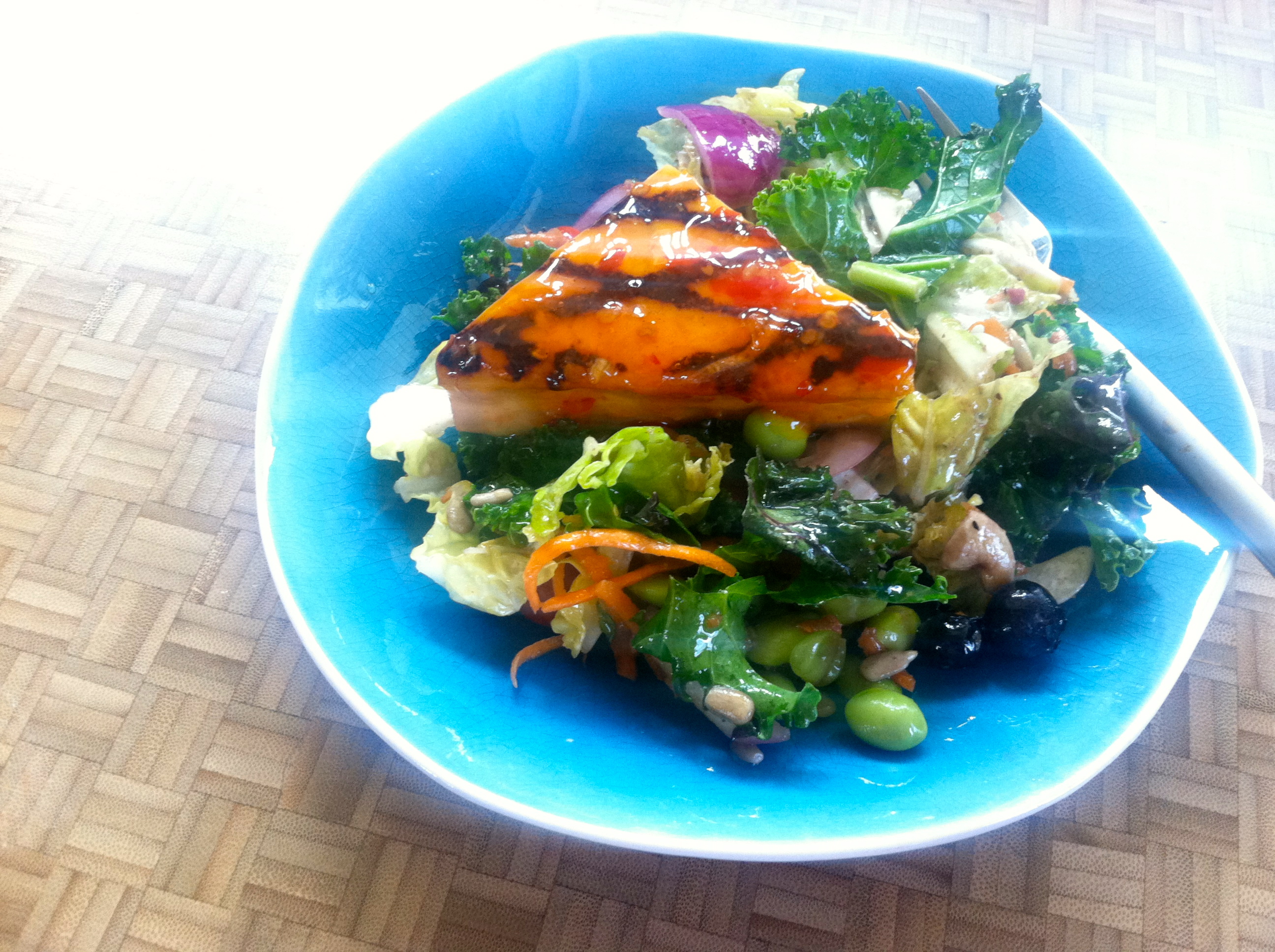 Healthy lunch: “Superfoods” salad and sweet chili tofu.