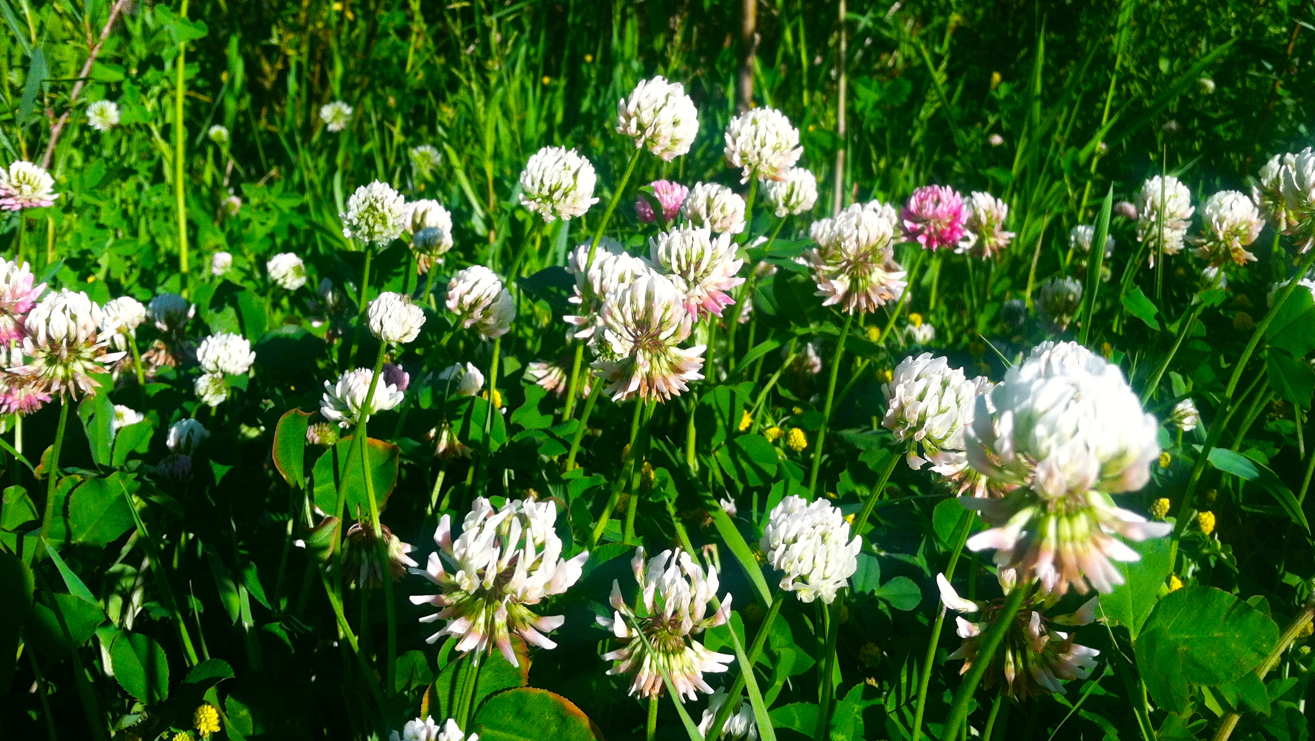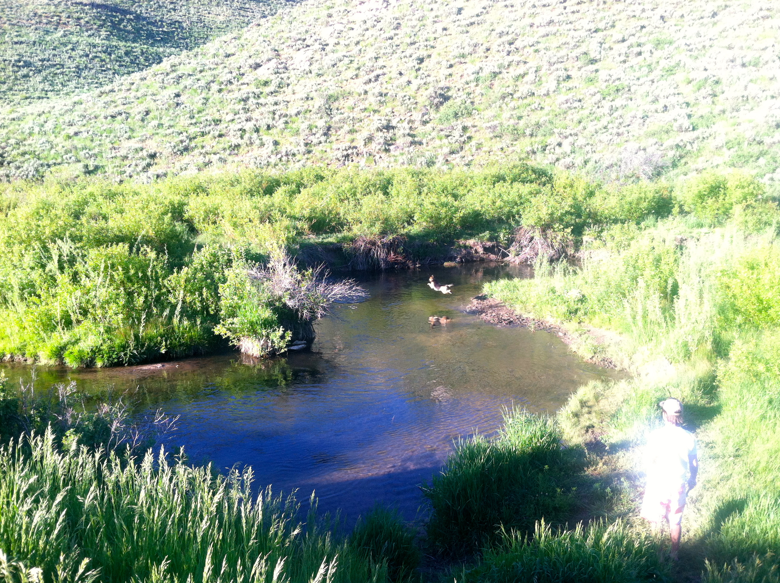 Wildflowers everywhere and a happy, wet dog.