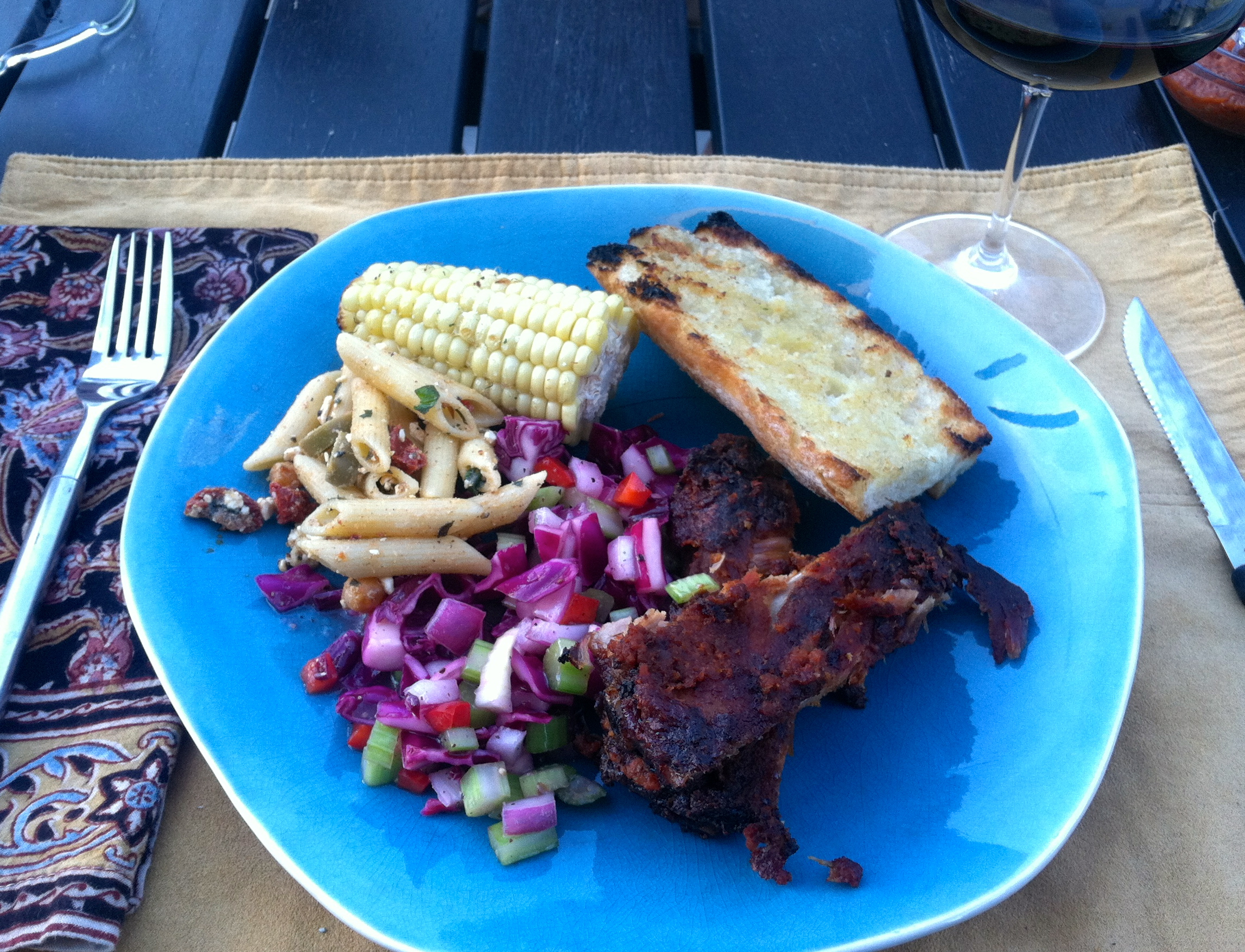 Last night, we took full advantage of the longest day of the year and camped out in the backyard from happy hour until the sun went down after 9:00pm. John grilled up some ribs and my dad made his famous Italian coleslaw. YUM!