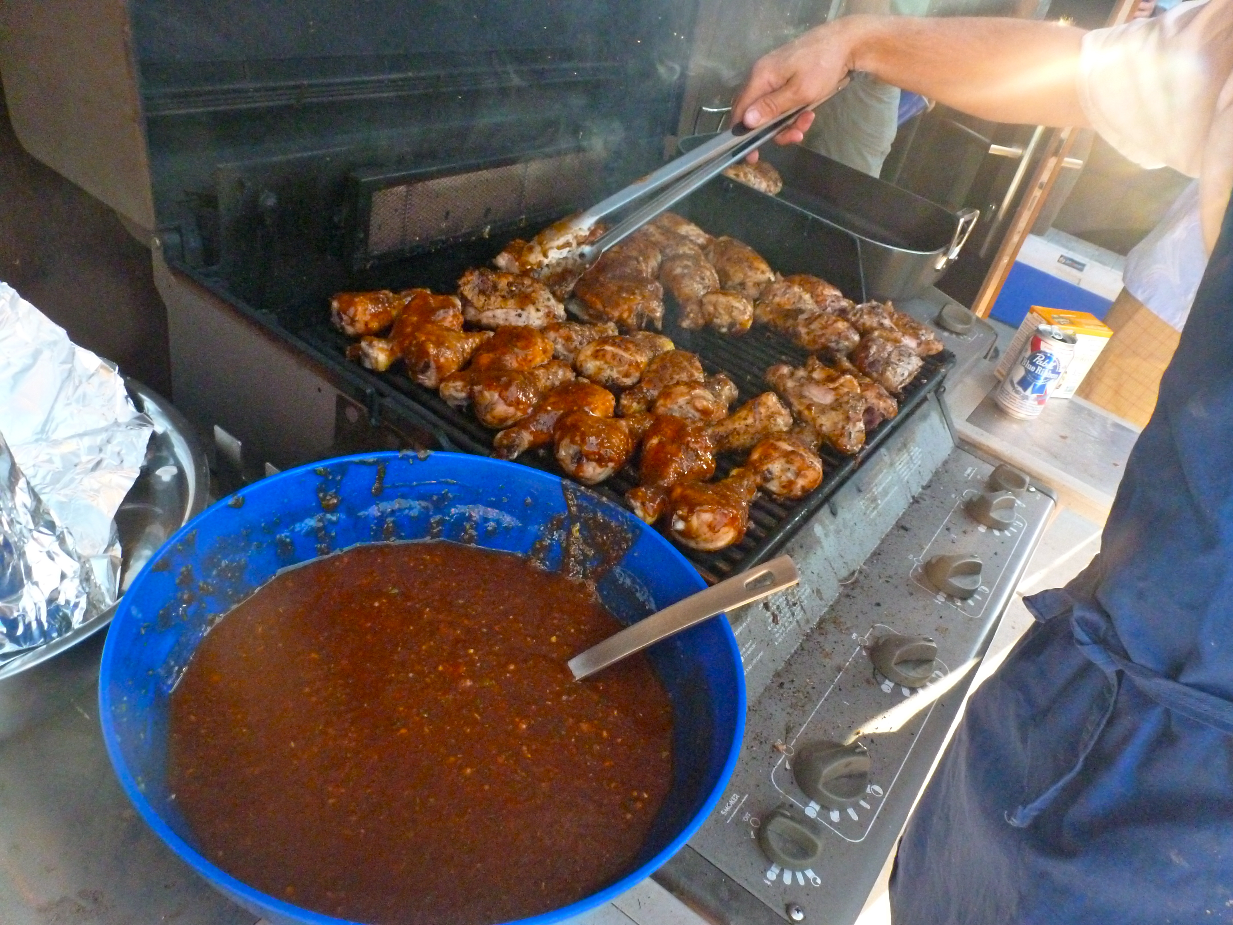 This weekend, John and I are hosting our second annual summer blow-out, and the “we’ll be there” RSVPs keep rolling in. There’s nothing like a big event on the calendar to really kick us into high gear with house projects. The house is clean, the weeds are pulled, and the yard looks great. Last year, we hadn’t landscaped yet, so the shindig was mostly held in a dirt lot. John made a huge batch of his famous BBQ chicken, and there was plenty to eat and drink. Here are some photos from last year– it was a blast!
