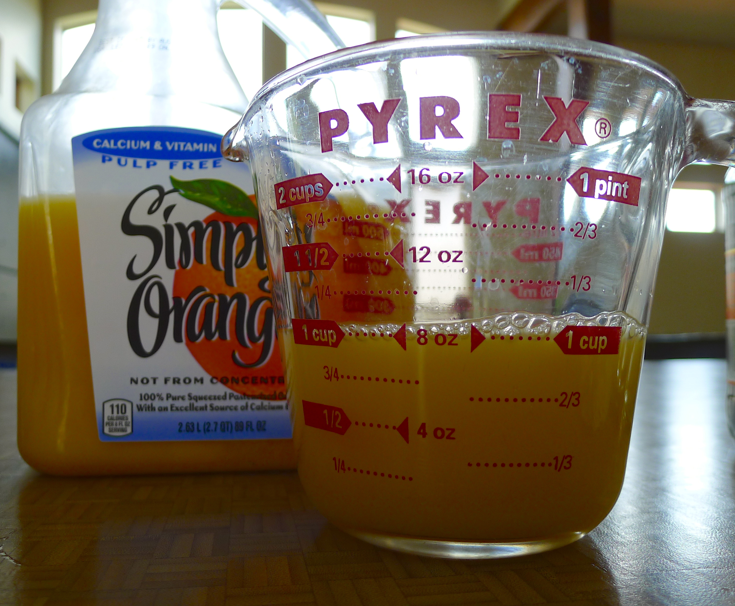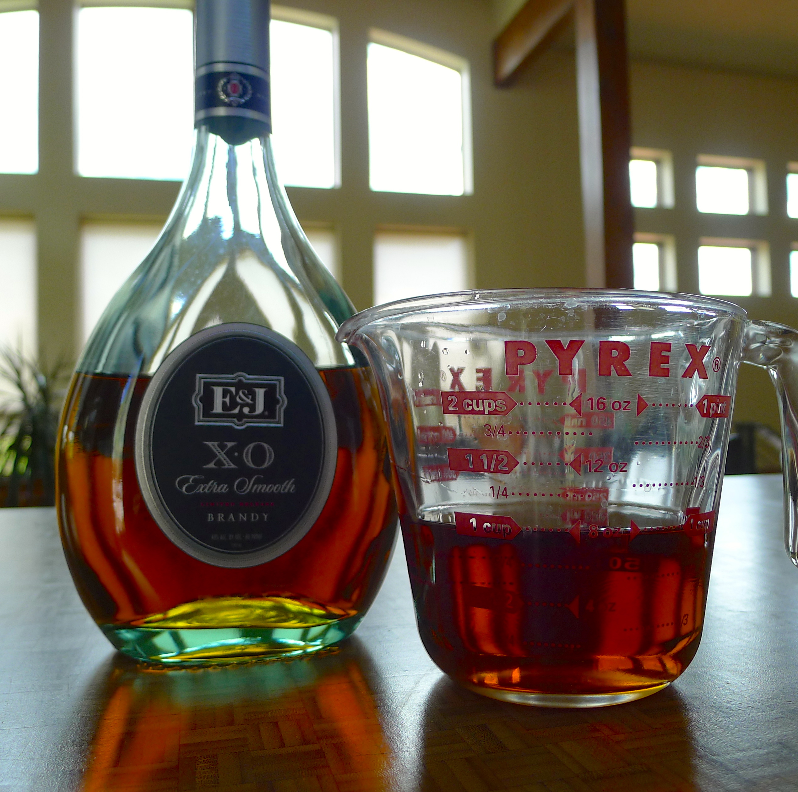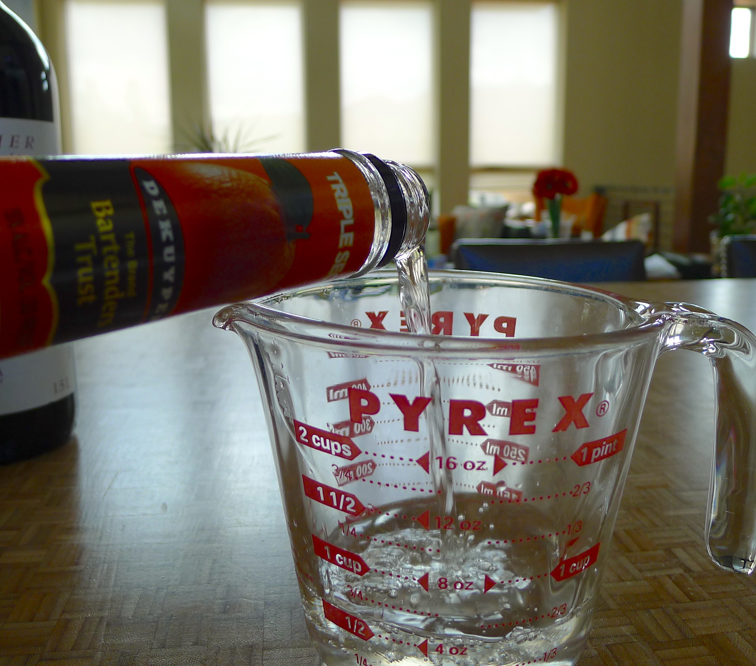 Next came the brandy, then the Triple Sec. It seems like a lot of alcohol when you use a Pyrex measuring cup, but I reminded myself that I had a lot of thirsty friends coming over!