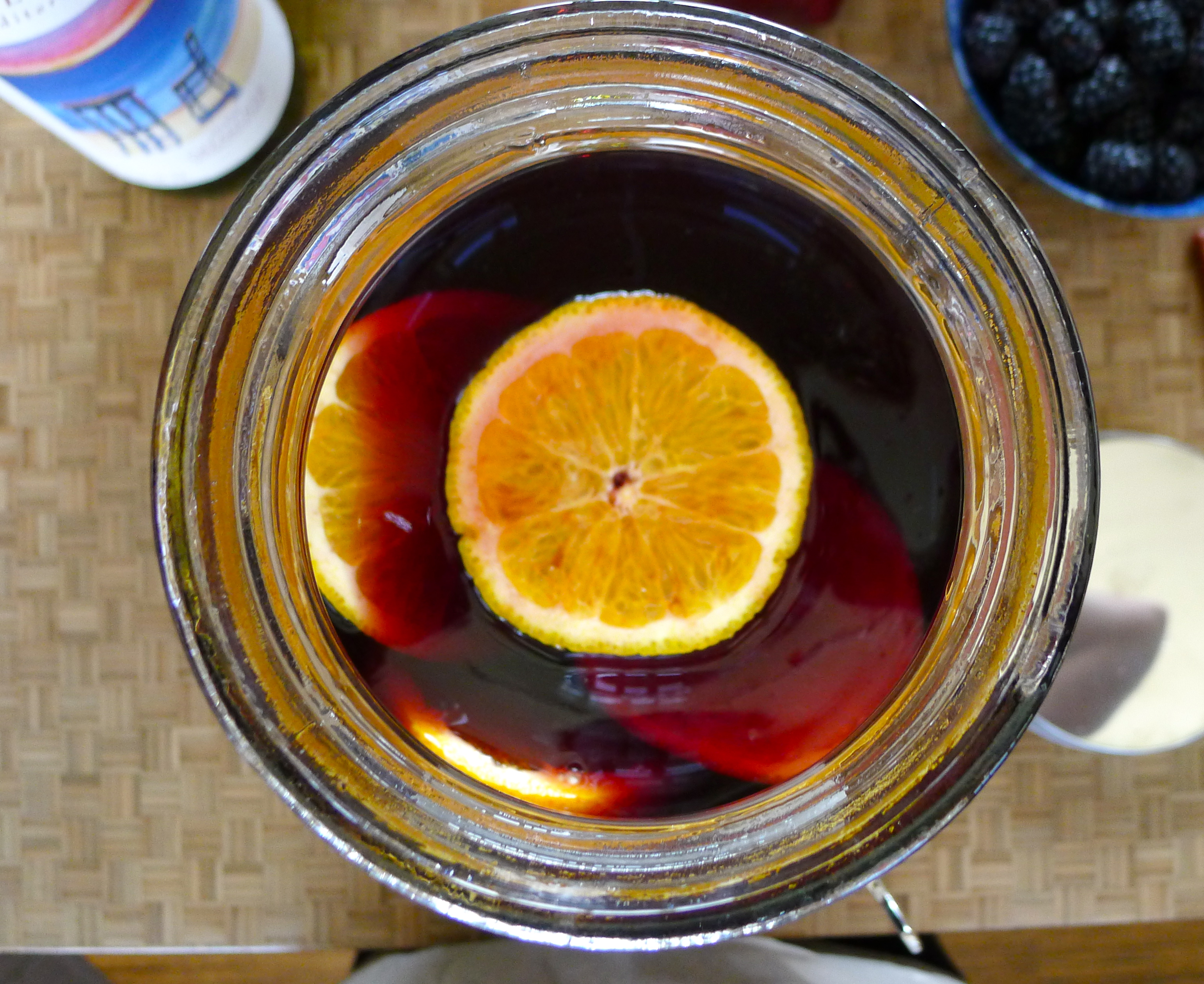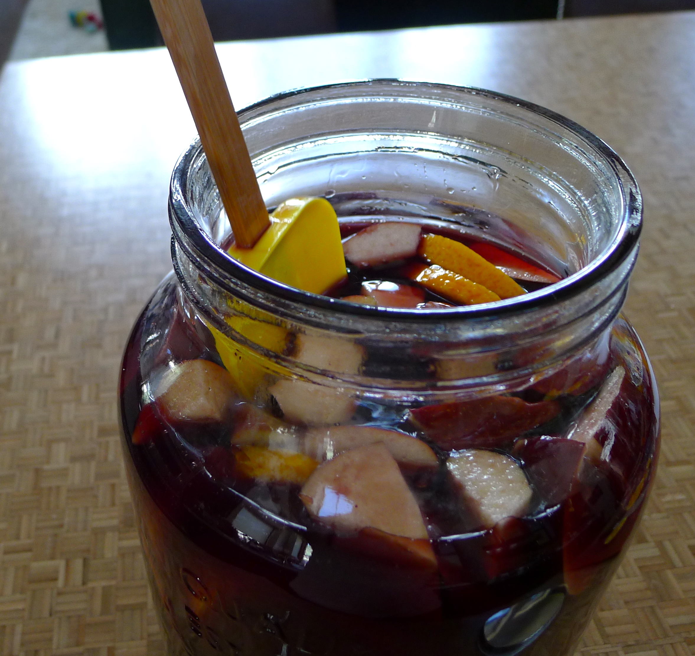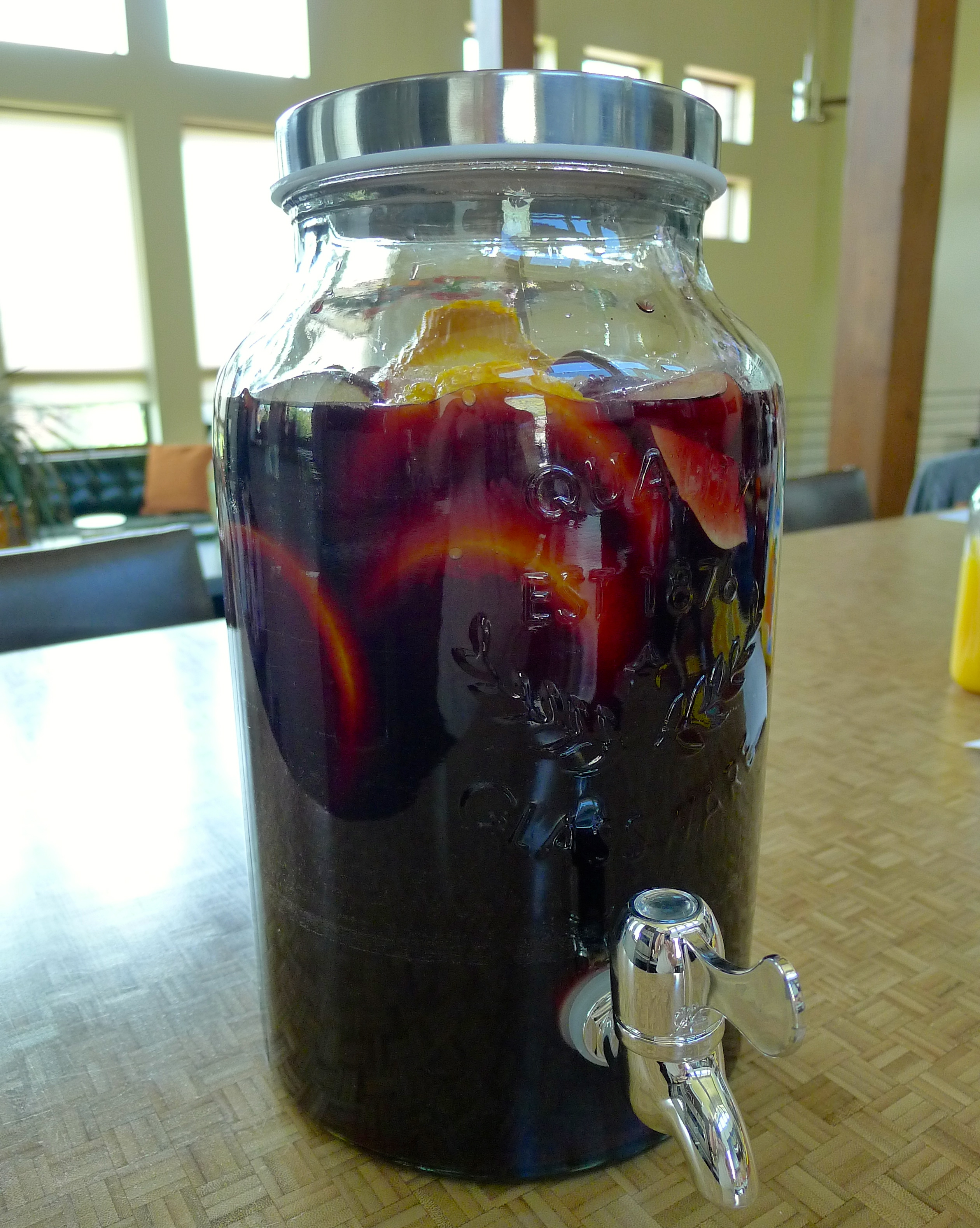 The sangrias were a huge hit. Even my neighbor, who is from Chile, couldn’t stop raving about them! I think next time, I’ll have a plate of fresh fruit next to the dispensers for a tasty garnish. Yum!