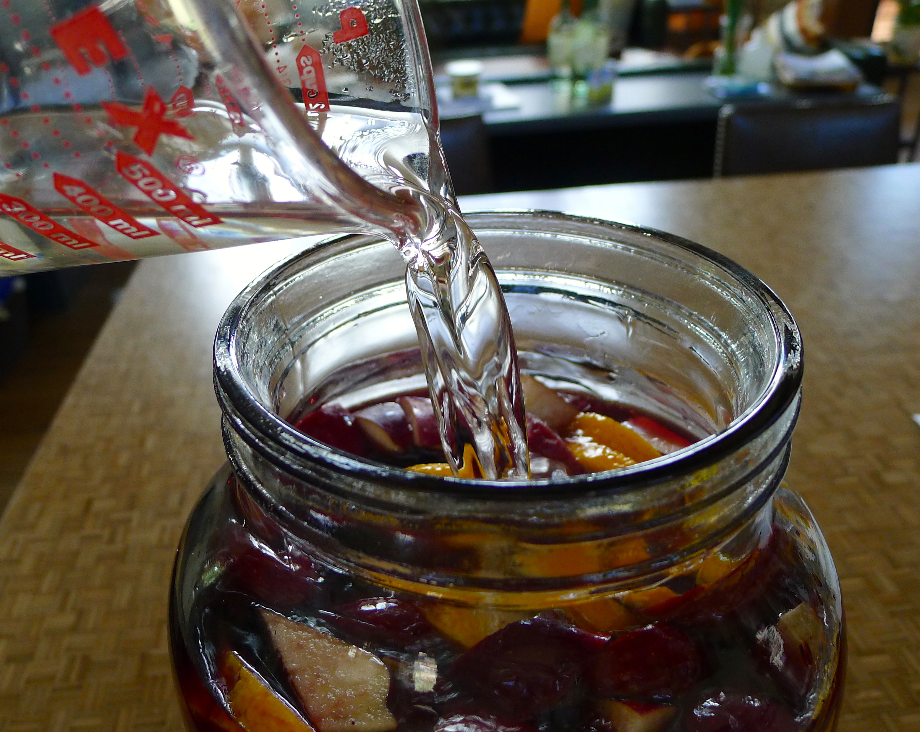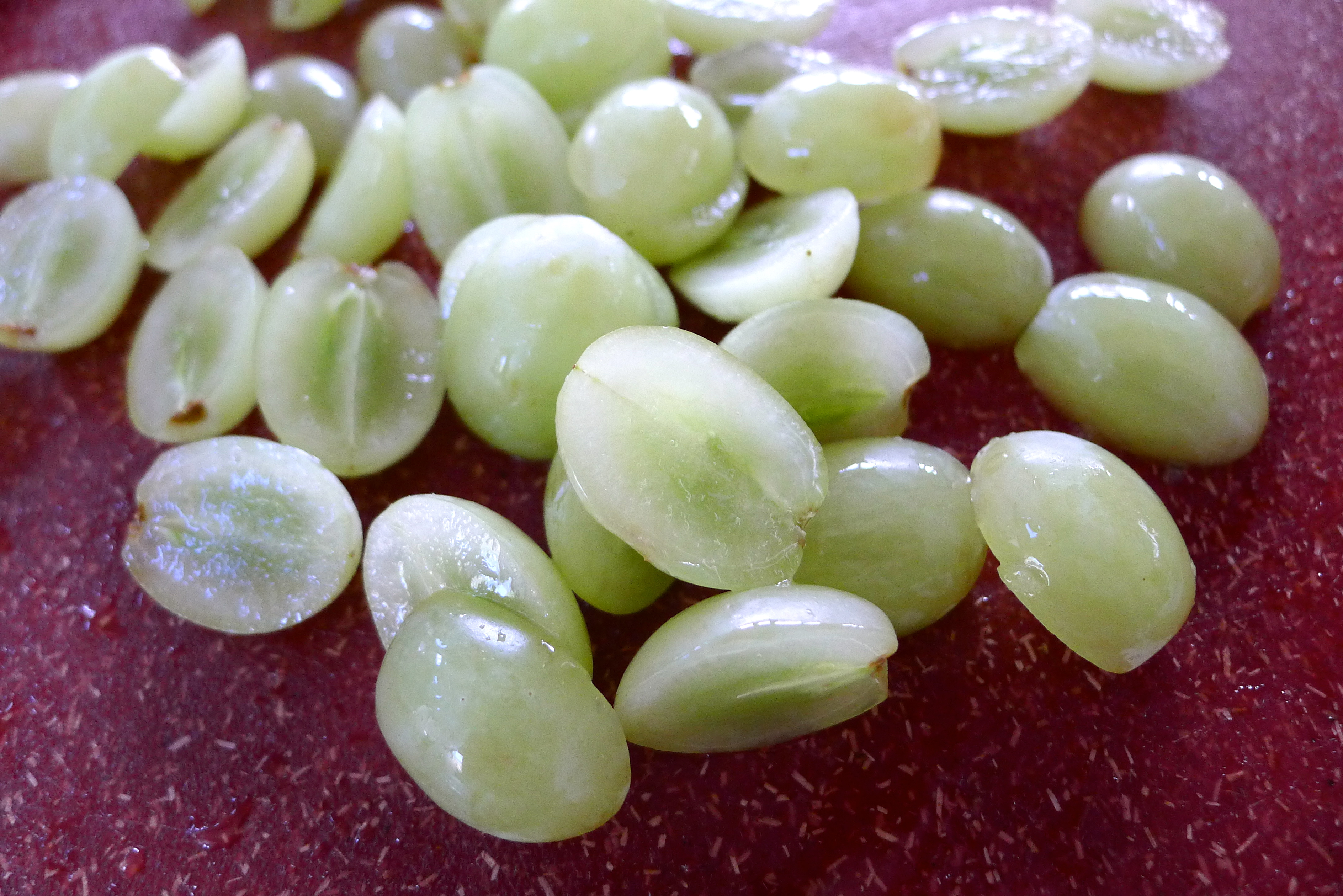 I sliced up a few apples and cut a whole bunch of grapes in half. I stirred the fruit and juices into the wine and checked my recipe… I was done. How easy is that?