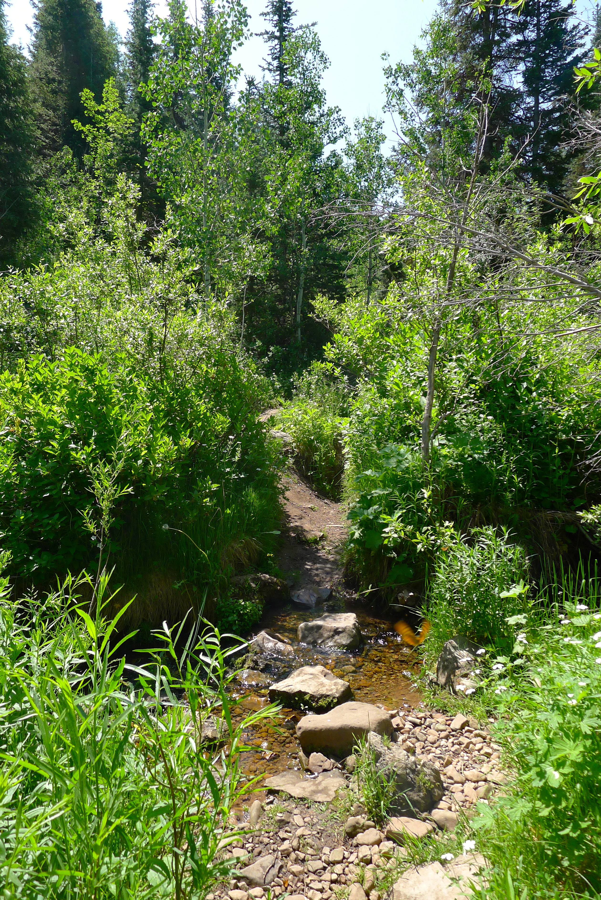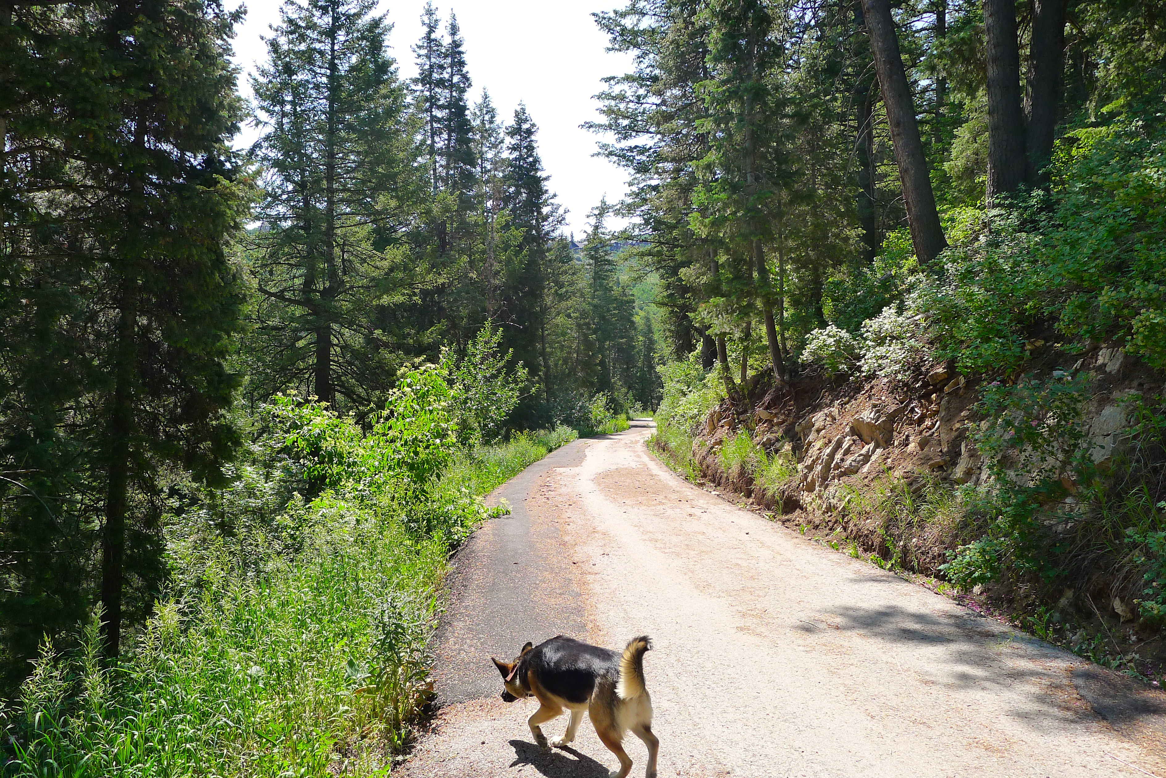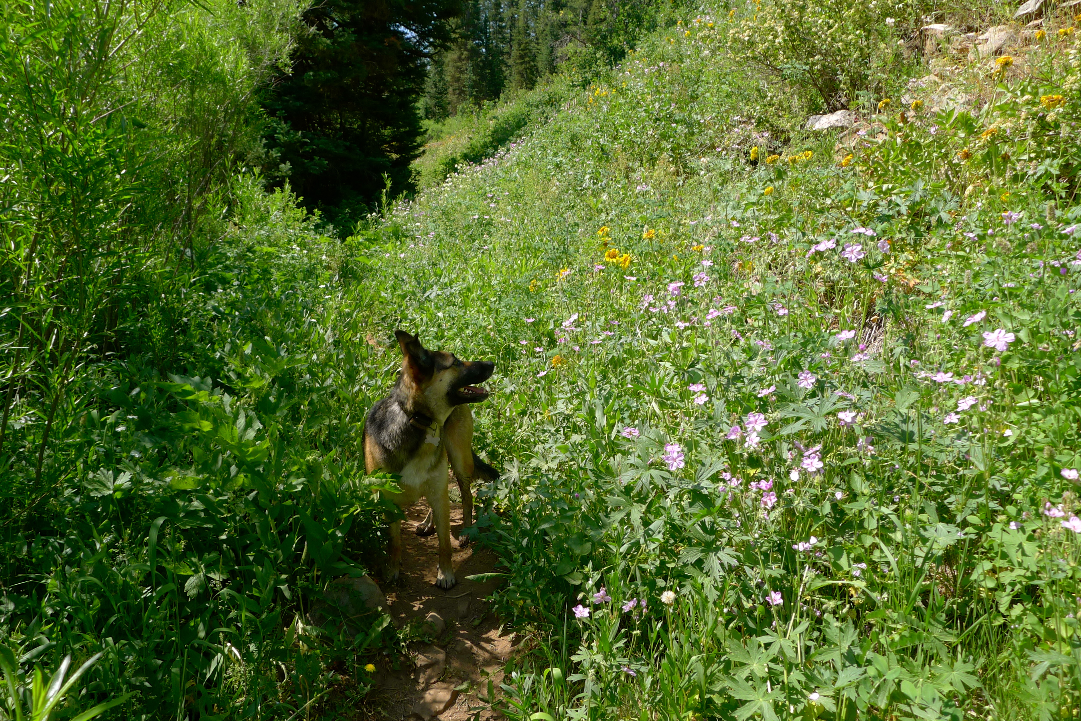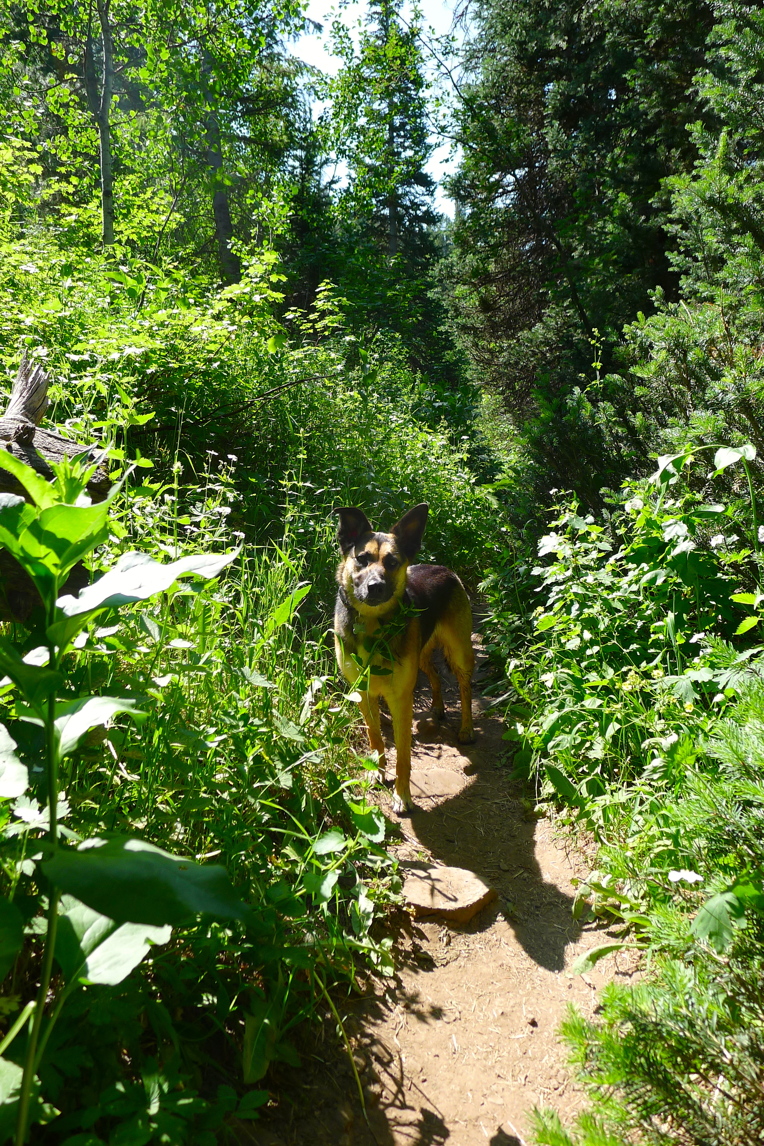 Two hours. Three miles of hiking. 80 degrees. Fourteen types of wildflowers. Dozens of dancing butterflies. Endless songs from joyous birds. Six unsuccessful doggie/Mama self-portraits. Seven spots to dip paws in the creek. One thousand fluttering aspen trees overhead.