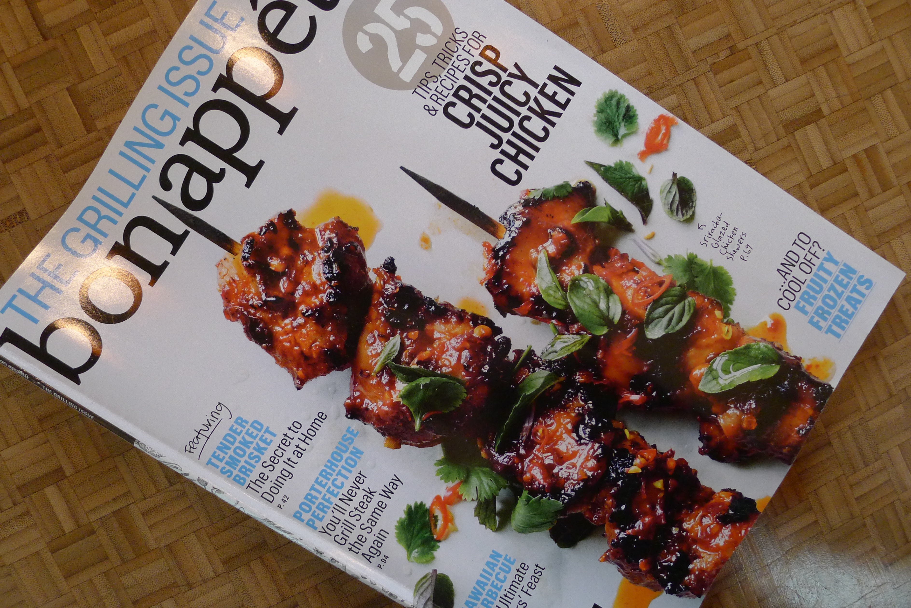I guess it says something about the stage in my life when I prefer Cooking Light, Food Network Magazine, and the recipe section in Sunset to fashion or gossip magazines. I love settling in on the couch with a glass of wine and flipping slowly through the pages. While I used to dog-ear the pages with outfits I coveted, now I get inspired by the glossy, drool-inducing pictures of perfectly styled dishes. I tear out and attempt interesting recipes, making tweaks to some along the way, learning new techniques and making my husband very happy. Sometimes, I’ll come across a photo of something so ridiculously scrumptious-looking that I MUST MAKE IT IMMEDIATELY. That’s what happened when I saw the cover of this month’s Bon Appetit.