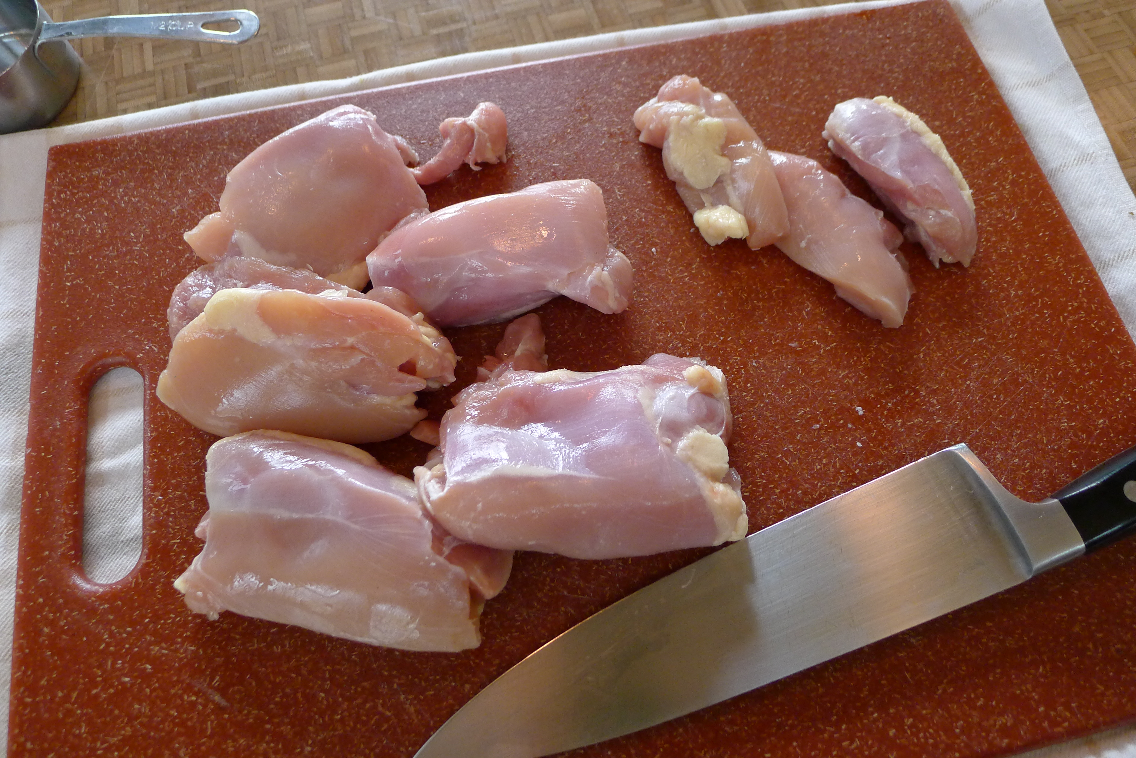 - 1 ½ lb. skinless, boneless chicken thighs, cut into 2 inch pieces