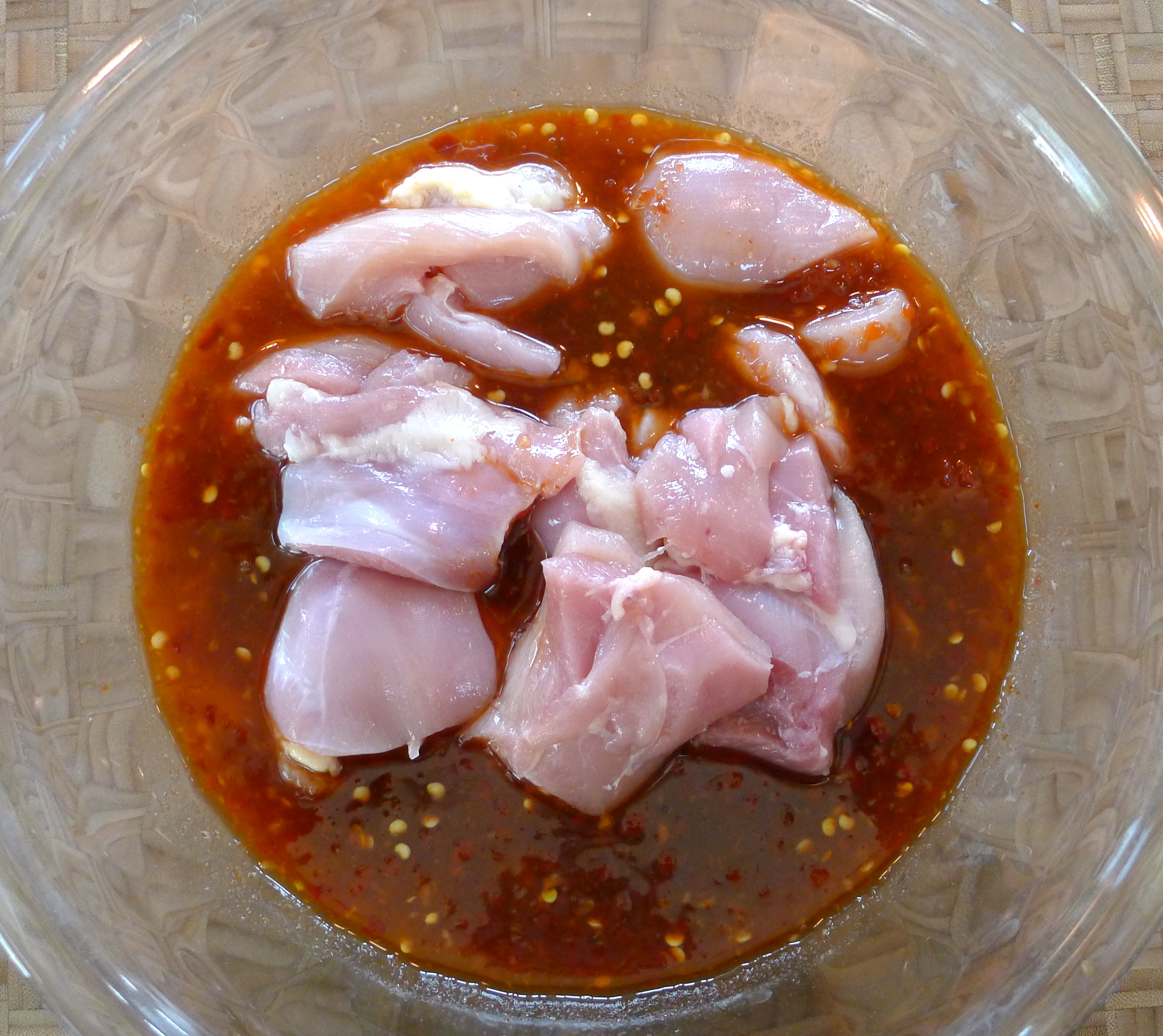 This recipe is quite simple, as all really good recipes are. I had just about everything on hand, except the boneless chicken thighs and the fish sauce!