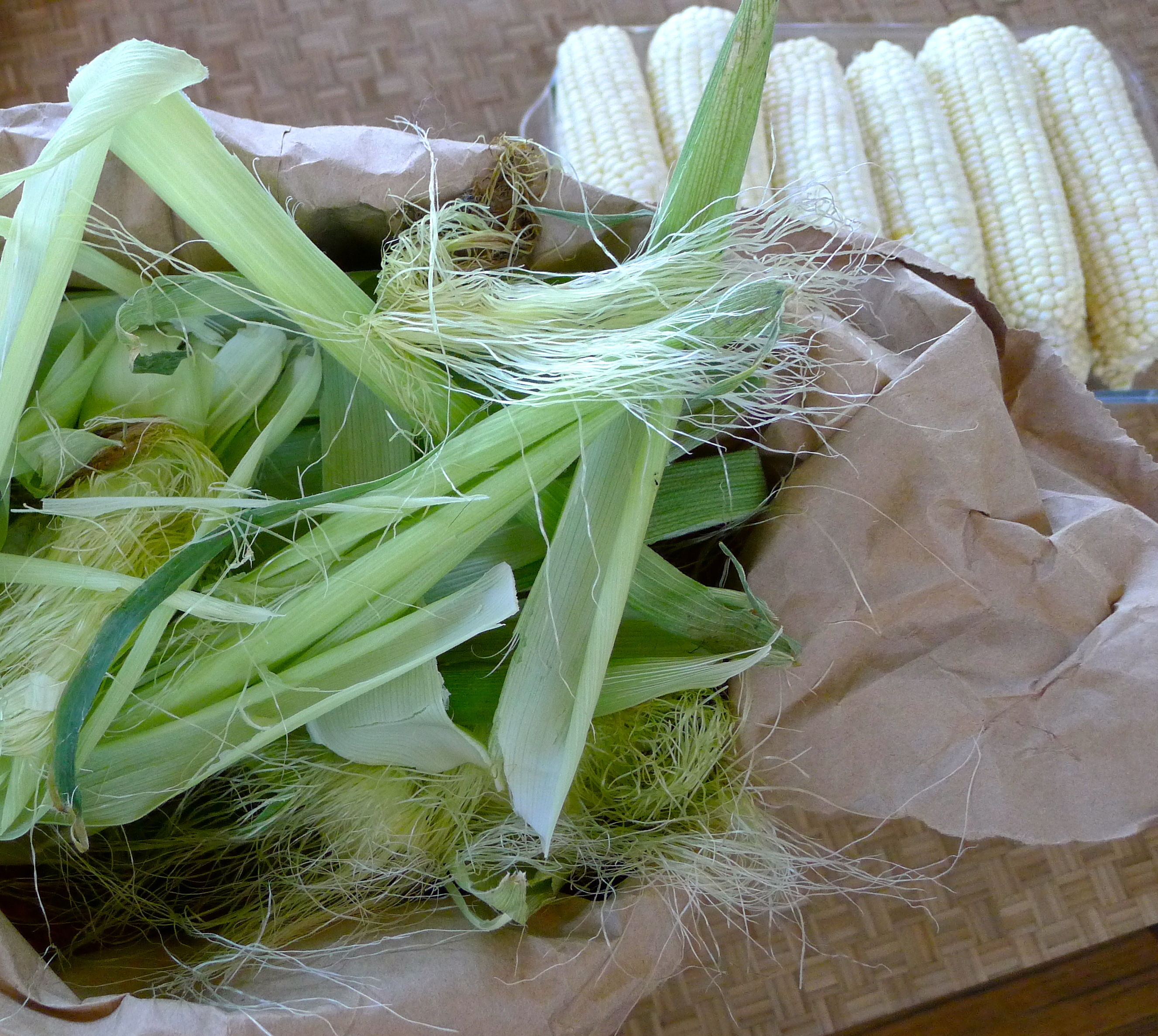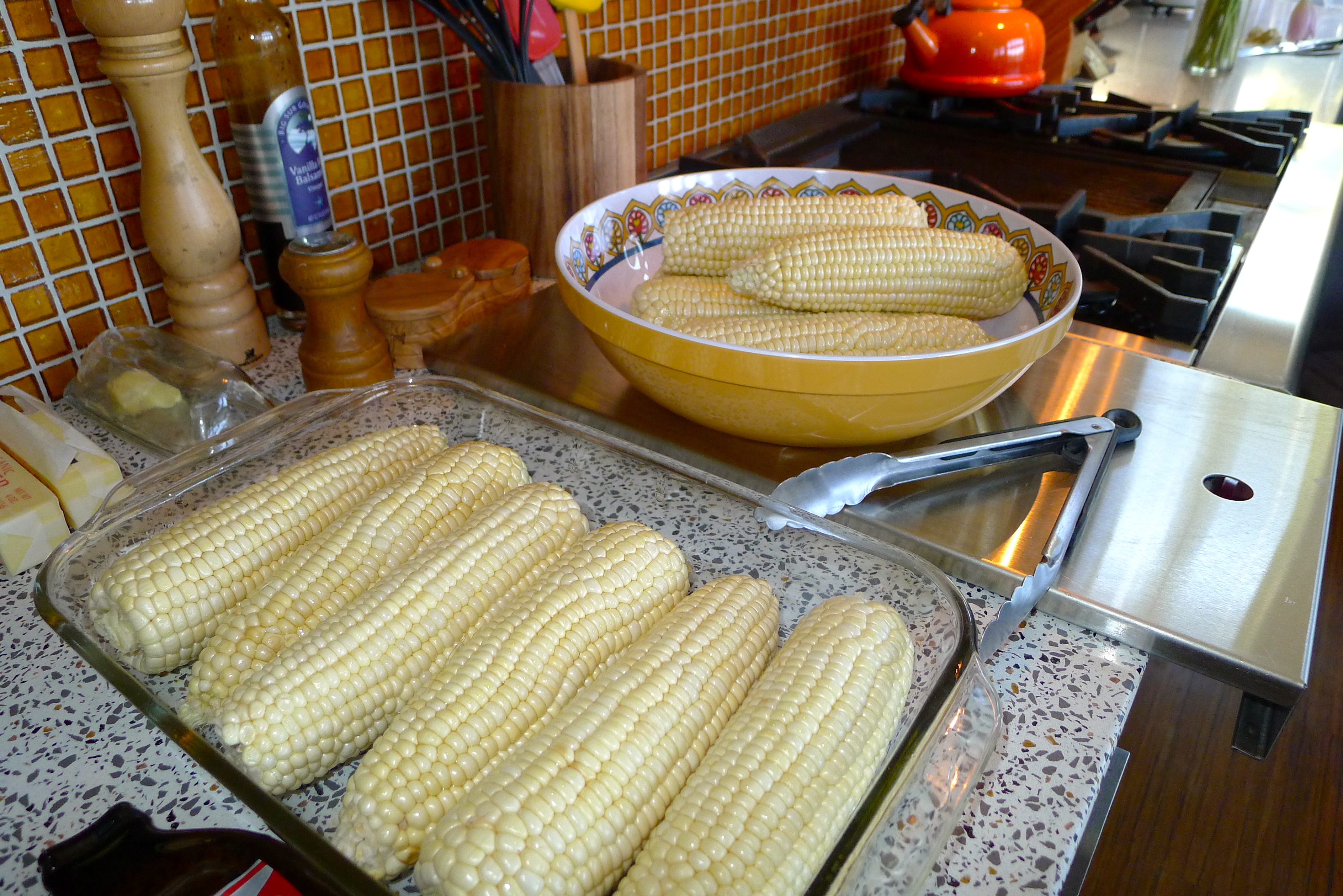 As Tracy warns on Shutterbean, cutting the corn off of the cob can be a little messy. Just go with it. (Hint: dogs are helpful for stray kernels that find the floor.) When I was done, I had a huge bowl of fresh, flavorful corn.
