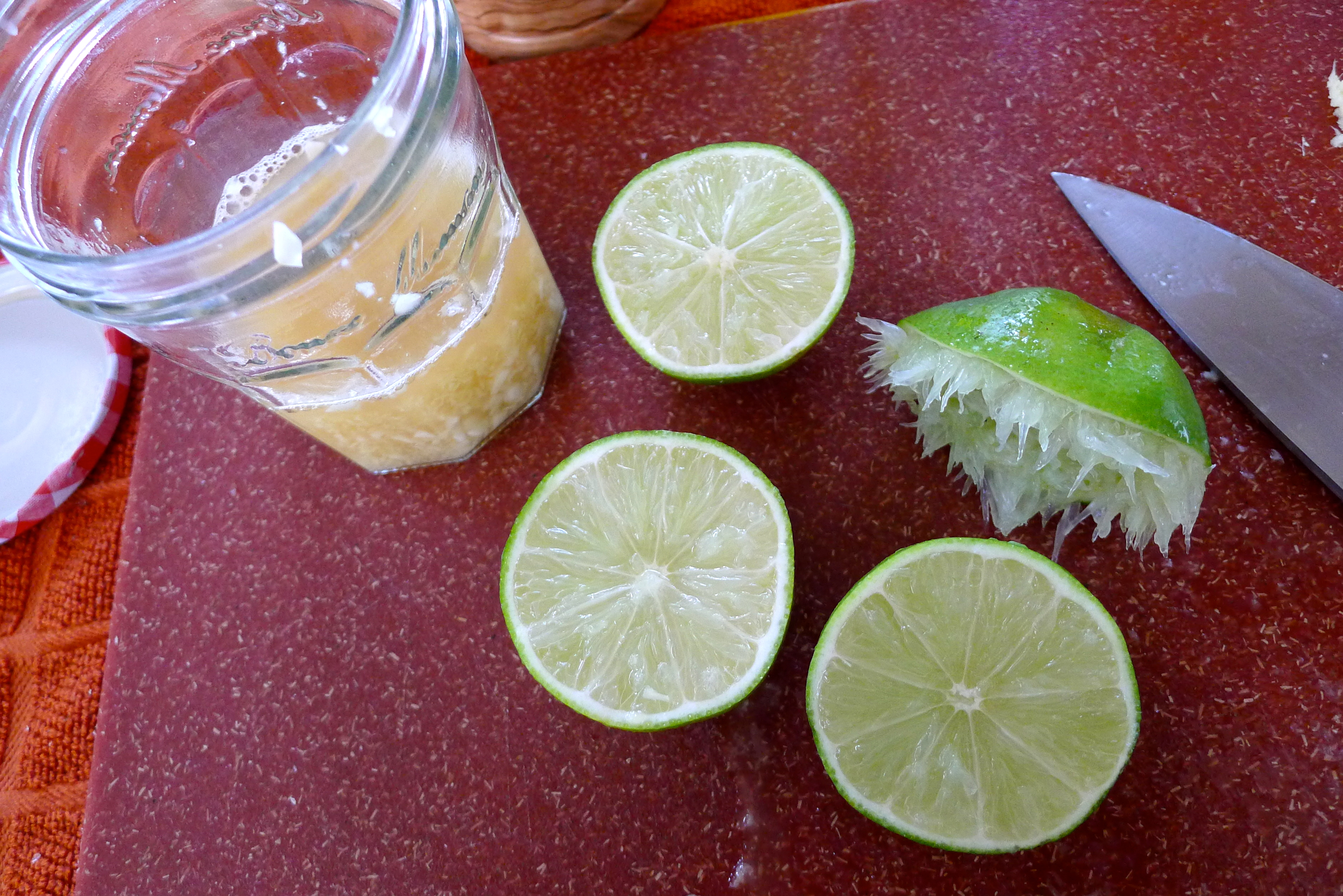 The dressing also needs apple cider vinegar, fresh lime juice, and some delicious honey. Salt, pepper, and olive oil joined the party. A good shake turned this jar of stuff into a tart and sweet dressing. YUM.