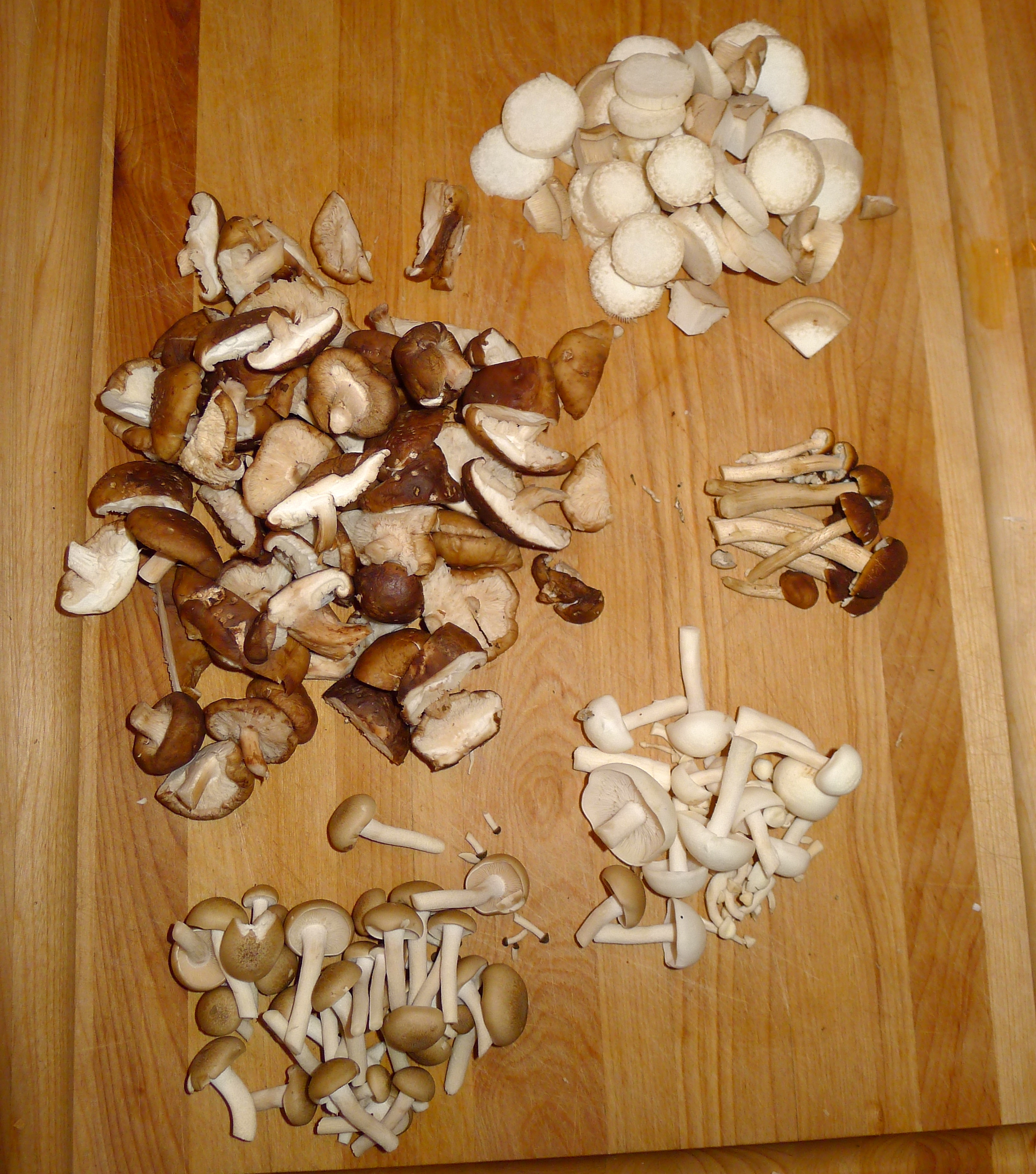 - 1 ½ lb different mushrooms (porcini, shiitake, whatever your husband brings back)