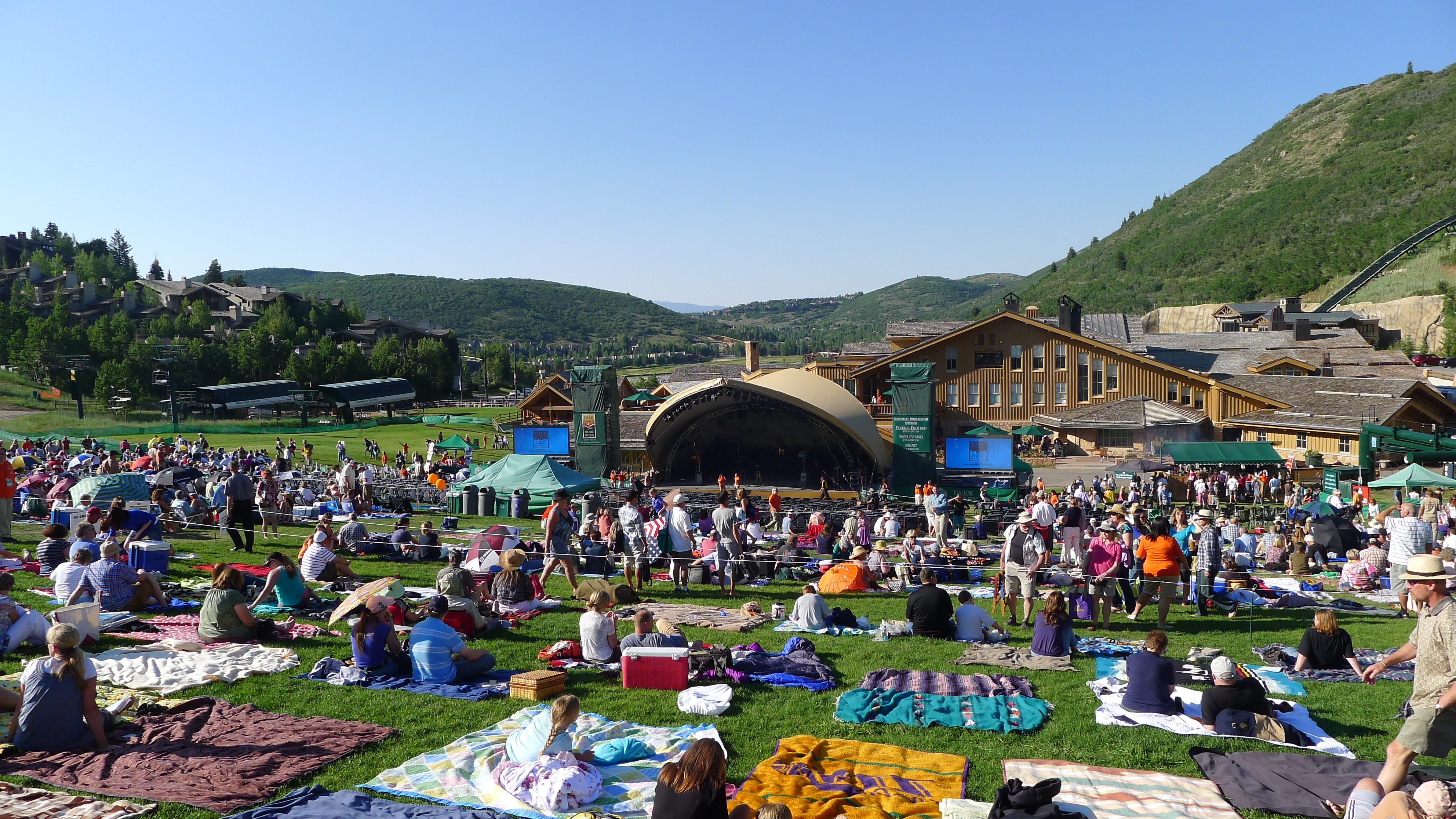 We ended up right where we always sit, halfway up the hill on the grass. We added our color to the patchwork of blankets already set out. We kicked off our shoes, poured a drink, munched on a tasty picnic, and enjoyed the view. Deer Valley events make for excellent people-watching.