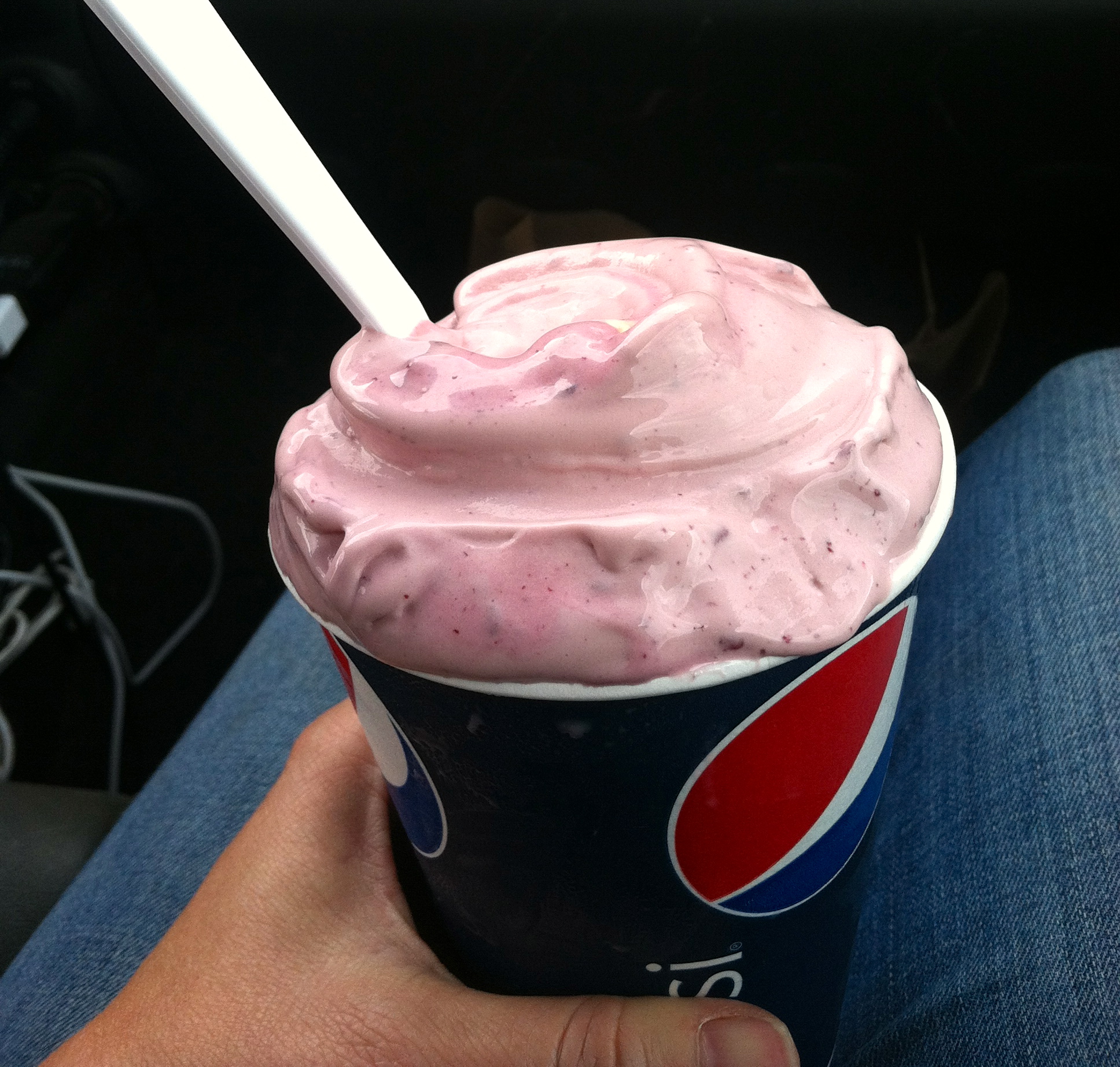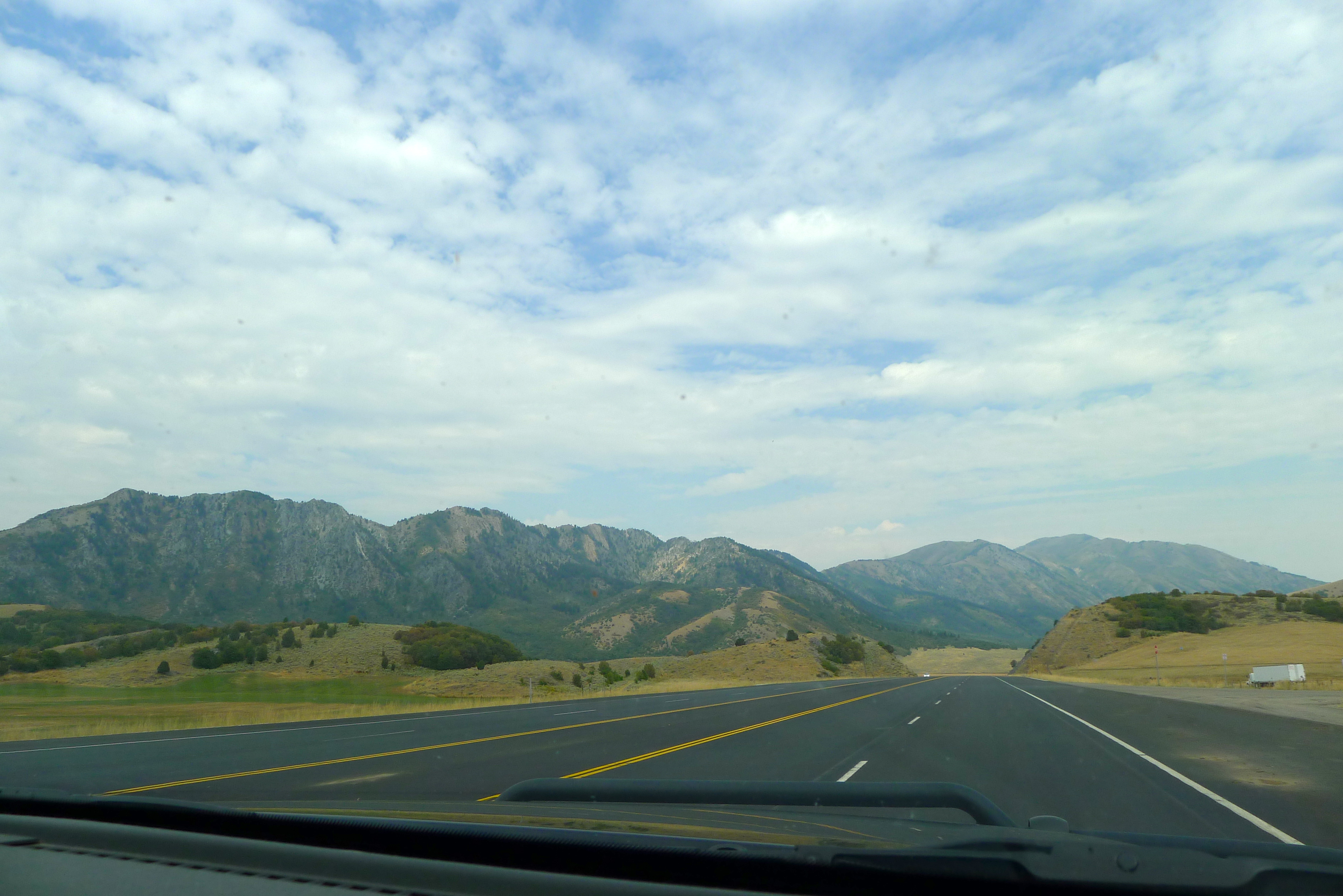 John stopped at a burger shack near Bear Lake and ordered two amazing fresh raspberry shakes for breakfast. We drove home in a rainstorm. For awhile, we followed an RV whose vanity plates read, “PARTYTM.”