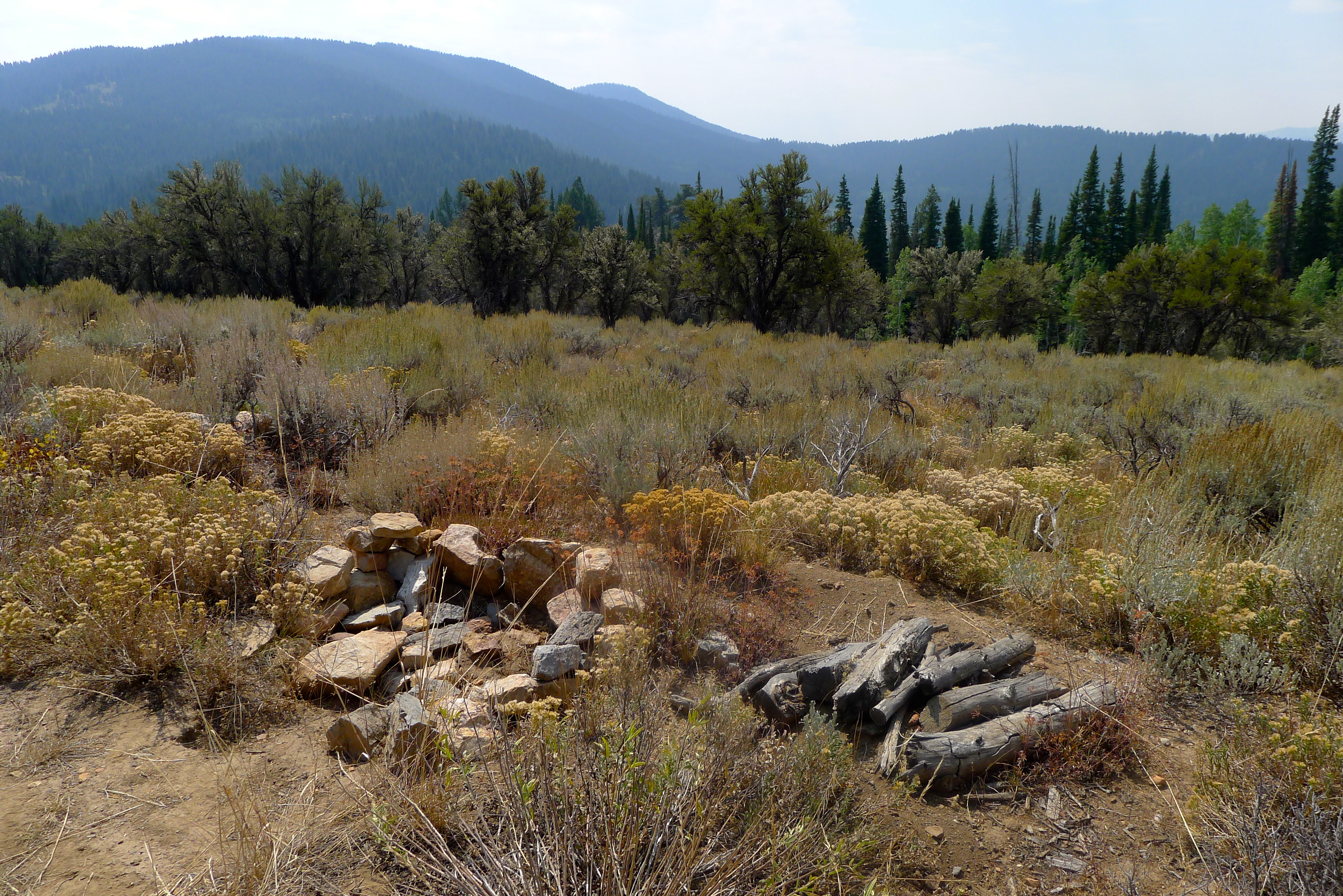 It took longer than expected. I huddled in a patch of shade, throwing sticks for Cholula. The sagebrush and dried weeds coated the land. John took turns with the pick-ax and the shovel and the rake, rustling up dust and pollen– and apparently a wicked allergy to something. His nose turned red, his eyes watered, and his hard work was halted repeatedly by violent sneezing fits. Have I mentioned that Cholula is afraid of sneezes? There was a muggy, dusty hour of calling “Bless you” to John and beckoning a freaked-out dog back to camp. And then we decided to go fishing.