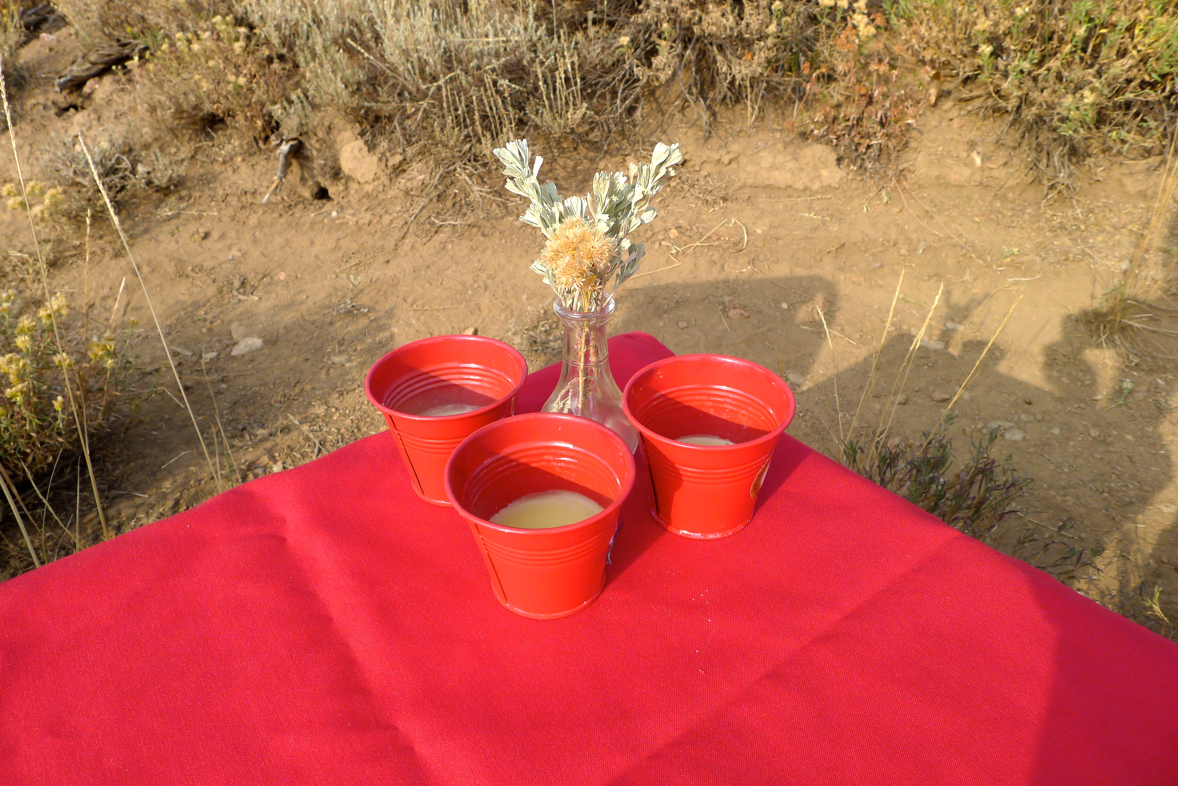 John set up our happy yellow tent- tarp, tent, blow-up sleeping pads, soft blankets, sleeping bags, and pillows. Cozy– with a view! I got to work making camp homey– the prep table, our chairs, a couple of citronella candles, and my camping signature- a tiny vase filled with local flora. The smell of sage was dancing on a light breeze. Between John’s sneezing fits and calling the dog back to camp, it was lovely. Our day was a series of failed attempts, but it was pleasant now. We munched on cheese and grapes and poured happy hour cocktails.
