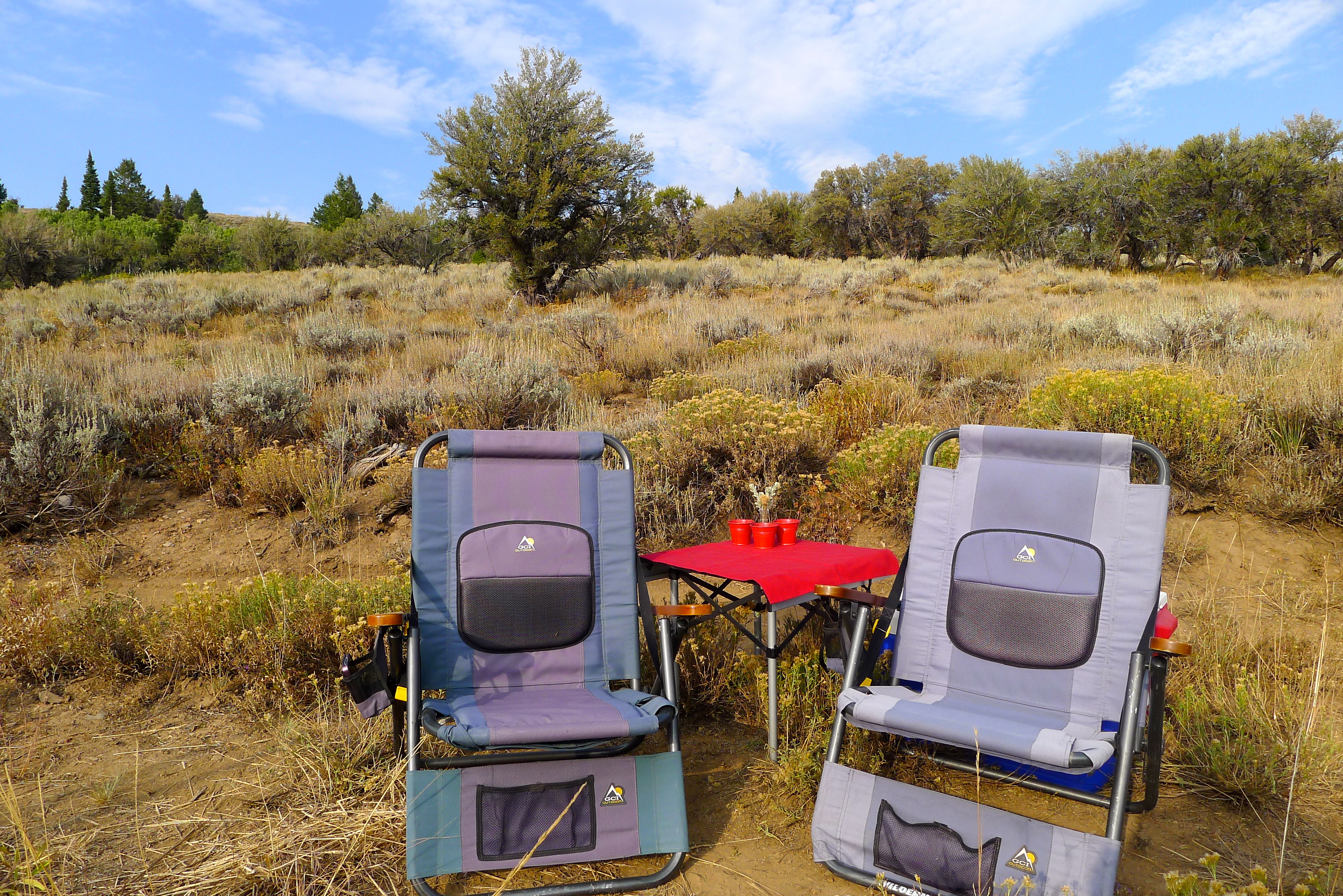 The fact that this was a one-night-only situation actually made it more difficult. We still needed ALL of the gear. While Betty is self-contained with everything we need tucked inside, ready for use, John played Tetris in the back of the truck to fit all of our stuff. Camp chairs. The kitchen crate. The prep table. The Adjust-a-Grill. The tent and our sleeping bags and pads. Pillows. Hatchets, axes, a shovel, a rake. Our guns. A box of clay disks for skeet shooting. Our food bag. A couple of coolers. Cholula’s food. Had we decided to live in the hills for a month, we’d have enough STUFF.