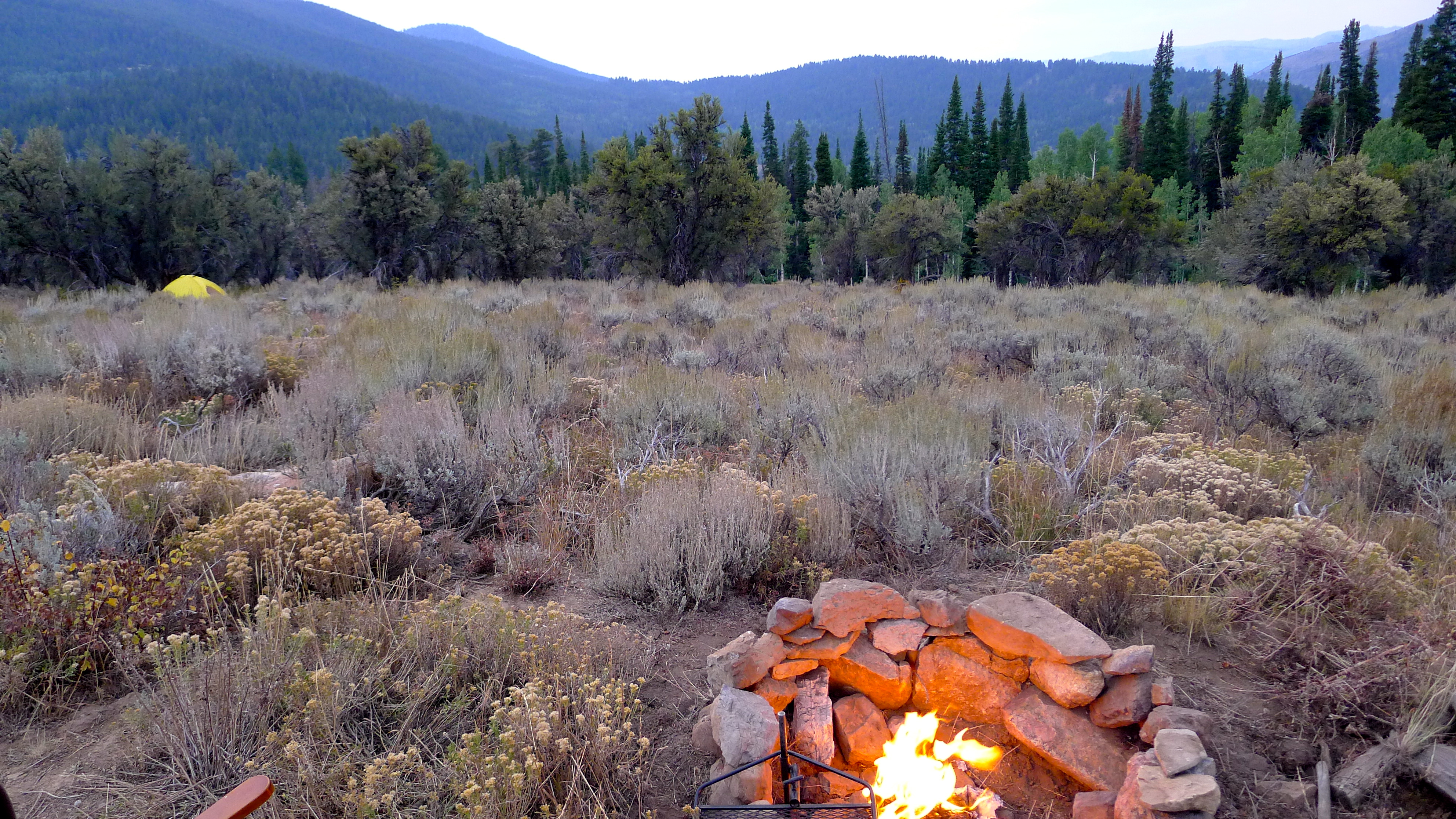 We sat by the fire for a while, and then I snuck away to the tent with my book while John put out the fire. When John and Cholula came down, I’d just read the last pages of Wild– an incredible true-life tale of a woman spending three months hiking the Pacific Coast Trail alone. I silently acknowledged, there in my cushy tent, that I’d never last in the wild. I carefully scooted over a few inches to make room for John. The manufacturers of this “two-person” tent lied– we barely fit (and we are not big people). Cholula may as well have been a Great Dane as she uncomfortably circled inside the tent, sniffing through the screened door at our heads and then the one at our feet. We laid there, trying to be comfortable, marveling at the unlucky day. Tomorrow would be better- a good night’s sleep, a tasty breakfast, a hike, and a view.