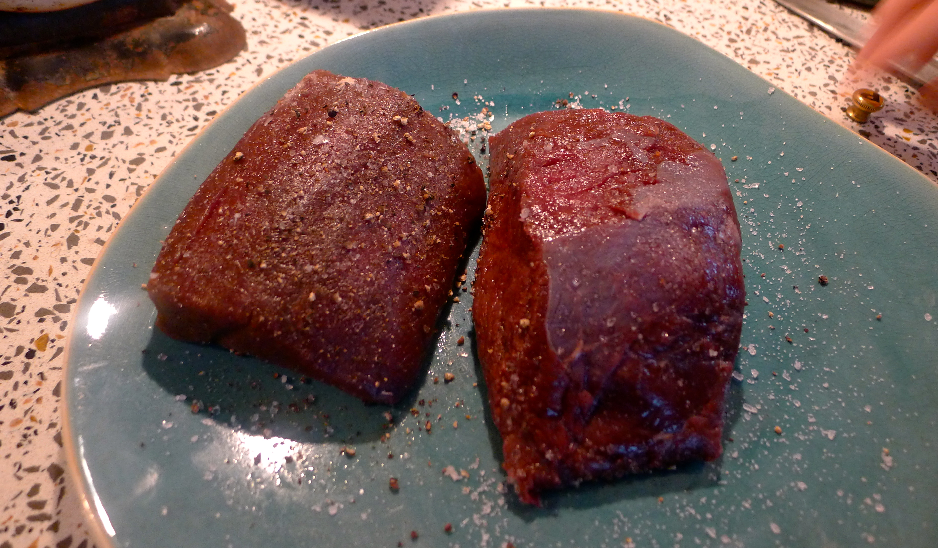 John suggested using an elk strap loin we had in the freezer instead of beef sirloin. I let him be in charge of the meat while I chopped veggies.
