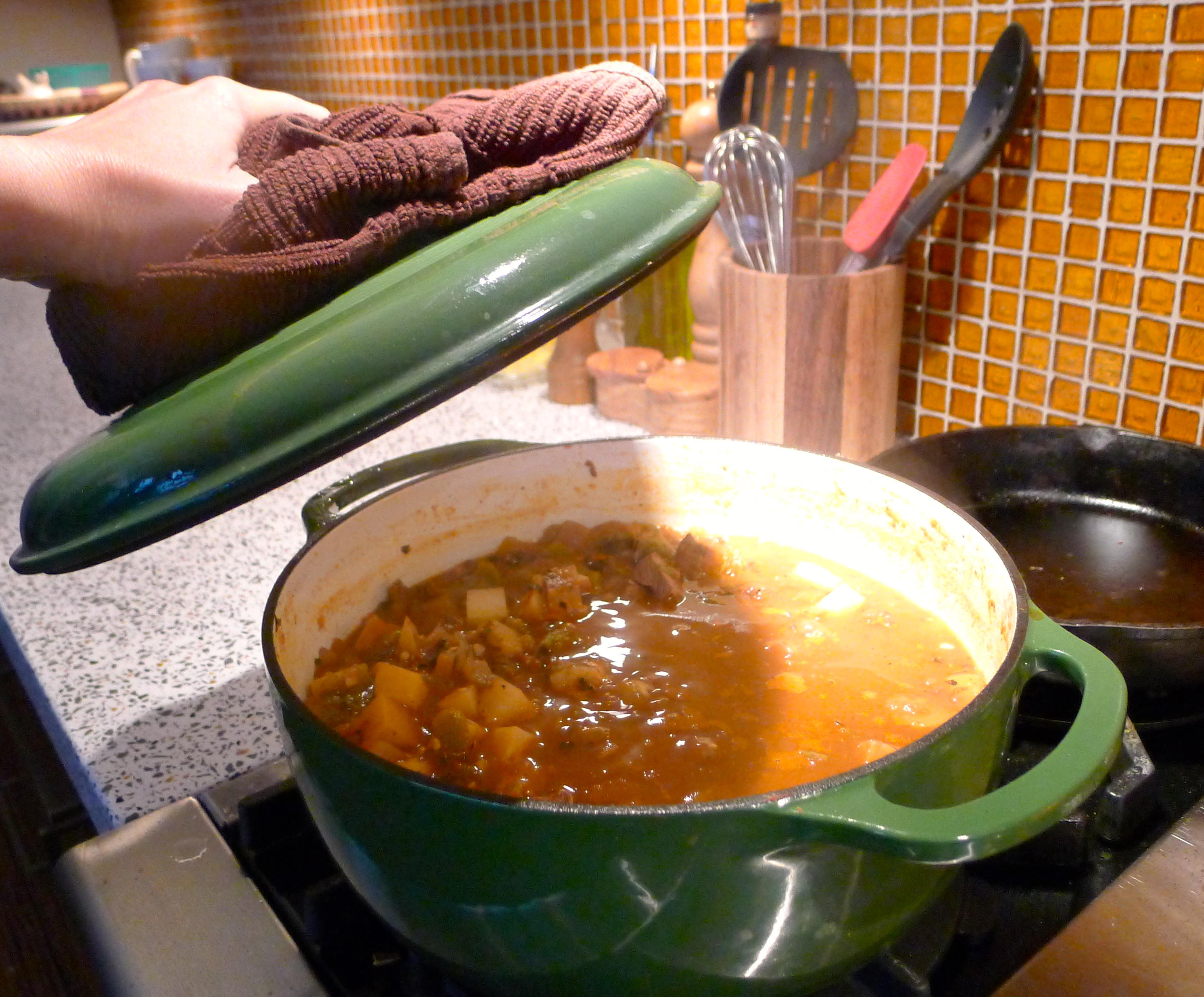 When I lifted the lid from the pot, the aroma of the stew made my mouth water. I chopped up some fresh parsley to top each bowlful and served it with warm tortillas. YUM!