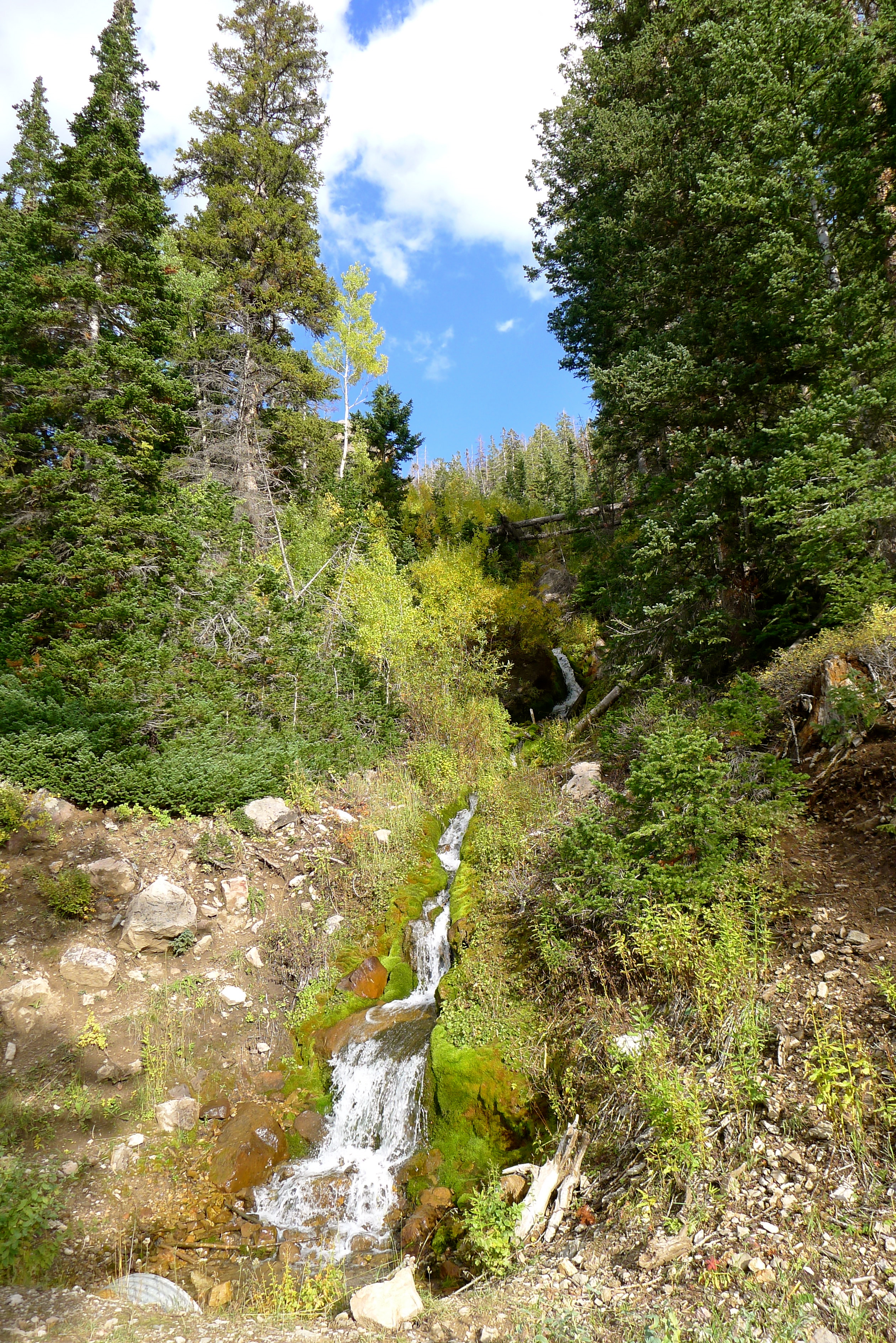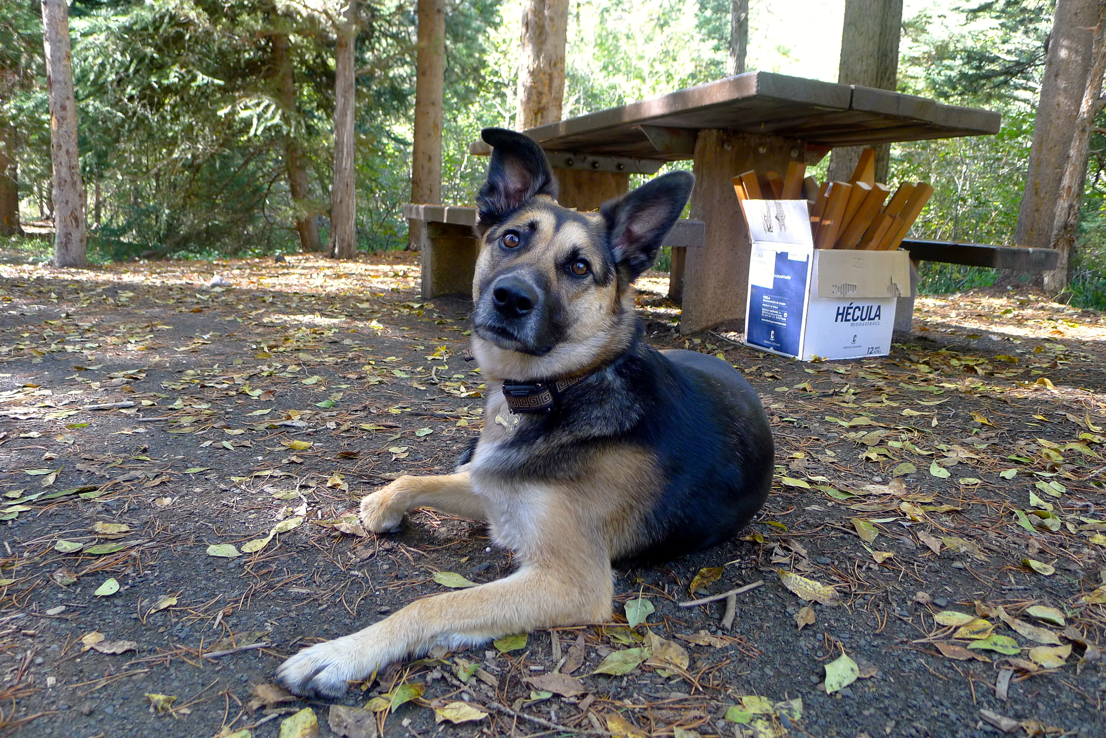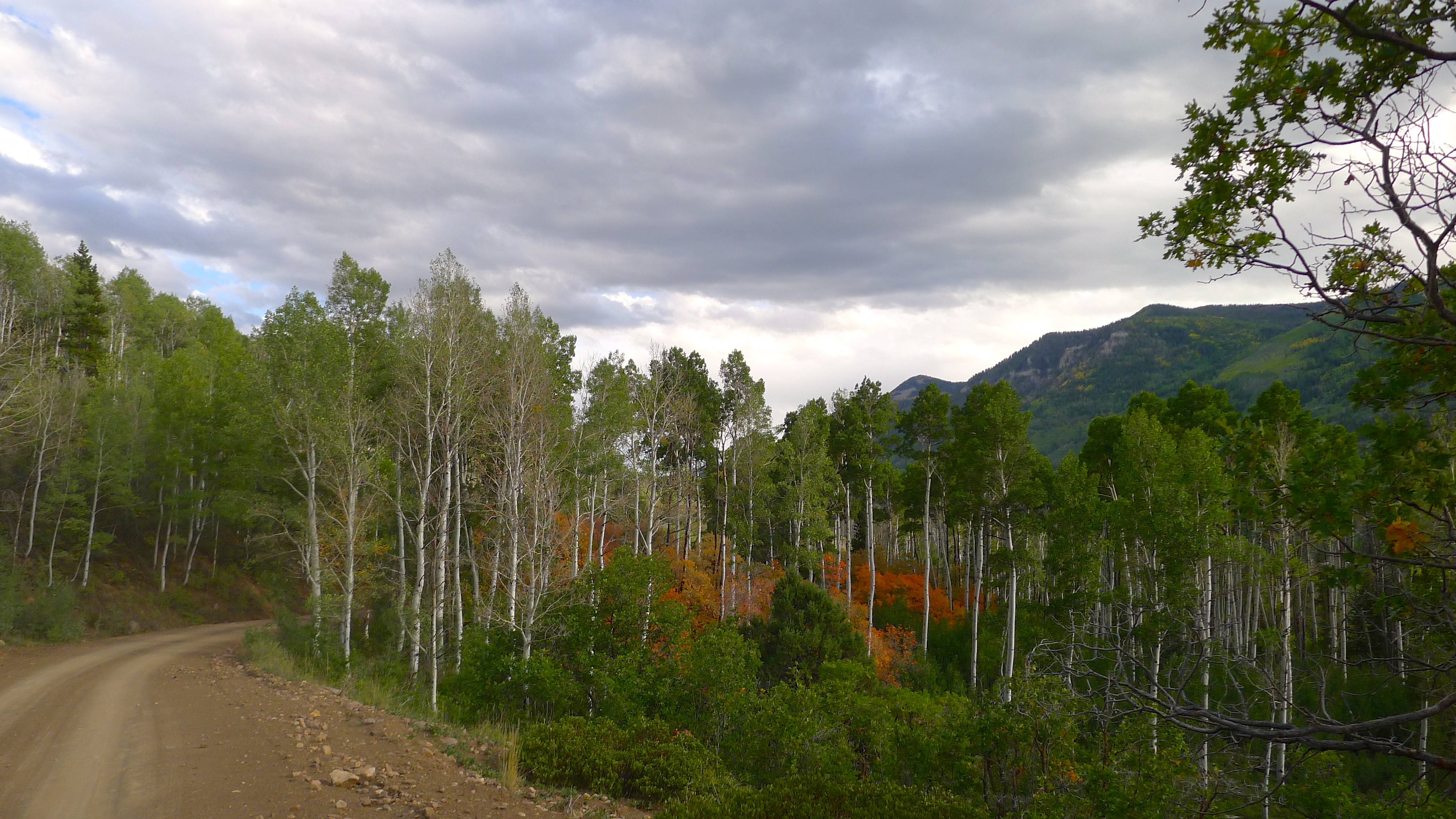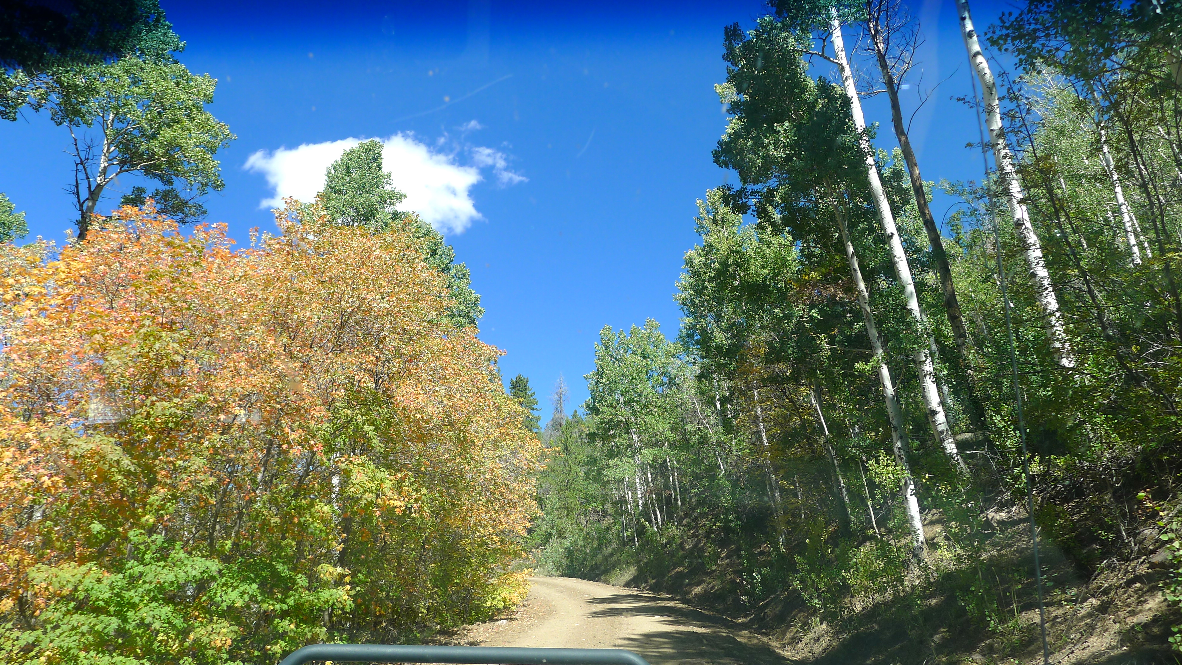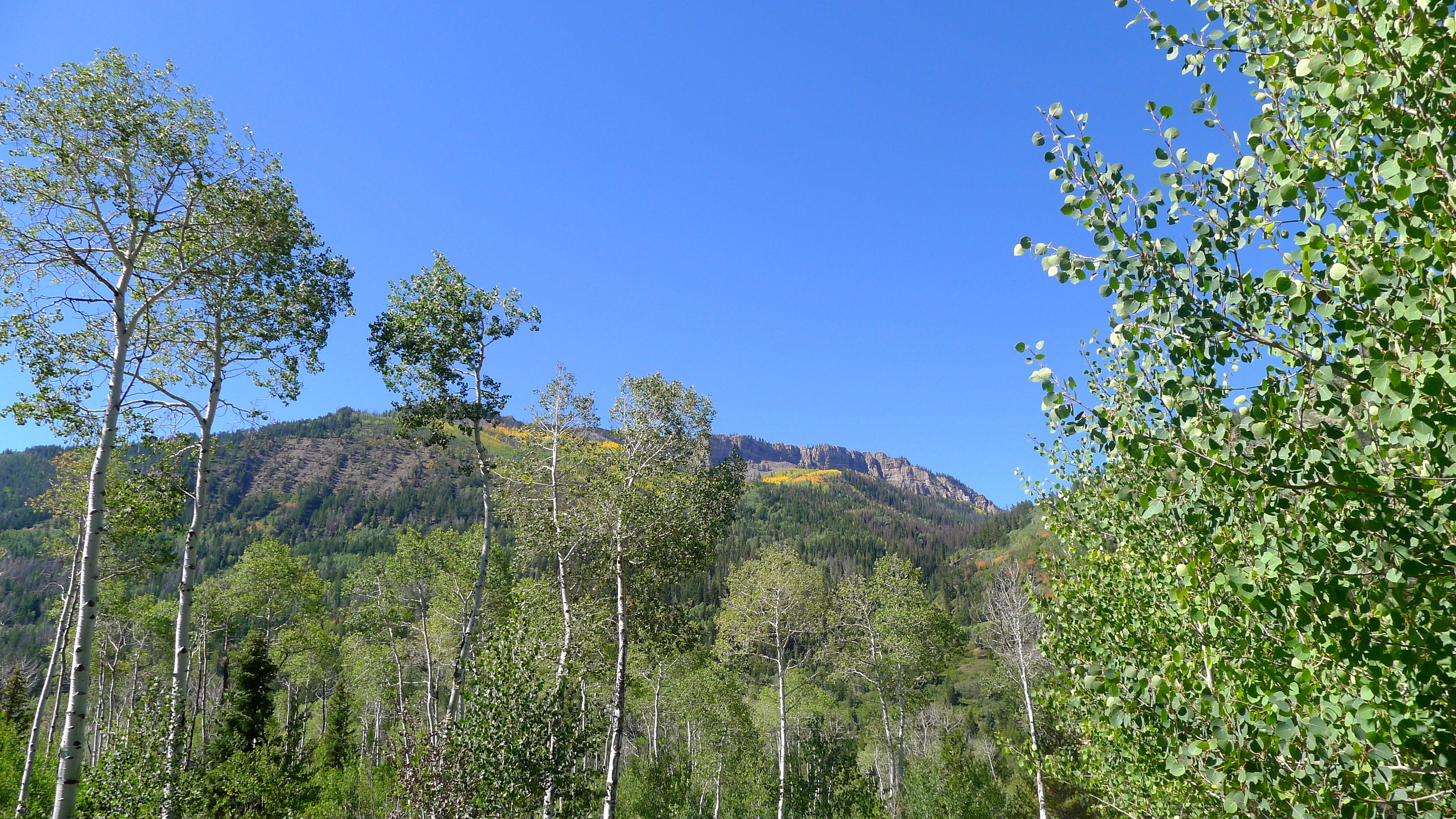I love opening Betty’s door in the morning and seeing our surroundings. Since we usually arrive as daylight is fading, this is the first chance to see where we landed. Saturday’s sky was big and blue, and Betty was tucked in under yellowing aspens and pine trees. I sipped my cup of extra-strong coffee while John pointed out a trail to explore on the map. Cholula’s ears were in overdrive, multiple squirrels chirping their warnings from all directions. The trees swayed above us in the breeze, and a few leaves fluttered to the ground.  A trail to my right led to the Duchesne River, and a rugged cliff band was visible beyond the trees. What a gorgeous autumn day!