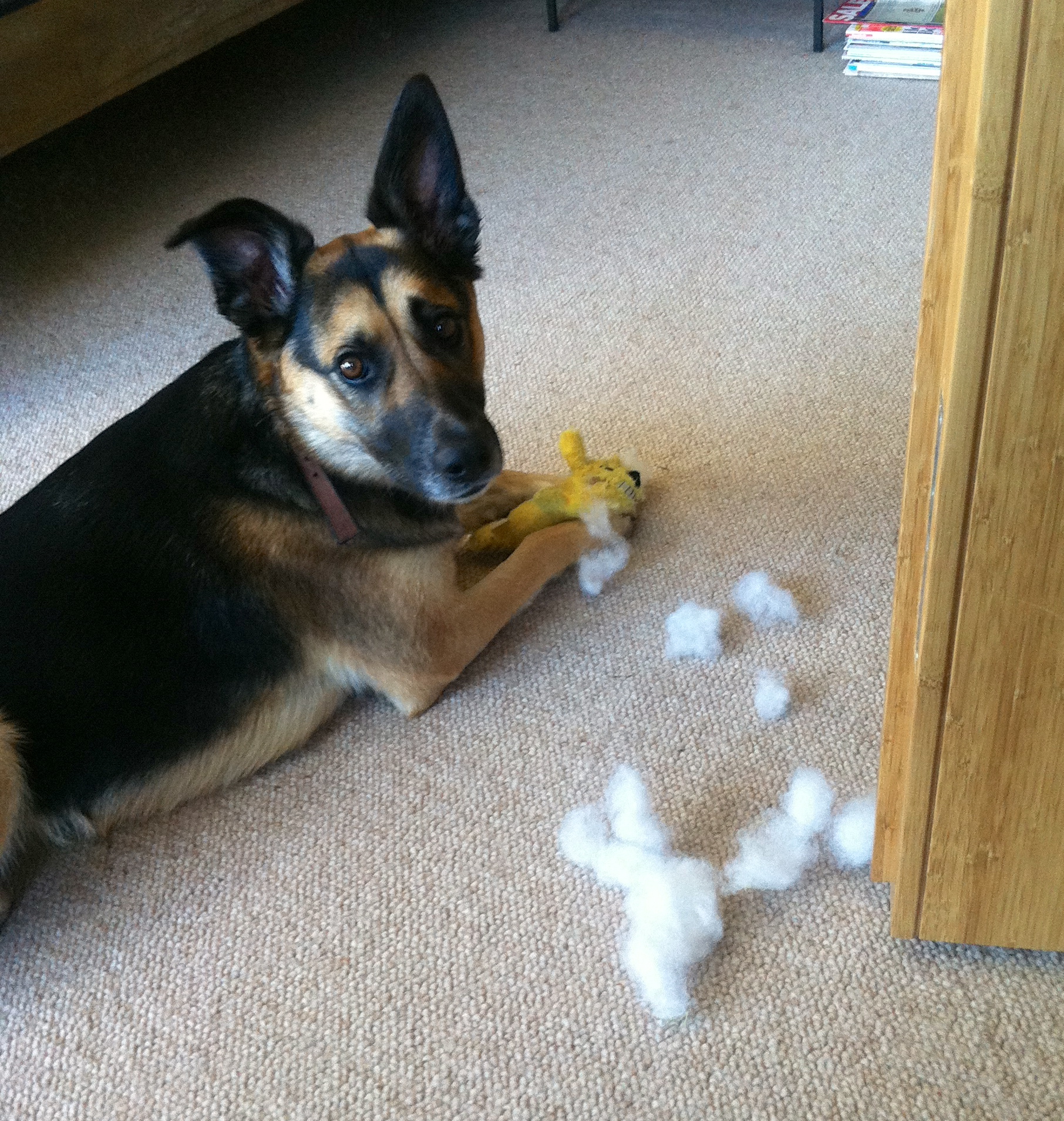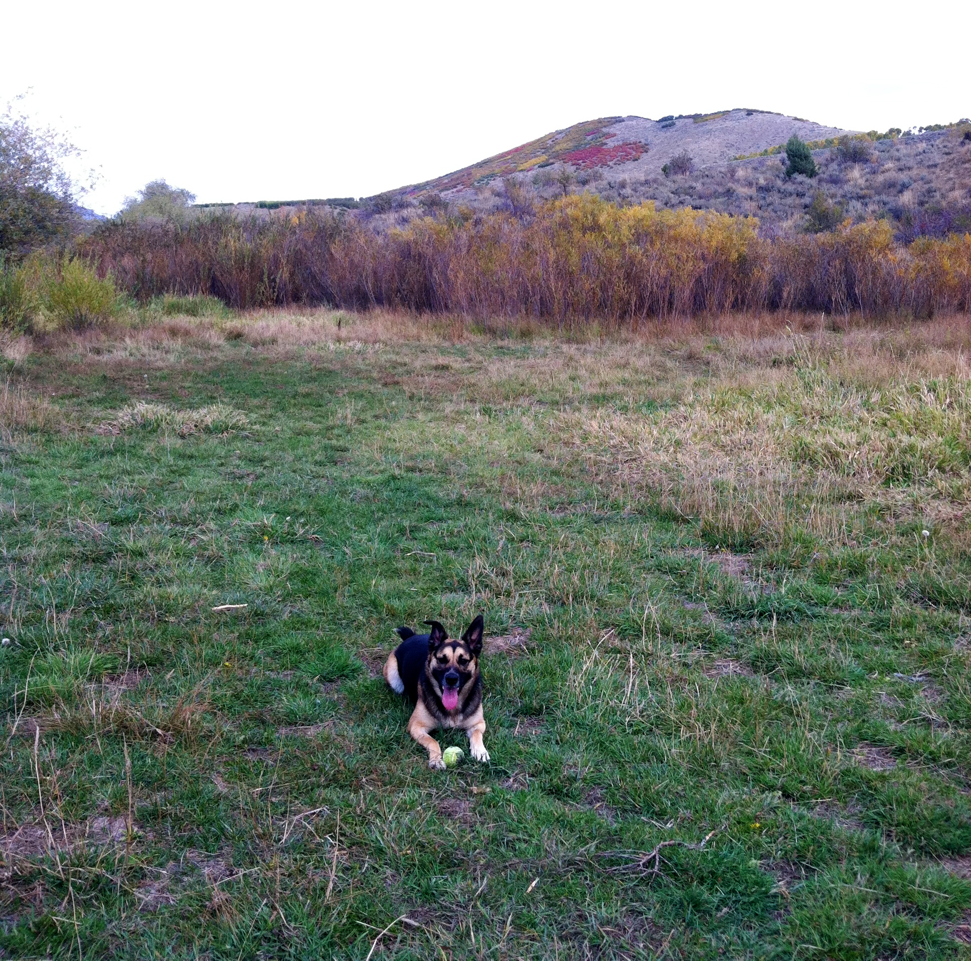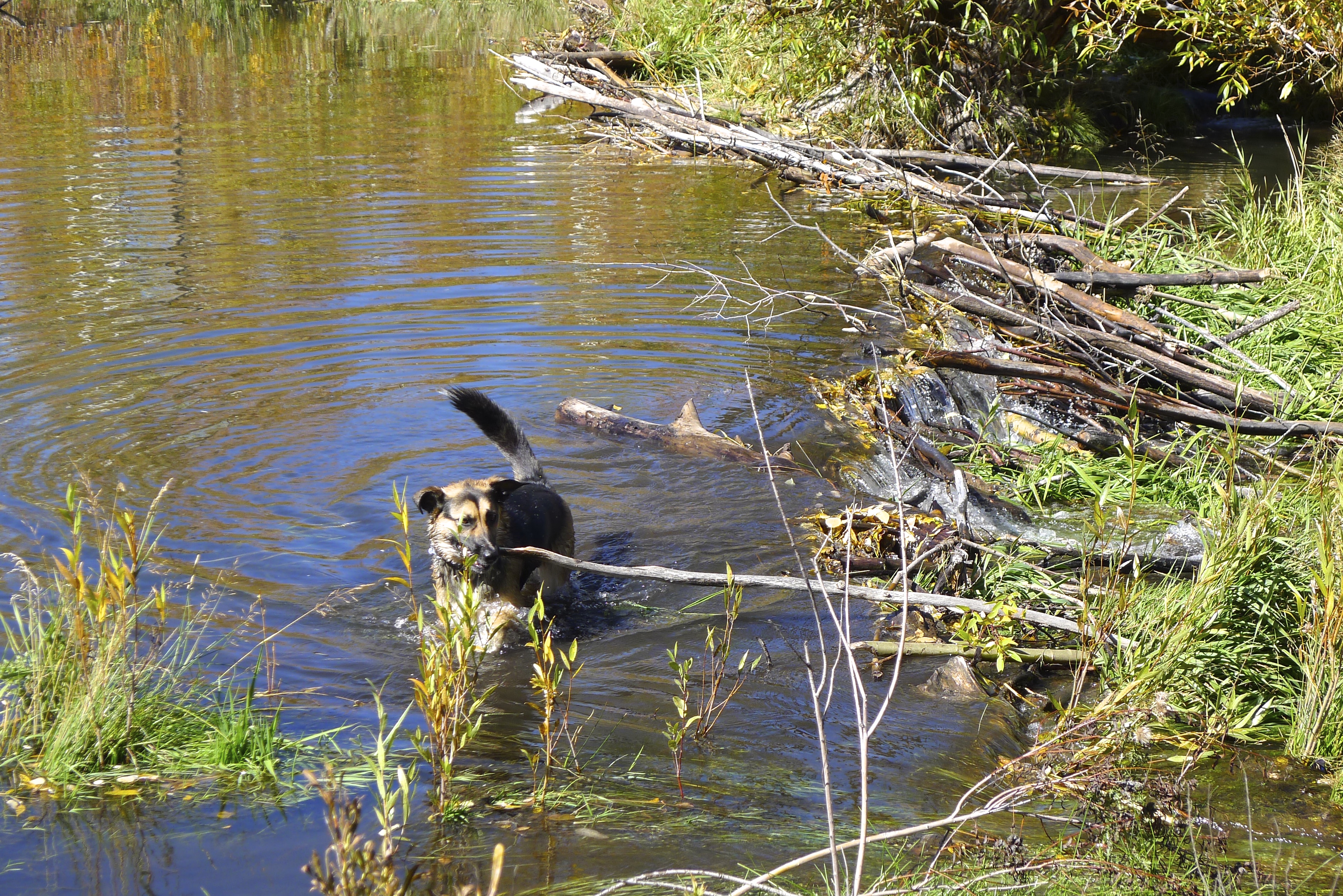 This is Cholula stealing logs from a beaver dam. Little thief.