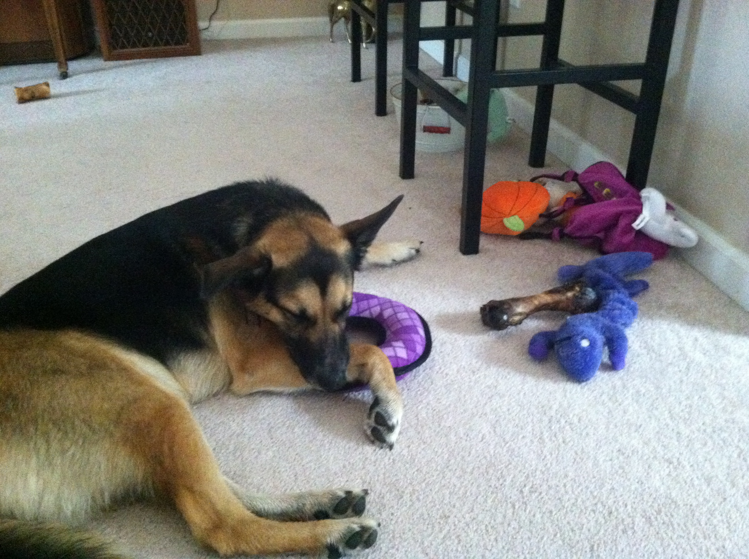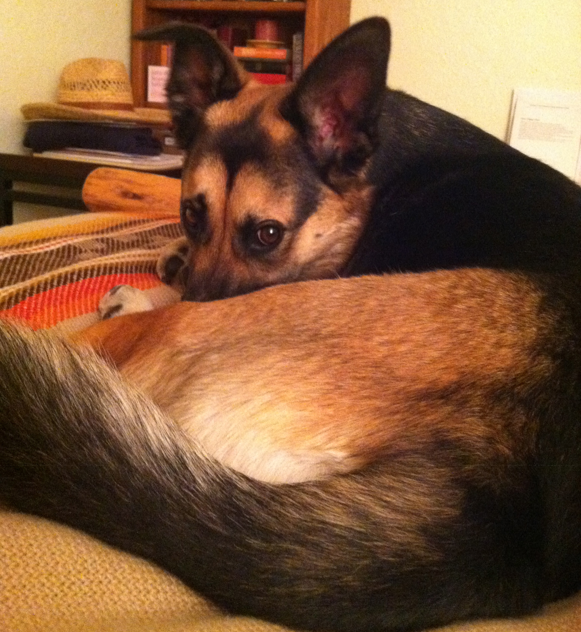 An hour into the drive, Cholula seemed to need a break, so I pulled over and walked her through a quiet park. I turned to see her rolling in what I thought was mud (which it was not). The subsequent stinky car, unplanned stop for a big jug of water, and roadside poo bath put a damper on our progress. By the time I arrived at my folks’ house, it was time to clean up and head out to dinner with the fam at the Mahogany Grill.