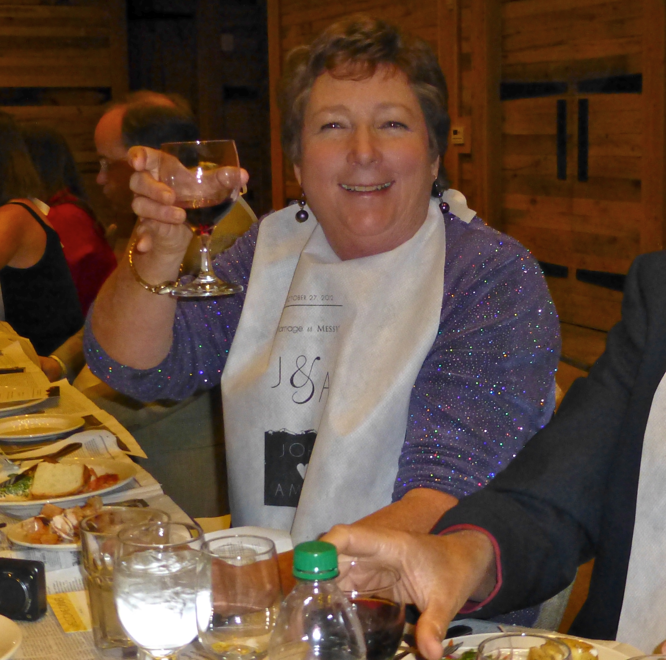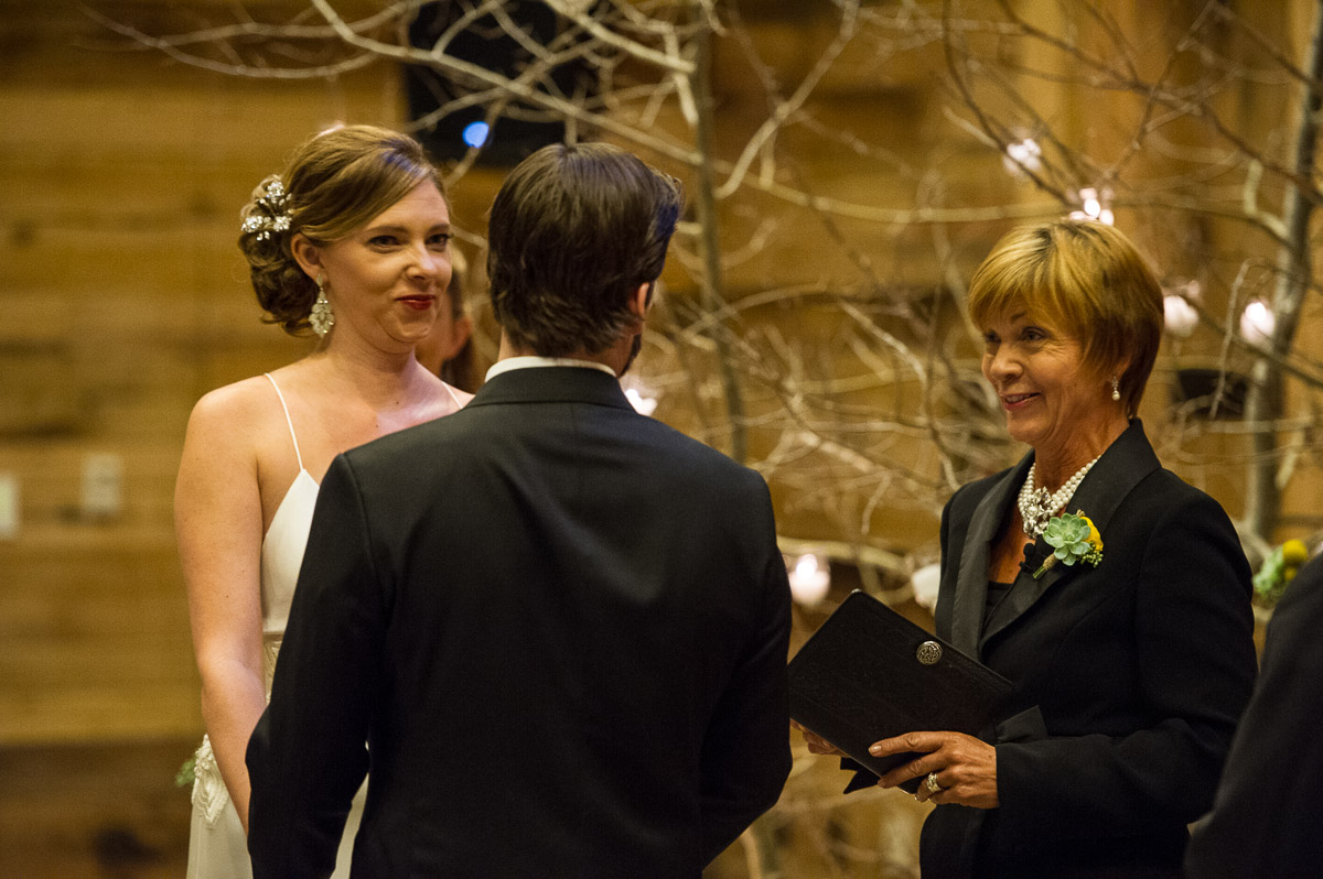Pausing and taking a second gulp during the wine ceremony portion of our wedding.