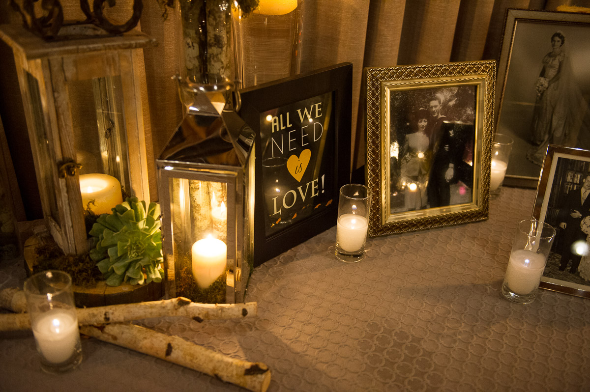 The stunning work of my wedding planner and florist, who turned our indoor wedding ceremony (a last-minute change) into candlelit perfection.