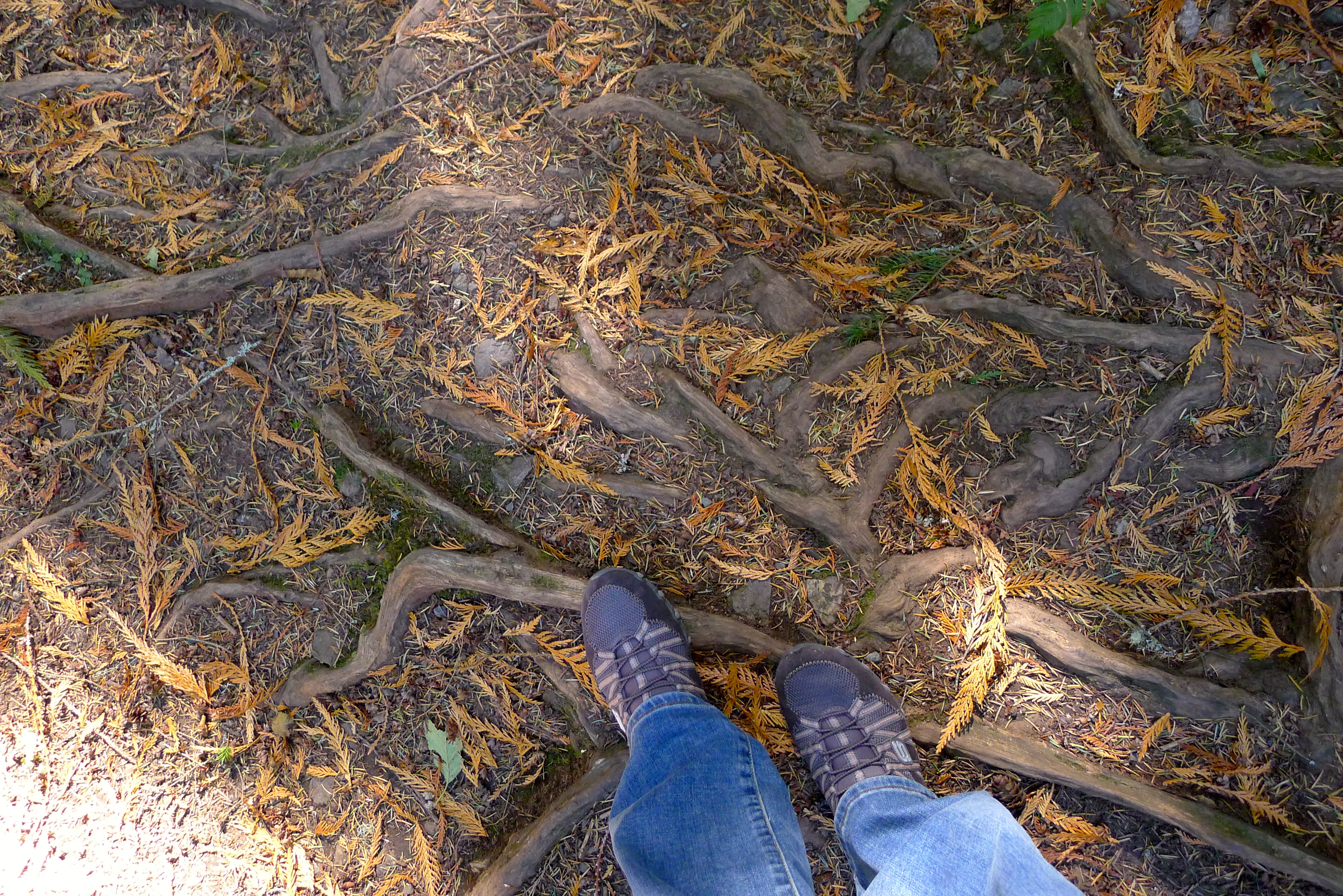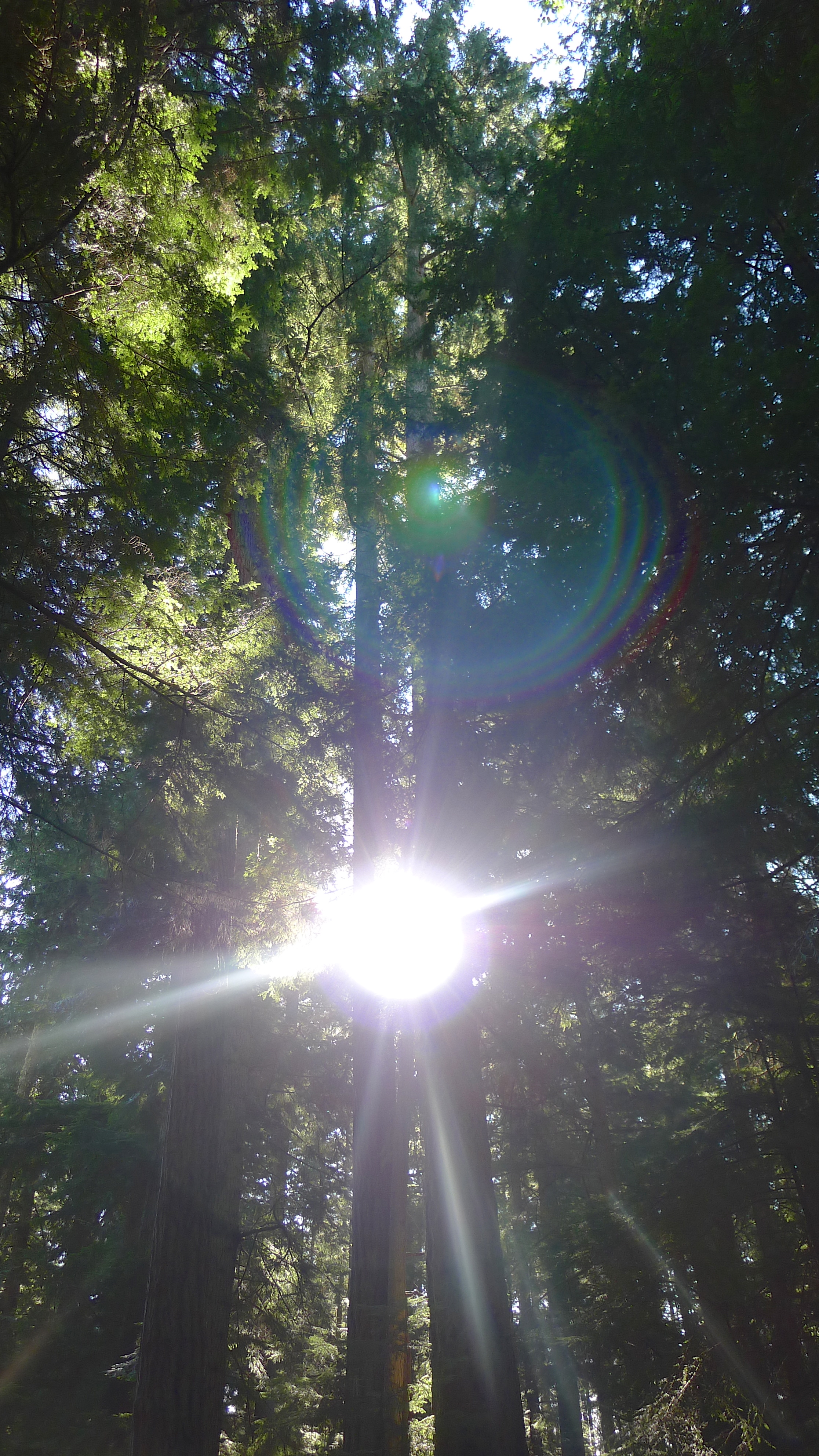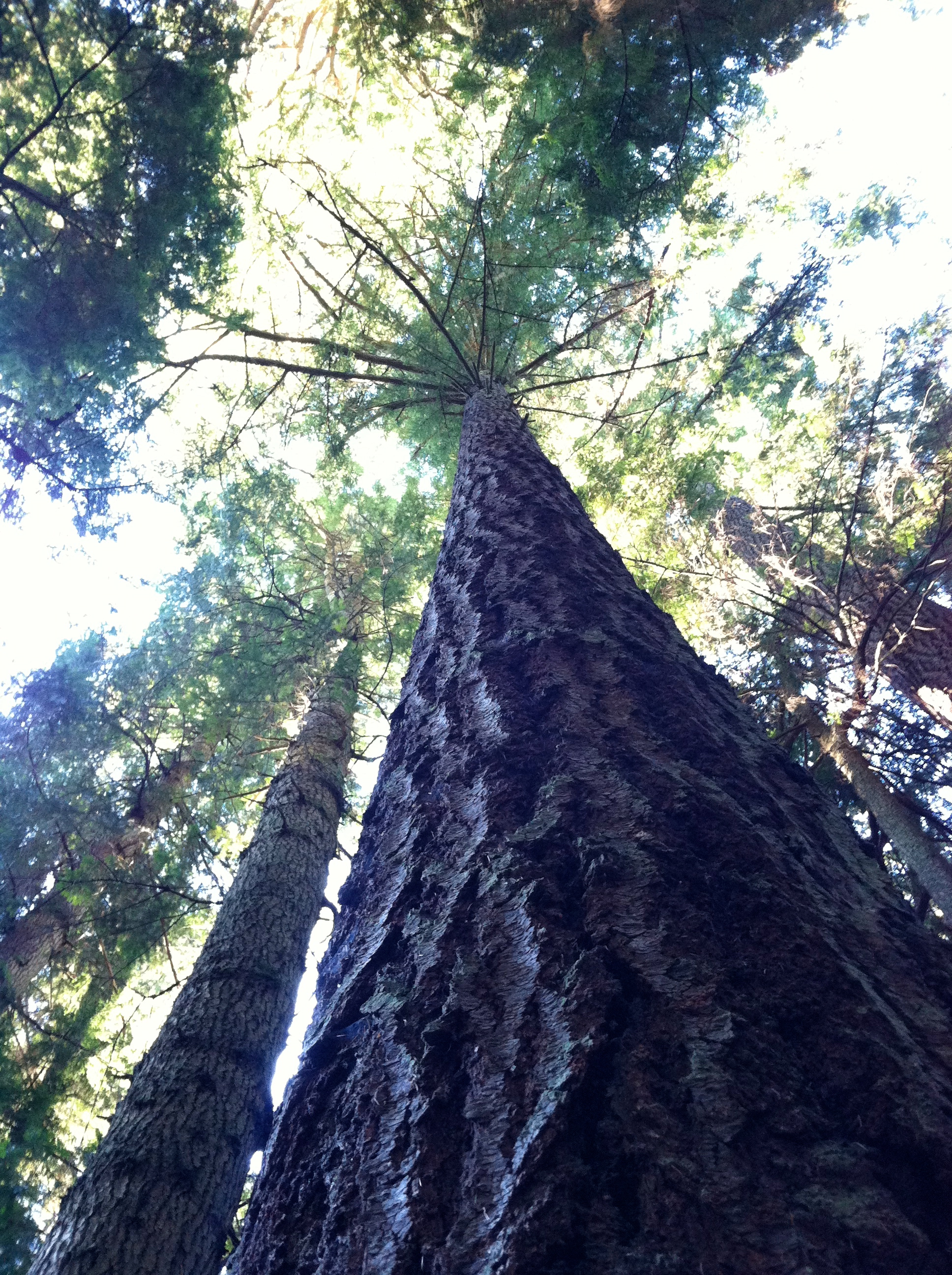 We pulled over to check out Cascade Falls, and it felt like we were lost in Middle Earth. Mossy branches filtered the sunlight. Mushrooms everywhere reminded us that this clear weather was unusual. The forest echoed with the muted roar of the falls, or our occasional gleeful shouts. Our path was covered in ancient tree roots and freshly fallen pine needles, dotted with tiny pinecones. And the trees. Oh, the majestic trees, reaching high toward the sun.