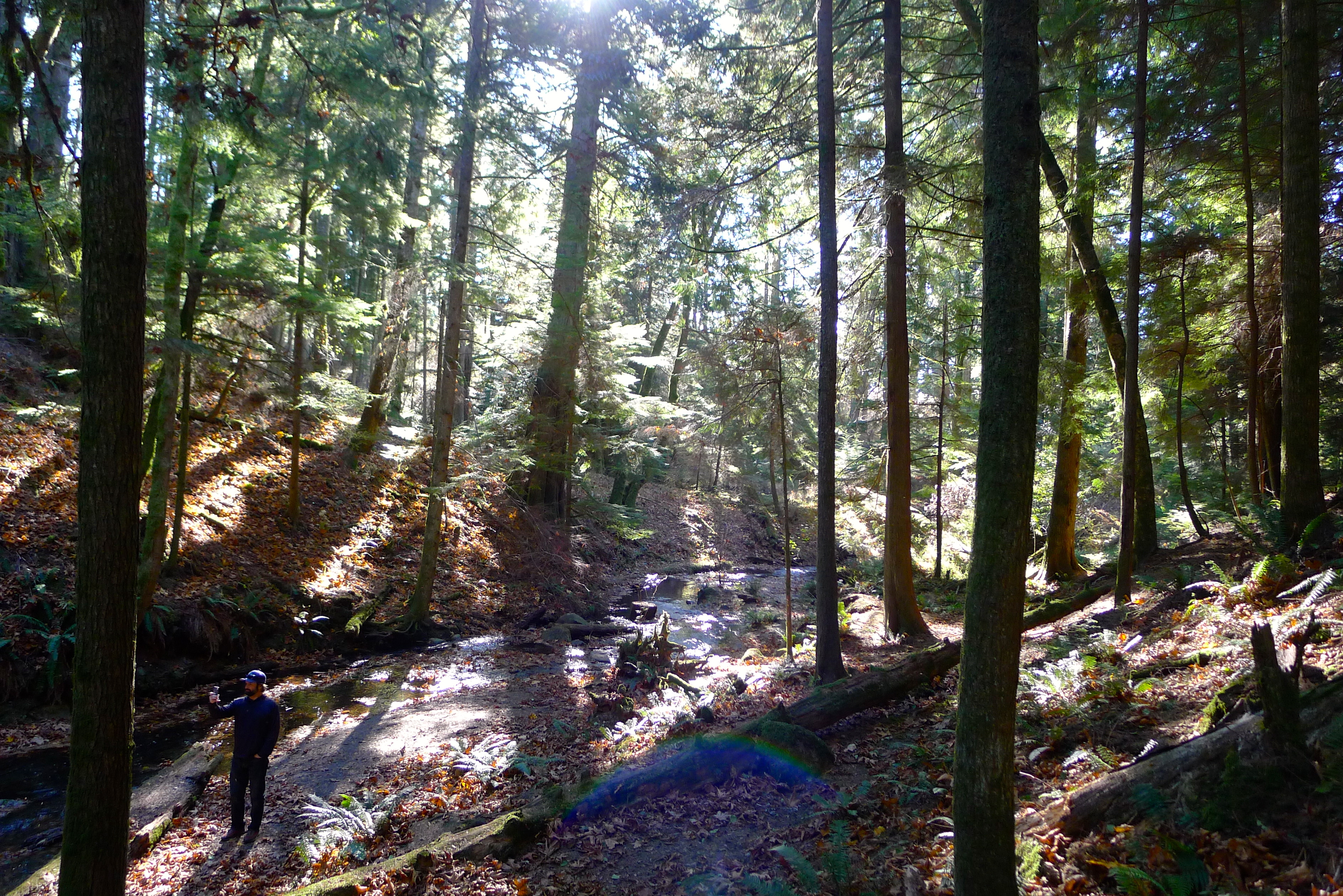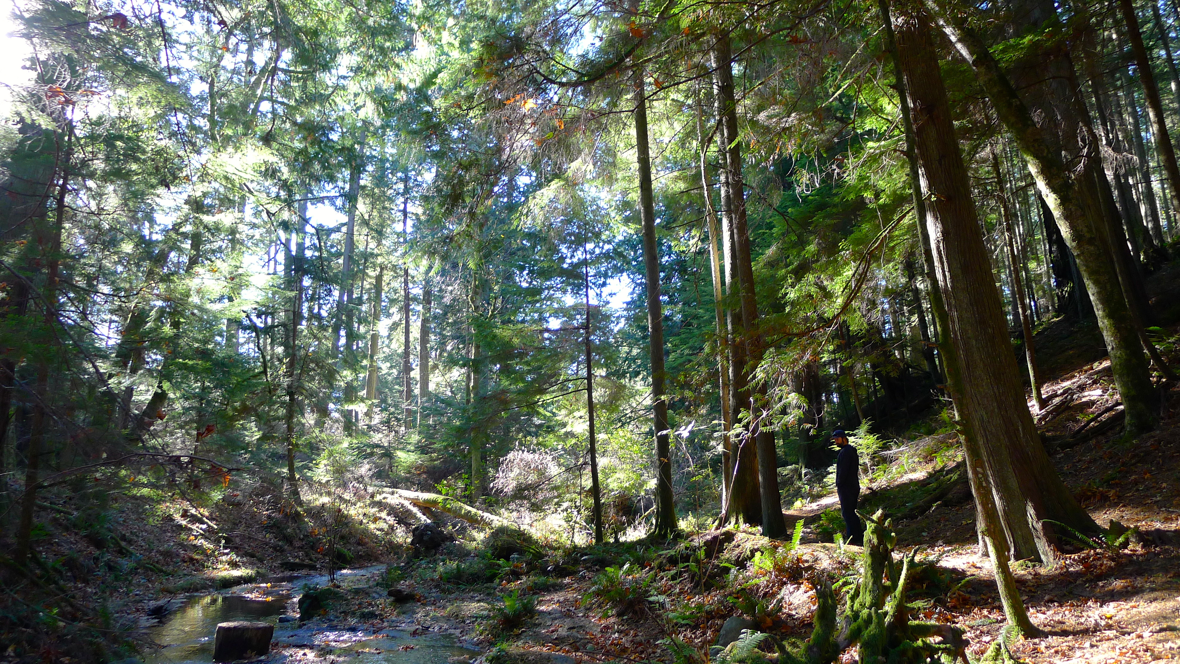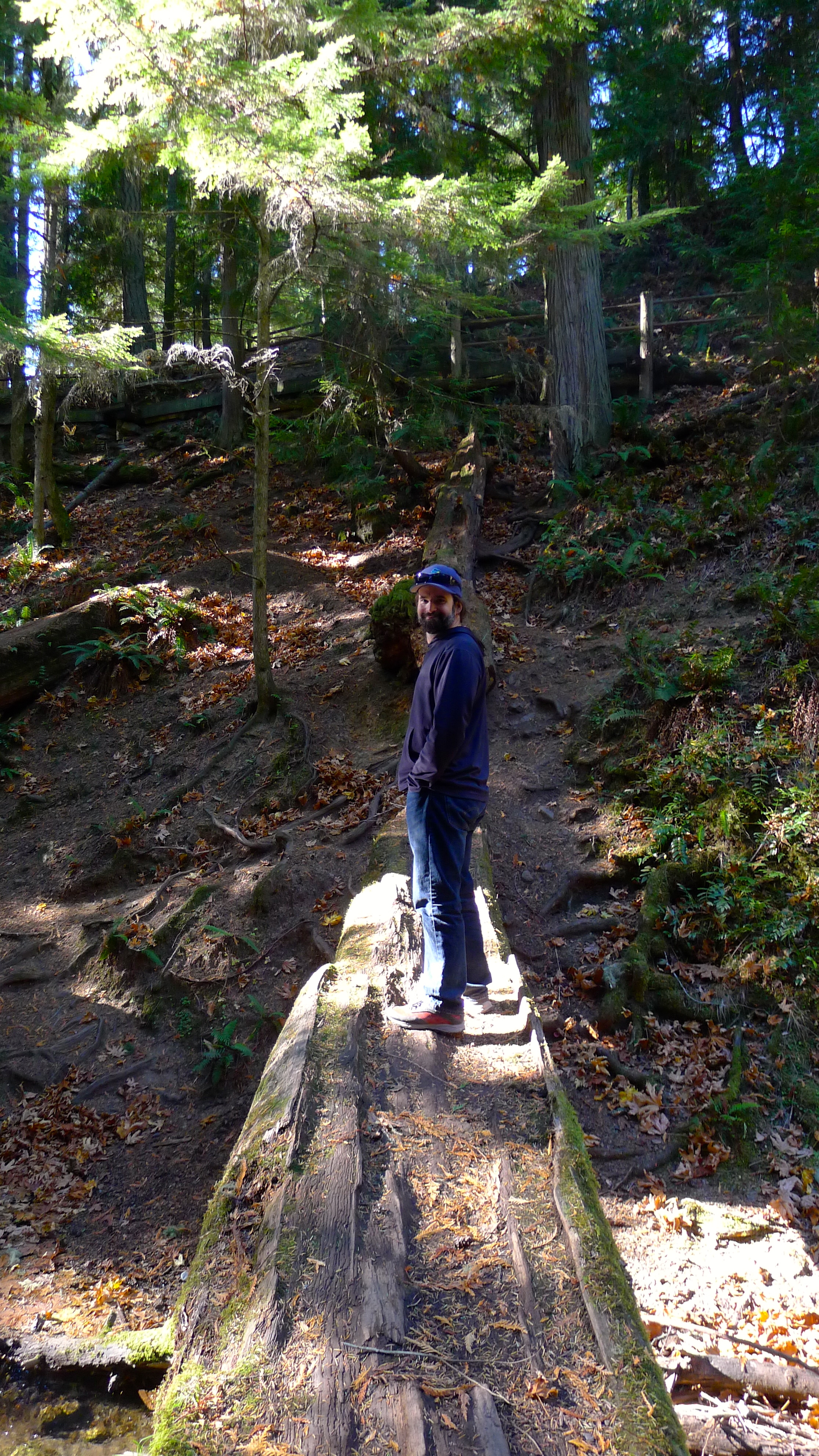 We pulled over to check out Cascade Falls, and it felt like we were lost in Middle Earth. Mossy branches filtered the sunlight. Mushrooms everywhere reminded us that this clear weather was unusual. The forest echoed with the muted roar of the falls, or our occasional gleeful shouts. Our path was covered in ancient tree roots and freshly fallen pine needles, dotted with tiny pinecones. And the trees. Oh, the majestic trees, reaching high toward the sun.