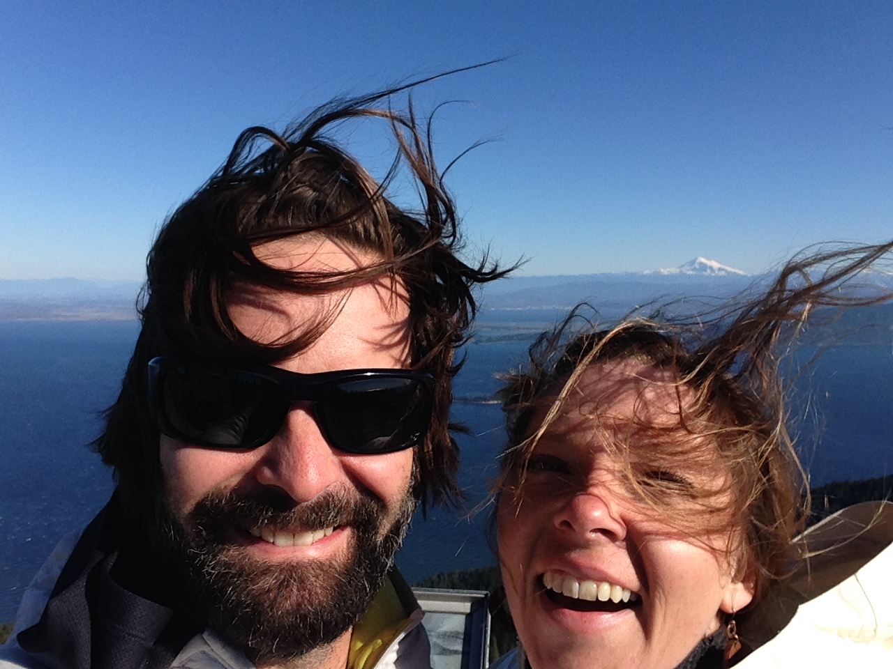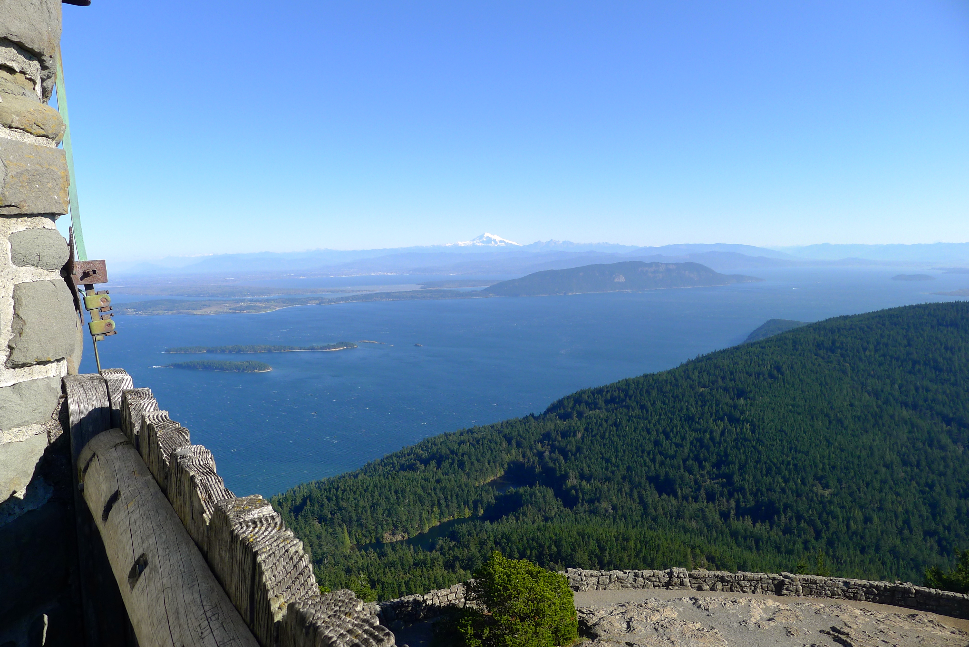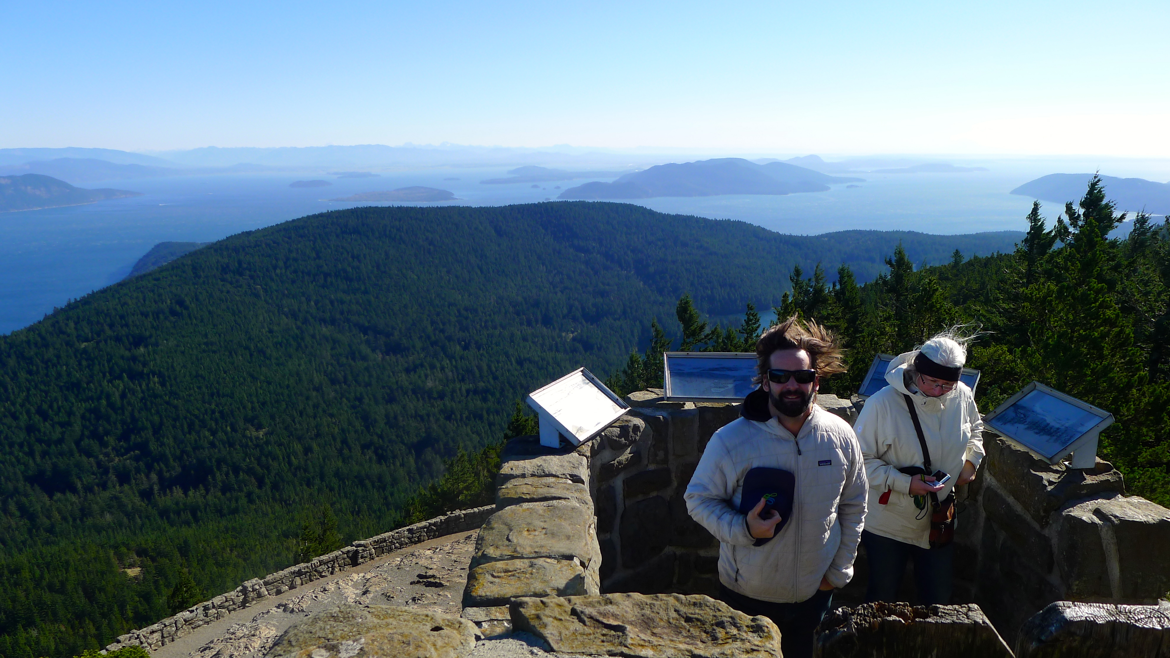 We continued our journey toward Mount Constitution, the highest point on Orcas Island at 2,399 feet above sea level. At the top, there’s a medieval stone structure that serves as an observation tower that was built in 1936. The view was spectacular, Mount Baker in the distance. We stayed as long as we could before we were blown out by whipping winds.
