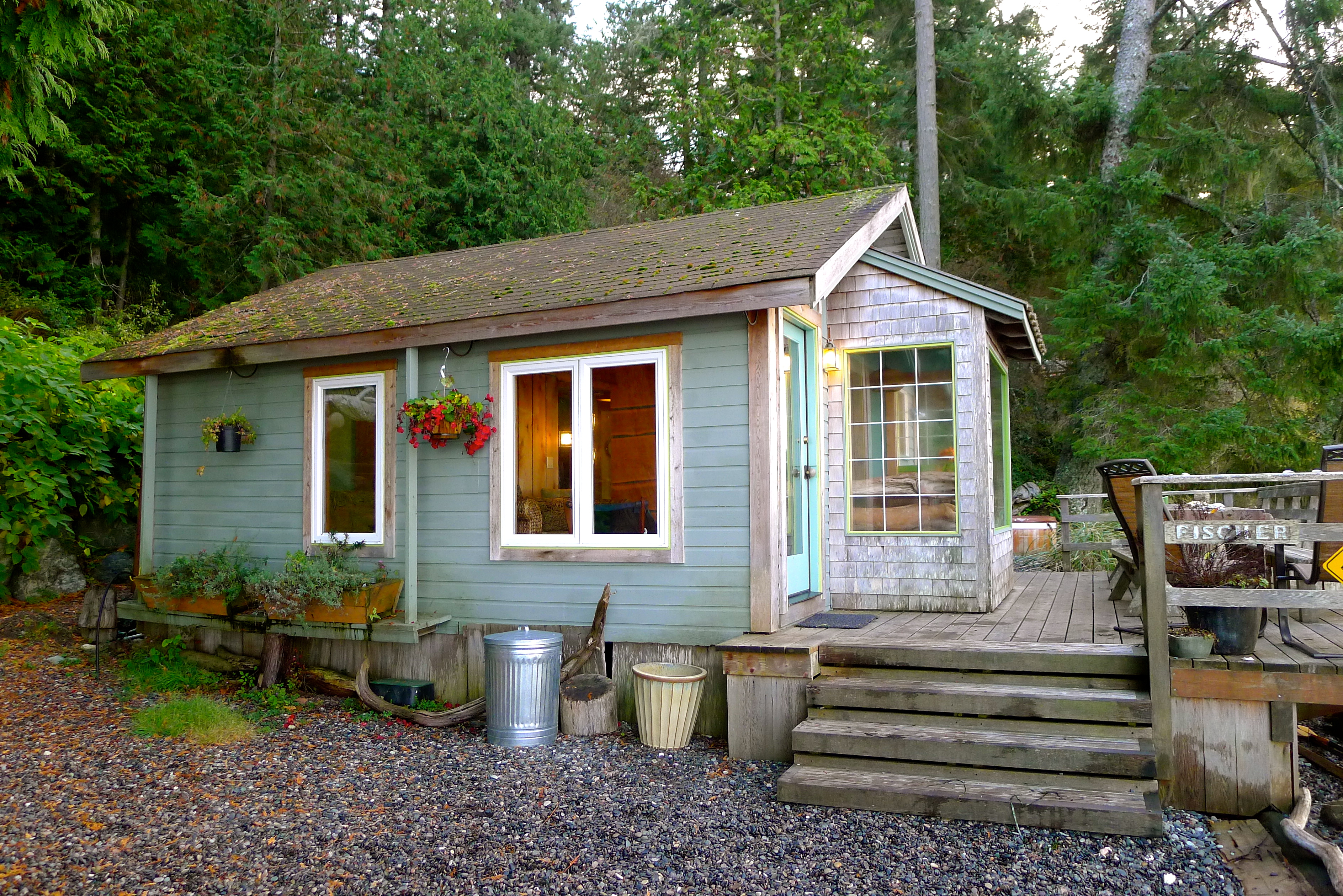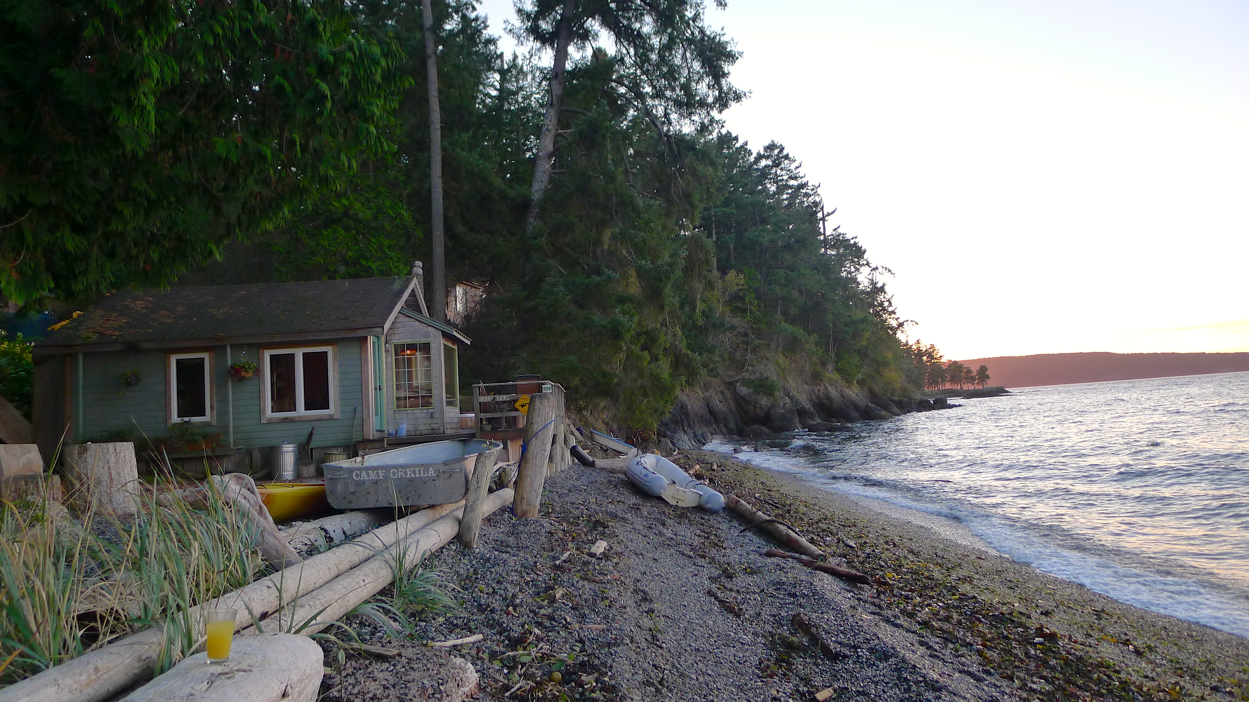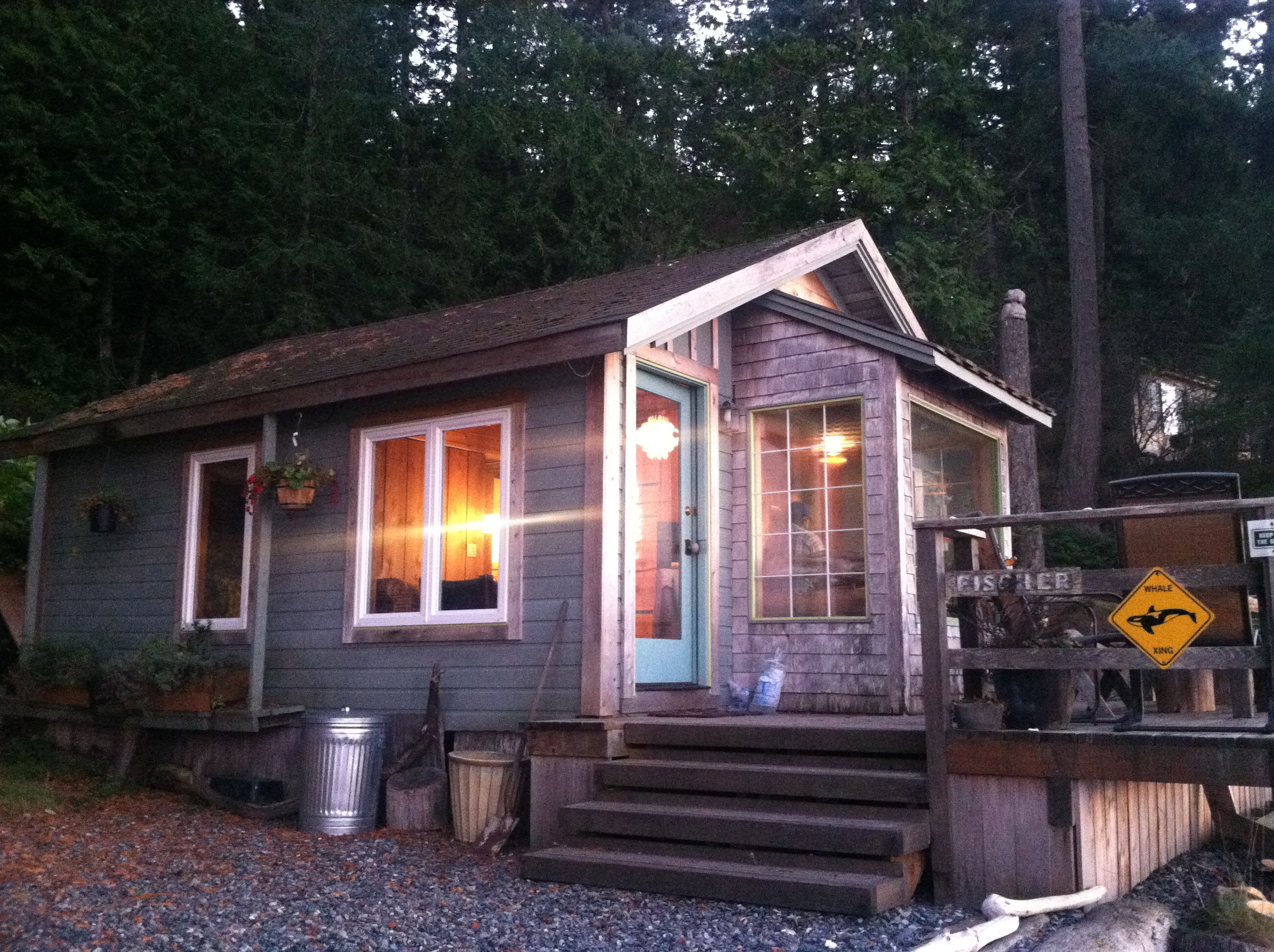 We drove off of the ferry onto a lovely island with rolling hills, farmland pasture, the happiest cows, and dense patches of forest. We turned down a narrow road at a sign for Beach Haven Resort, then at a moss-covered pole with a sign that read, “Fischer.” And there it was– our home for the next two days.