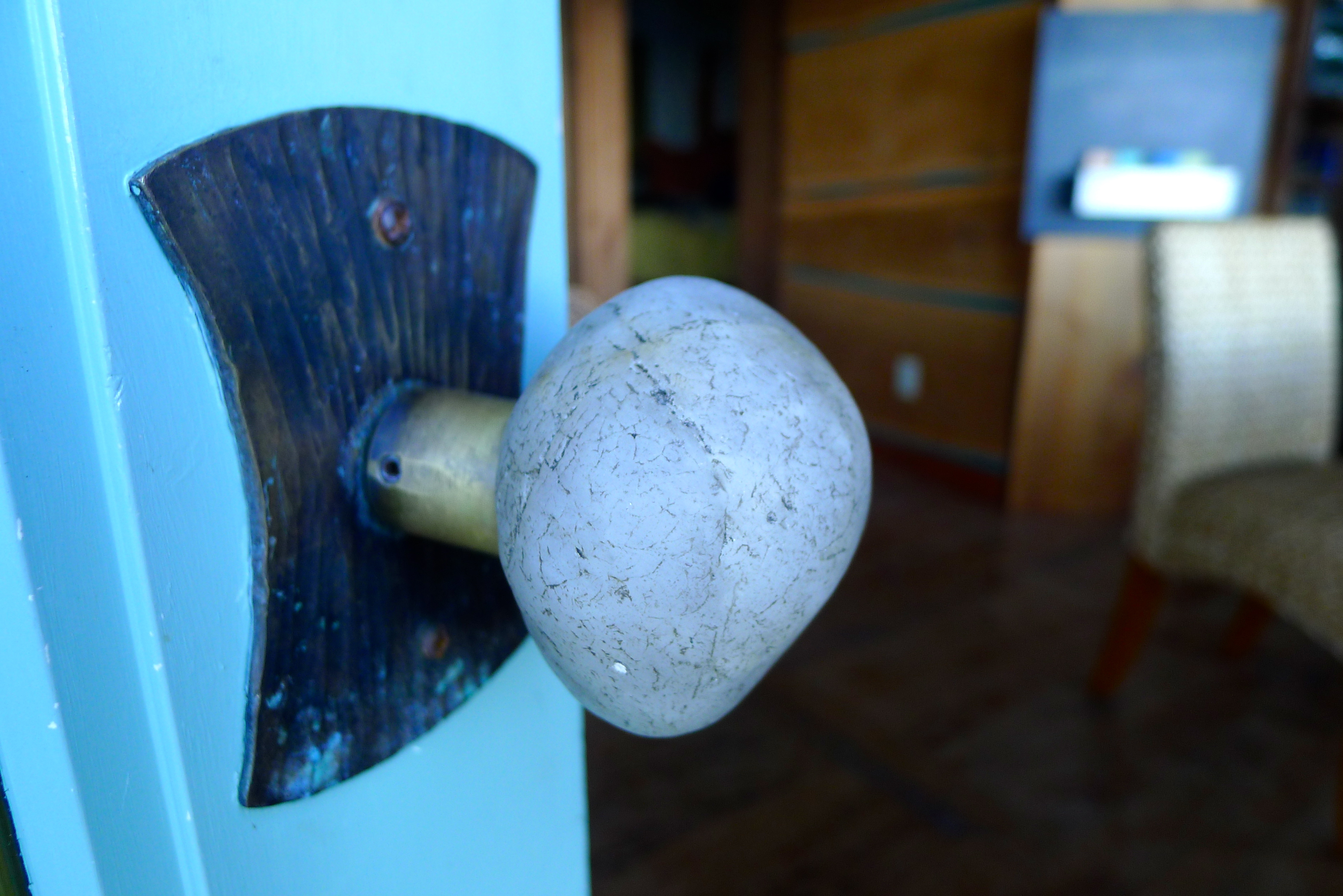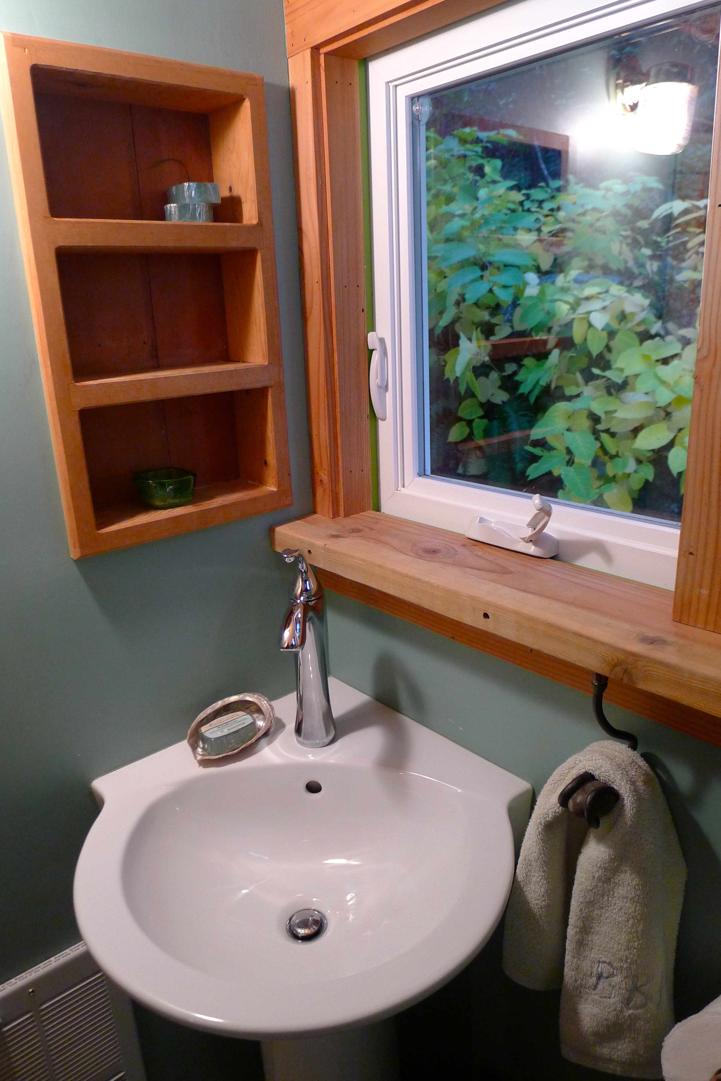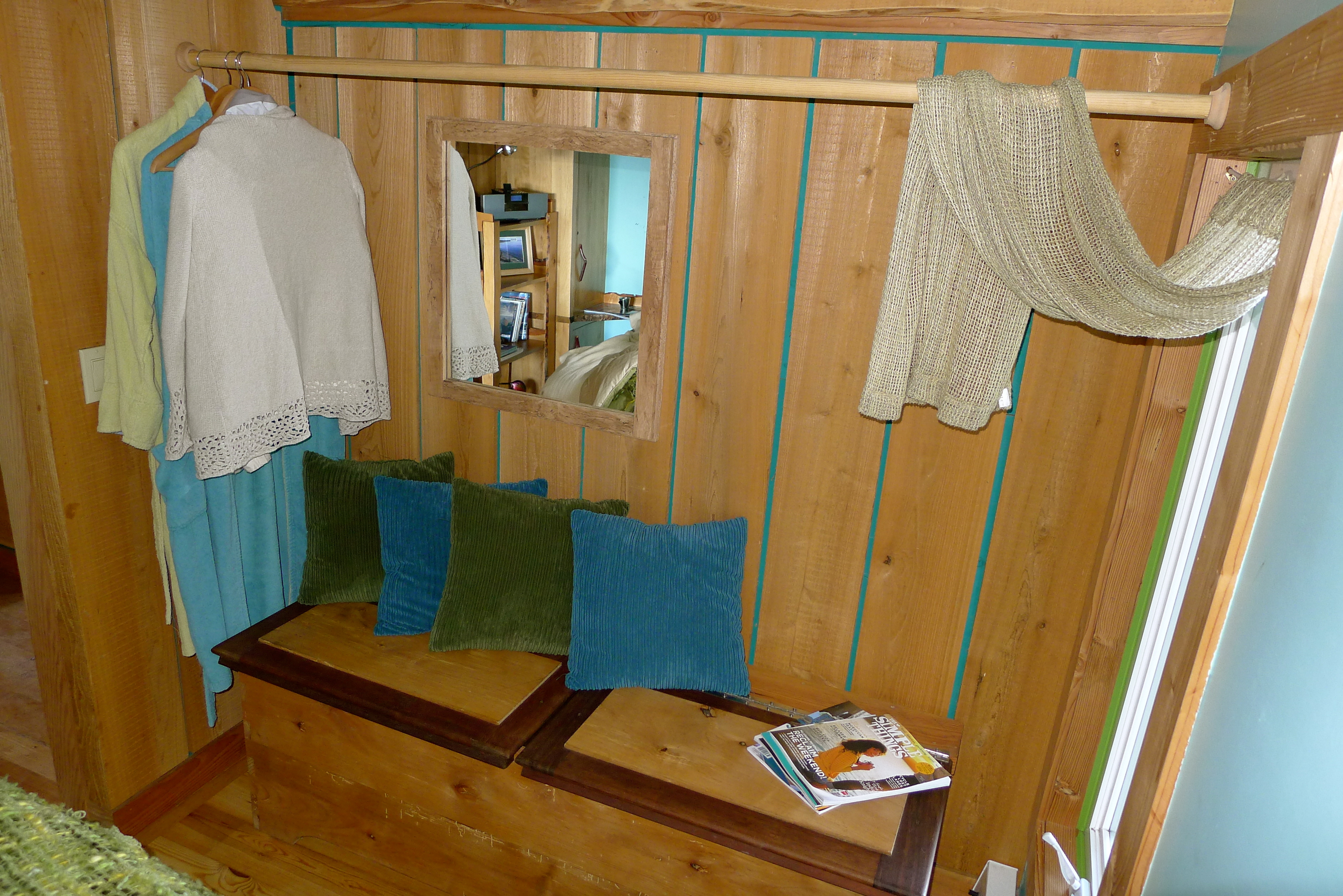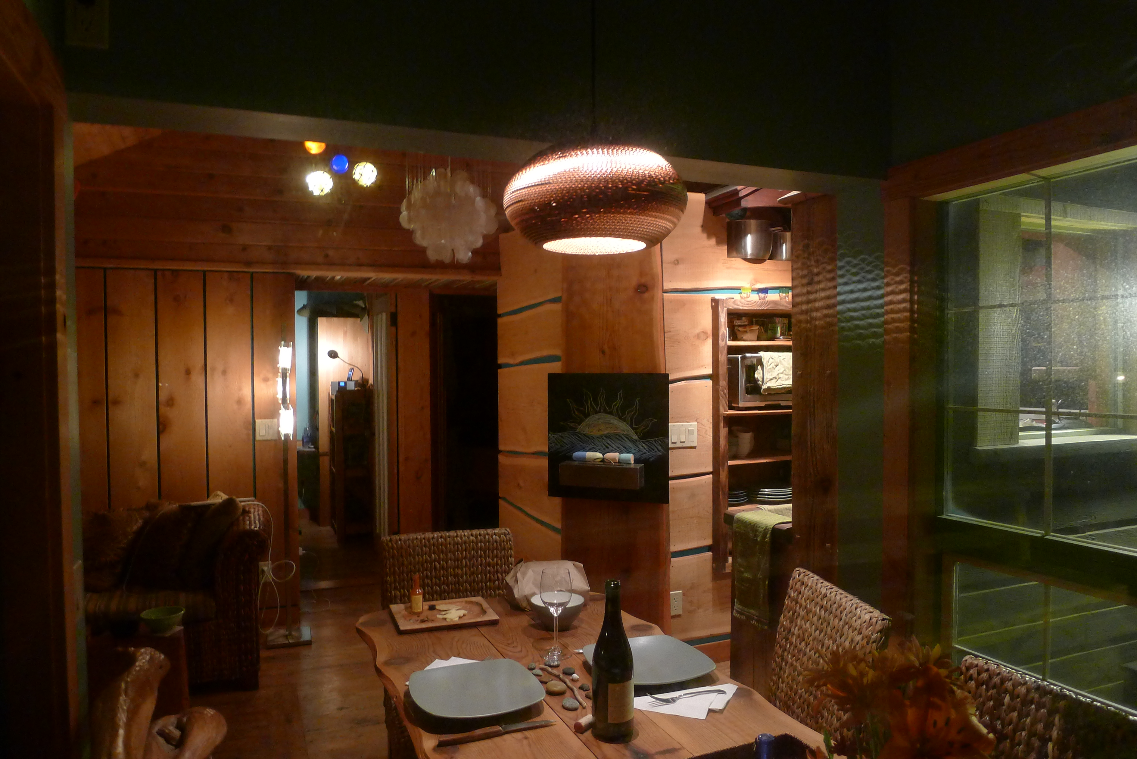 The owner, Mike, explained that the cabin used to be a boathouse for a resort but had been in his family for over 50 years. He’d spent a few years renovating it, using local reclaimed materials. As he gave us the tour, his pride in his work was obvious and appropriate. I was blown away by the perfect details: a stone doorknob; wood planked walls, driftwood furniture, sea glass colors, and an incredibly efficient use of space. It was absolutely love at first sight.