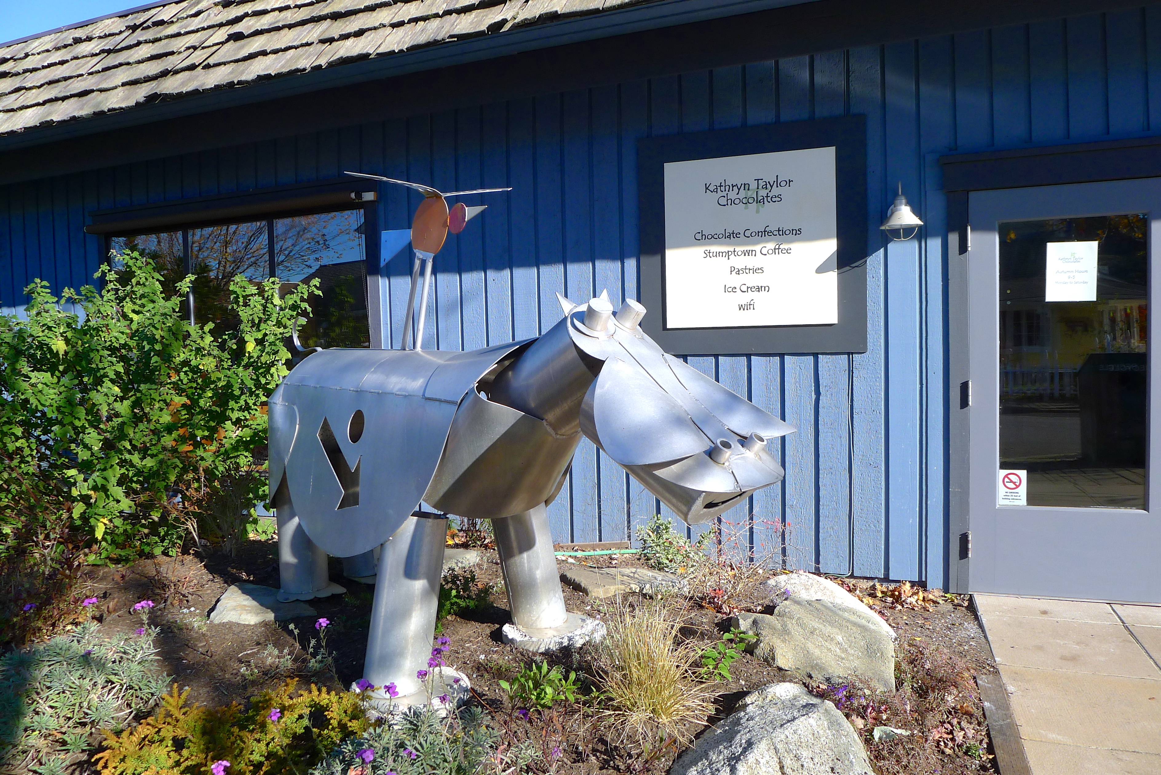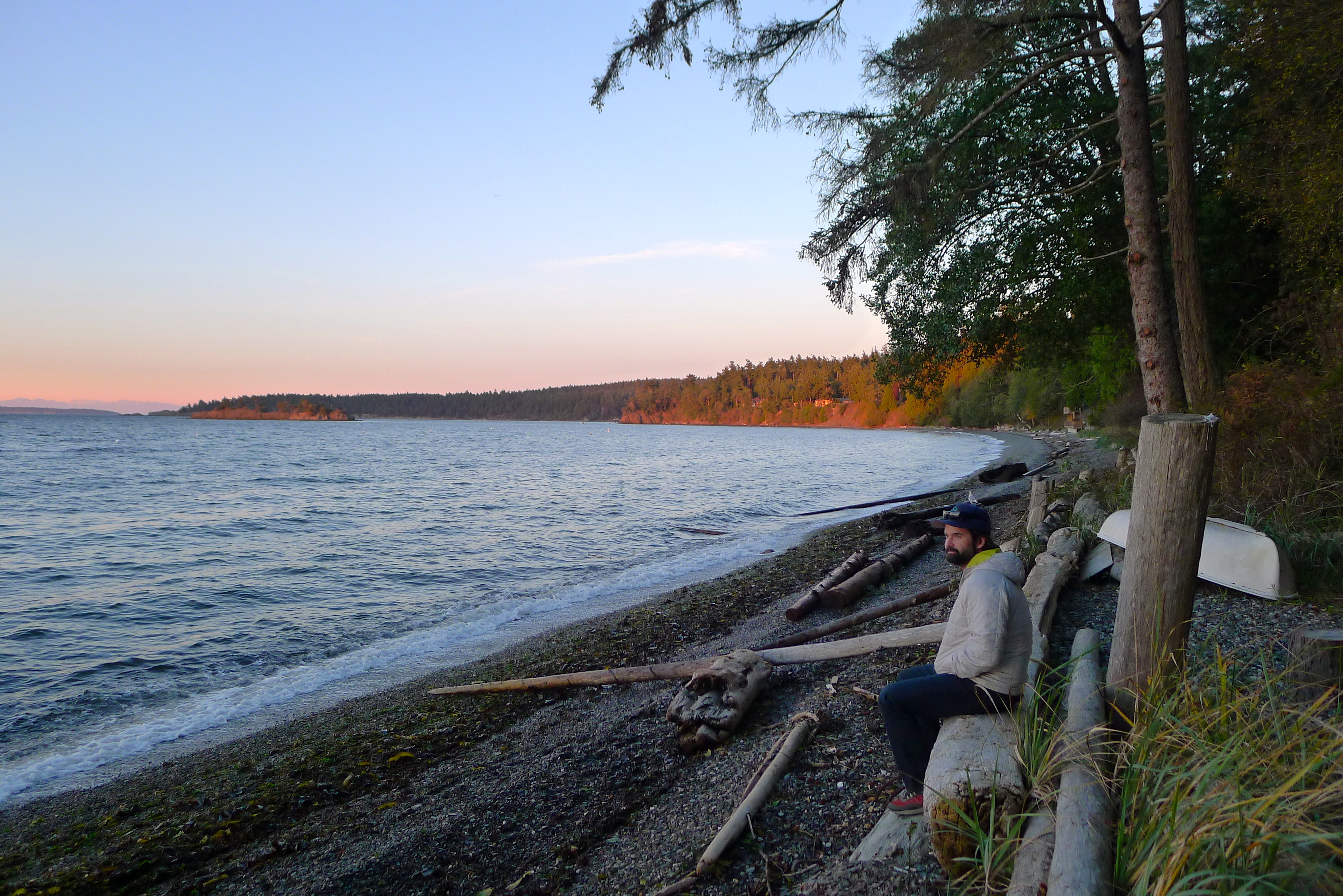The sea was calm when we awoke. I spied a lone bird on a rock, watching the sunrise with me. John met the neighbor, a crusty man named Dave with a twinkle in his eye and a dog named Phoebe. He helped him move his boat, which had been swept down the beach by a recent storm, before we enjoyed our last breakfast at the boathouse.