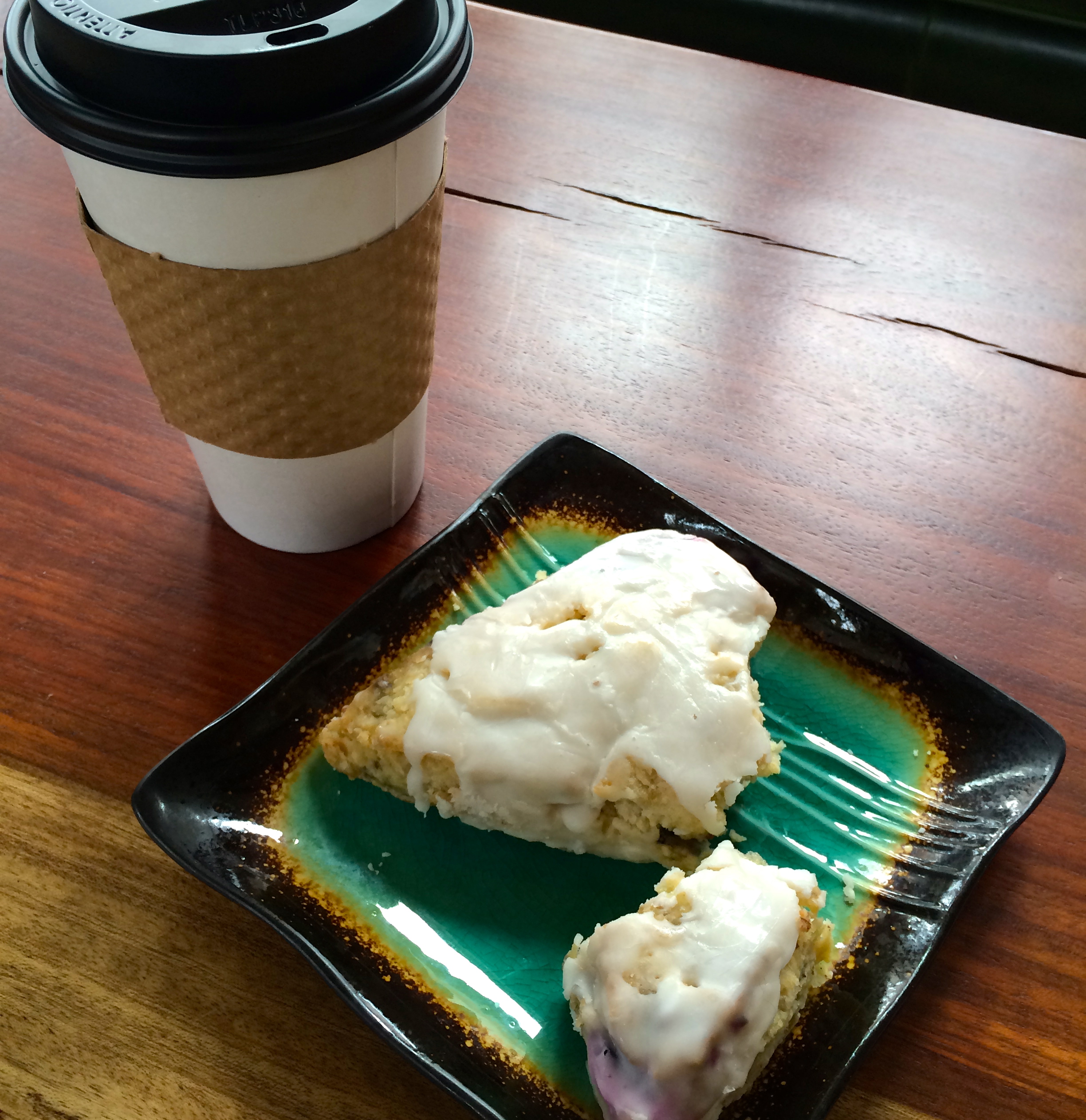 And this morning’s hike was rewarded with a coconut latte and vegan blueberry-lemon scone.