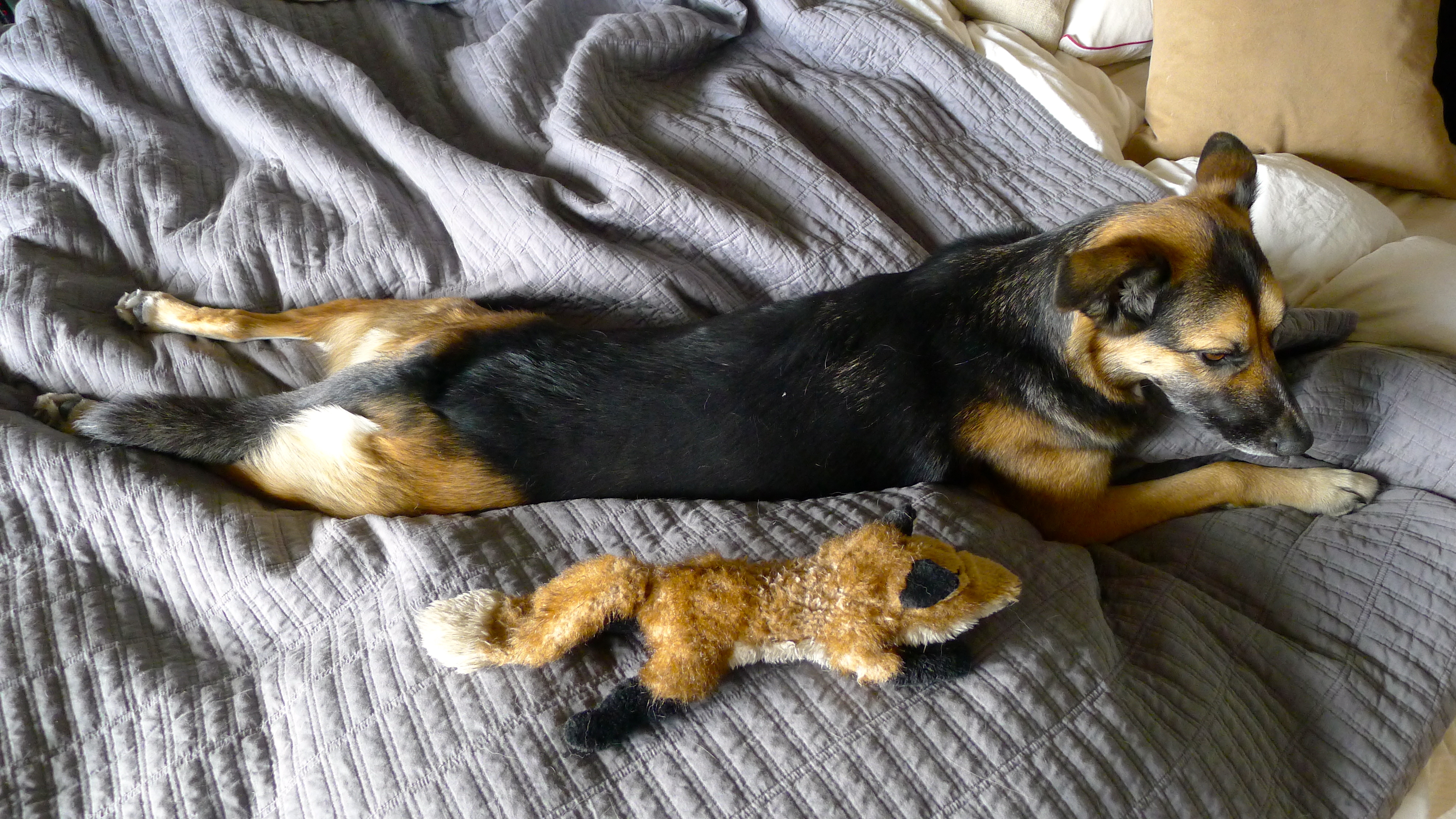 Love your pup as a taco – cute:) Your pup and the fox are in the same position – great capture! I wish you the best with what is going on around the home front:)