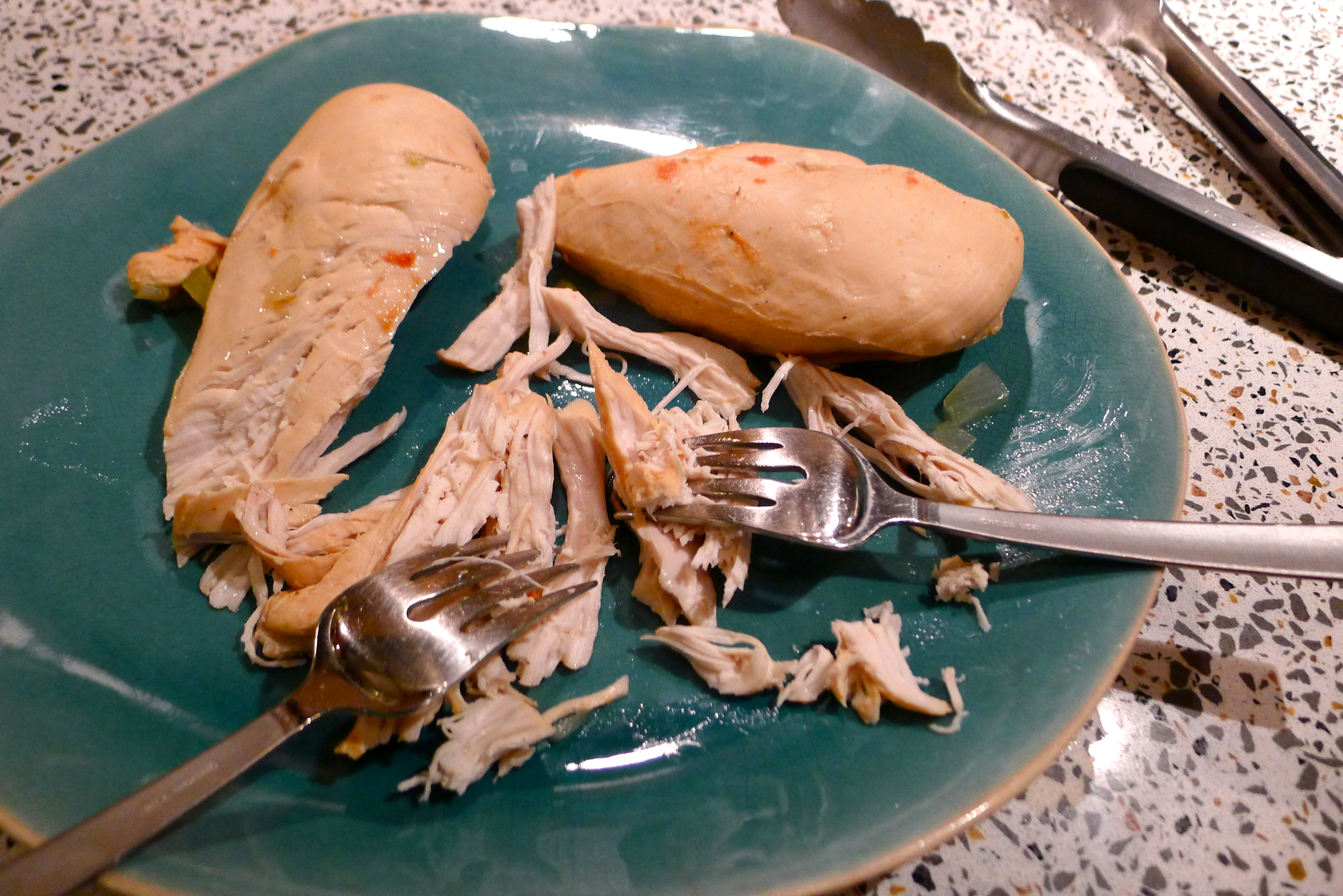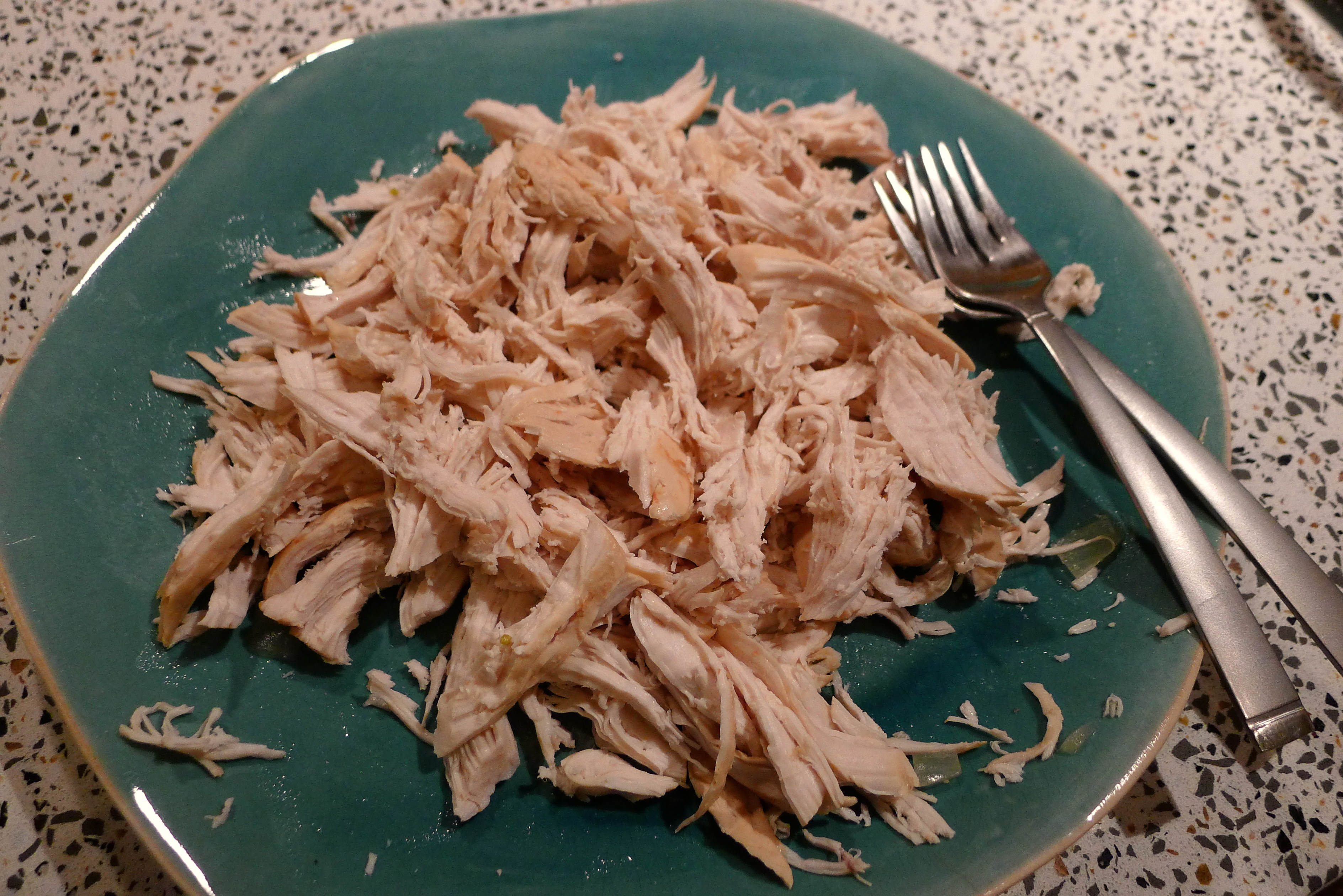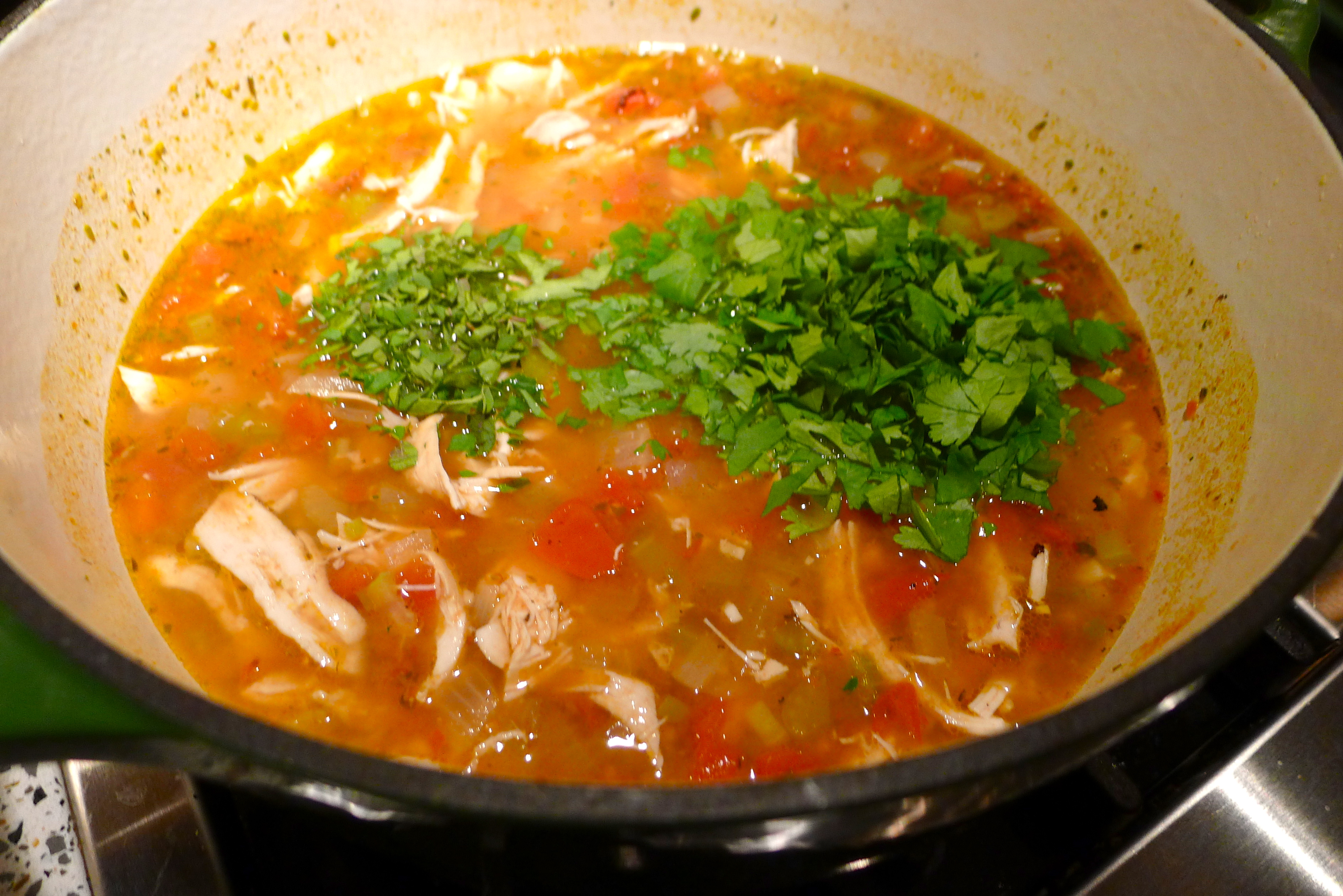 After an hour, I took the chicken out of the pot with a pair of tongs and used two forks to shred the meat. The shredded chicken went back into the pot, along with some fresh lime juice, a little bit of fresh oregano, and lots of cilantro. And that’s all, folks.