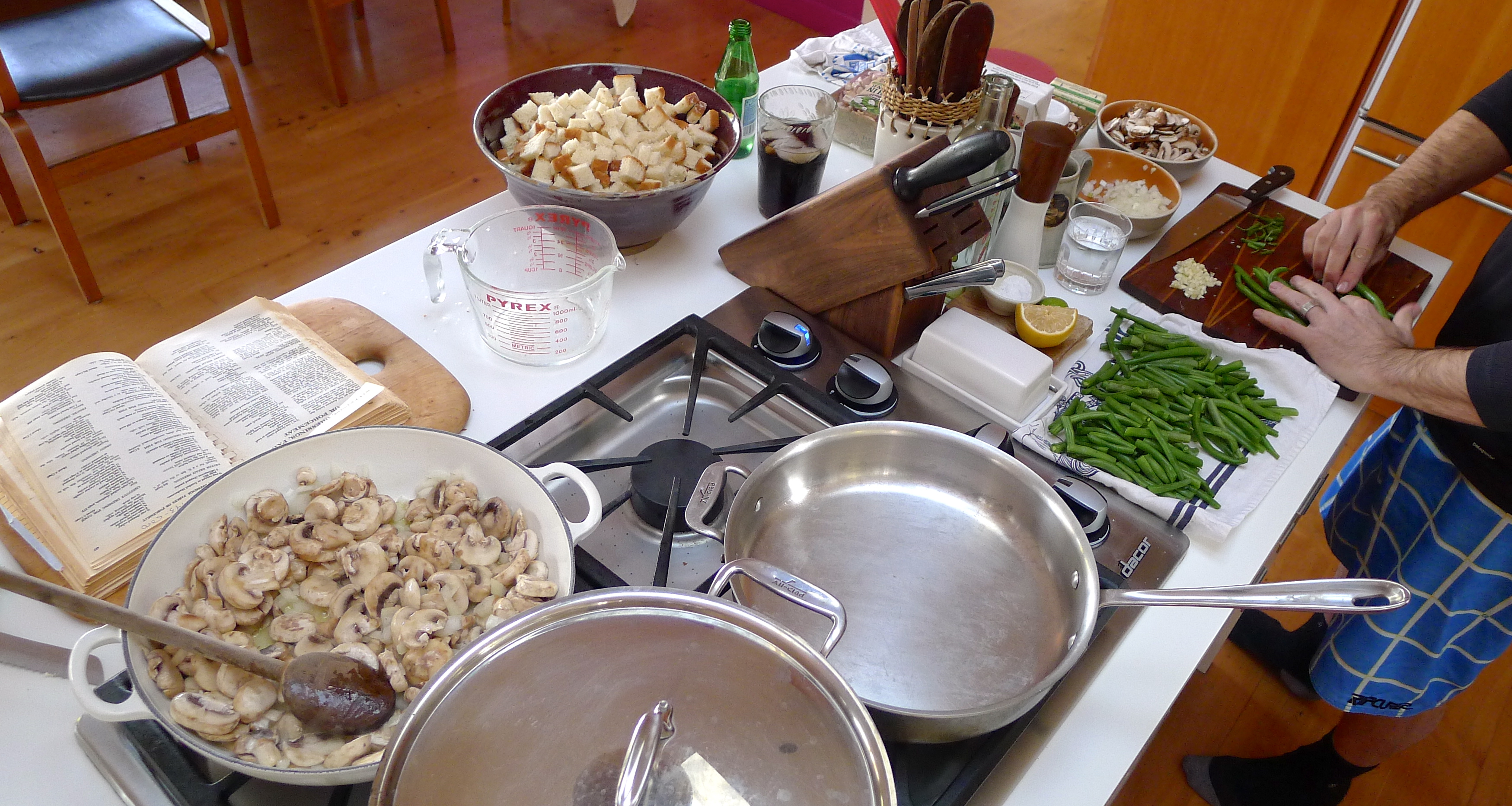 Thanksgiving was a happy day full of food prep, football, and friends. John and Whit continued a tradition of running to the summit of nearby Black Mountain. Lazuli and I filled the stove with simmering pots and pans, chatting the day away. She even made a pumpkin pie from a whole pumpkin! It was interesting to experience another family’s holiday traditions and recipes, so similar to ours but still new. John and I contributed the mandatory fresh green bean casserole, a bourbon oatmeal pecan pie, and a cucumber-dill dish my grandmother always made.