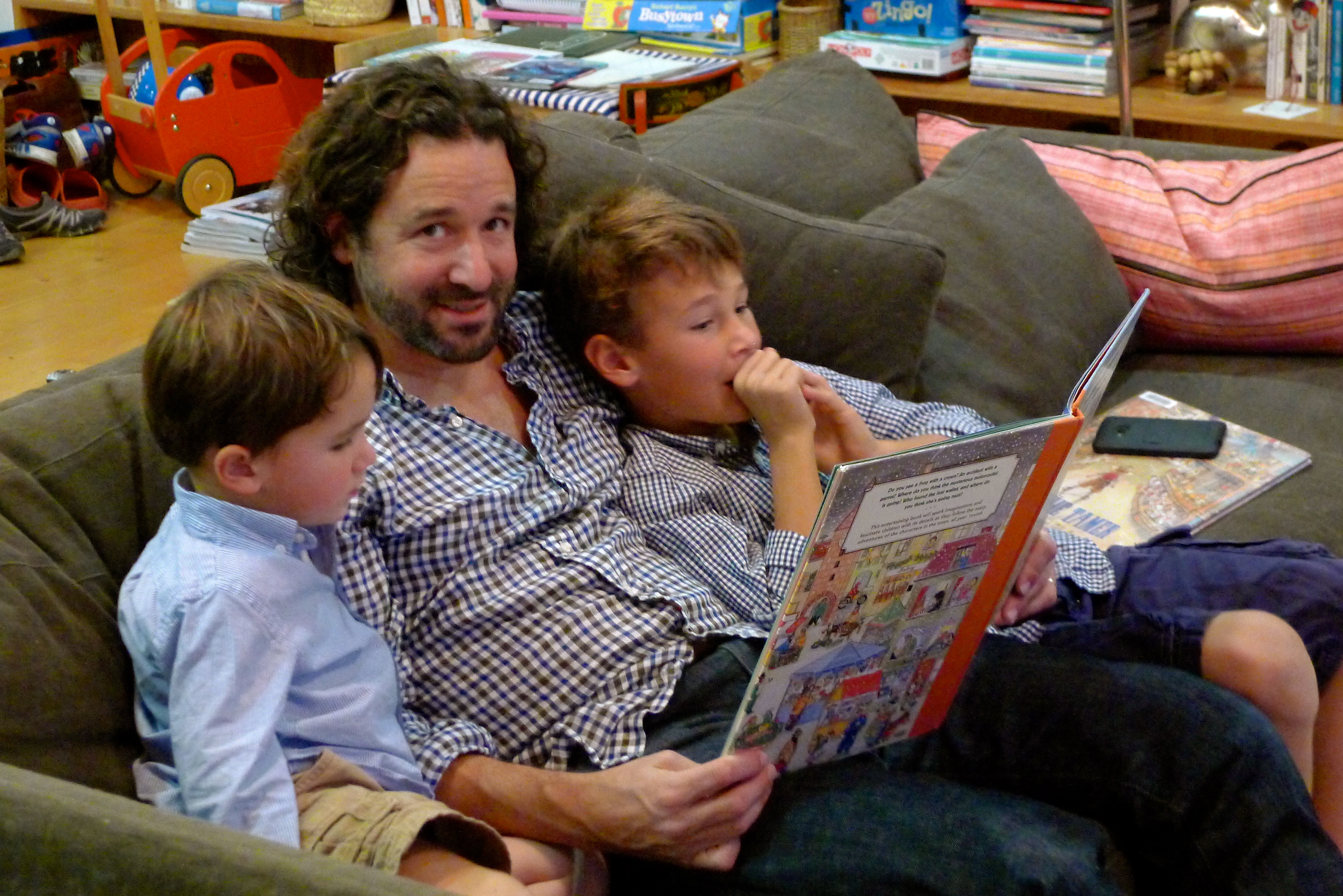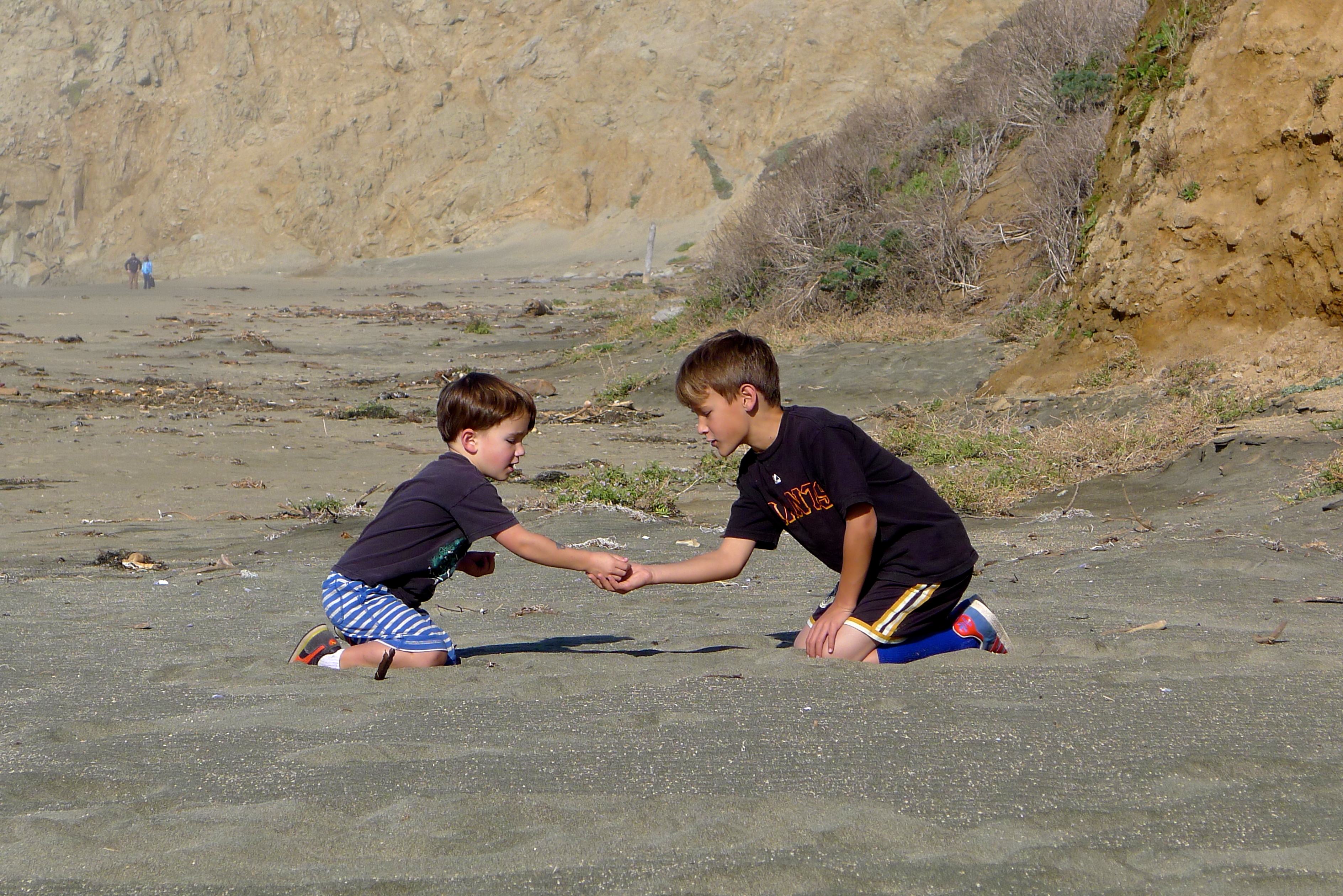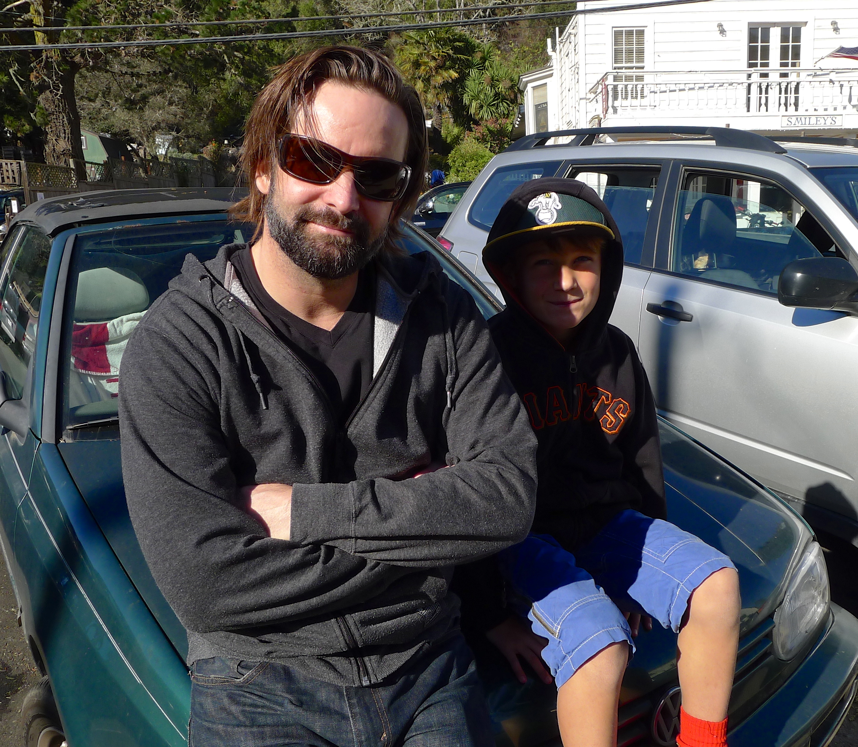 Sunday morning was slightly tainted by the knowledge that we were leaving. We went to the beach in Bolinas, getting our last ocean fix before meeting more friends at the Coast Café for lunch. We made it home with just enough time for what Ozzie and Huck considered the MAIN EVENT: individual wrestling matches with Johnny (aka the Hairy Ninja). Johnny/Ozzie matches are a tradition every time we visit, but this year, Huck would have his own battle. Amazing moves!
