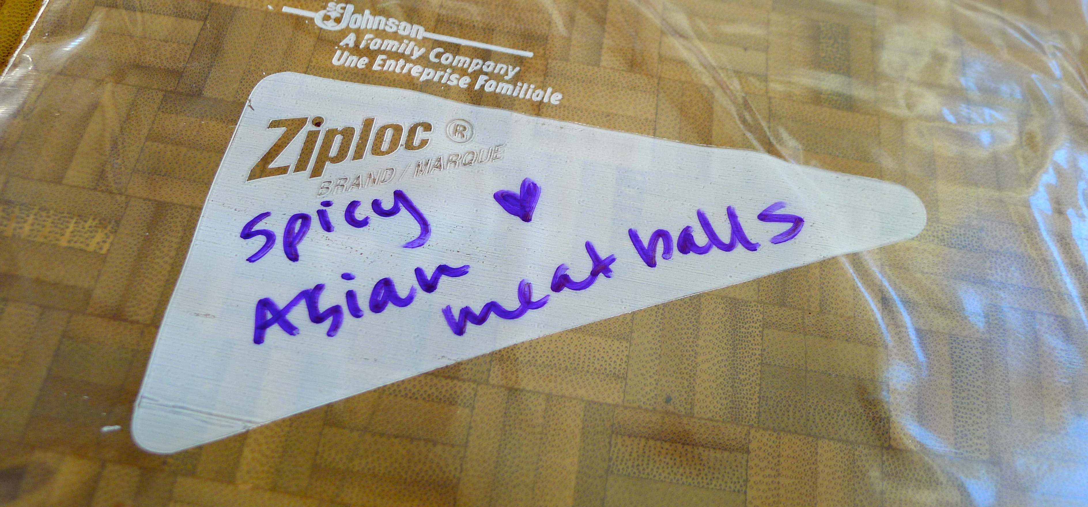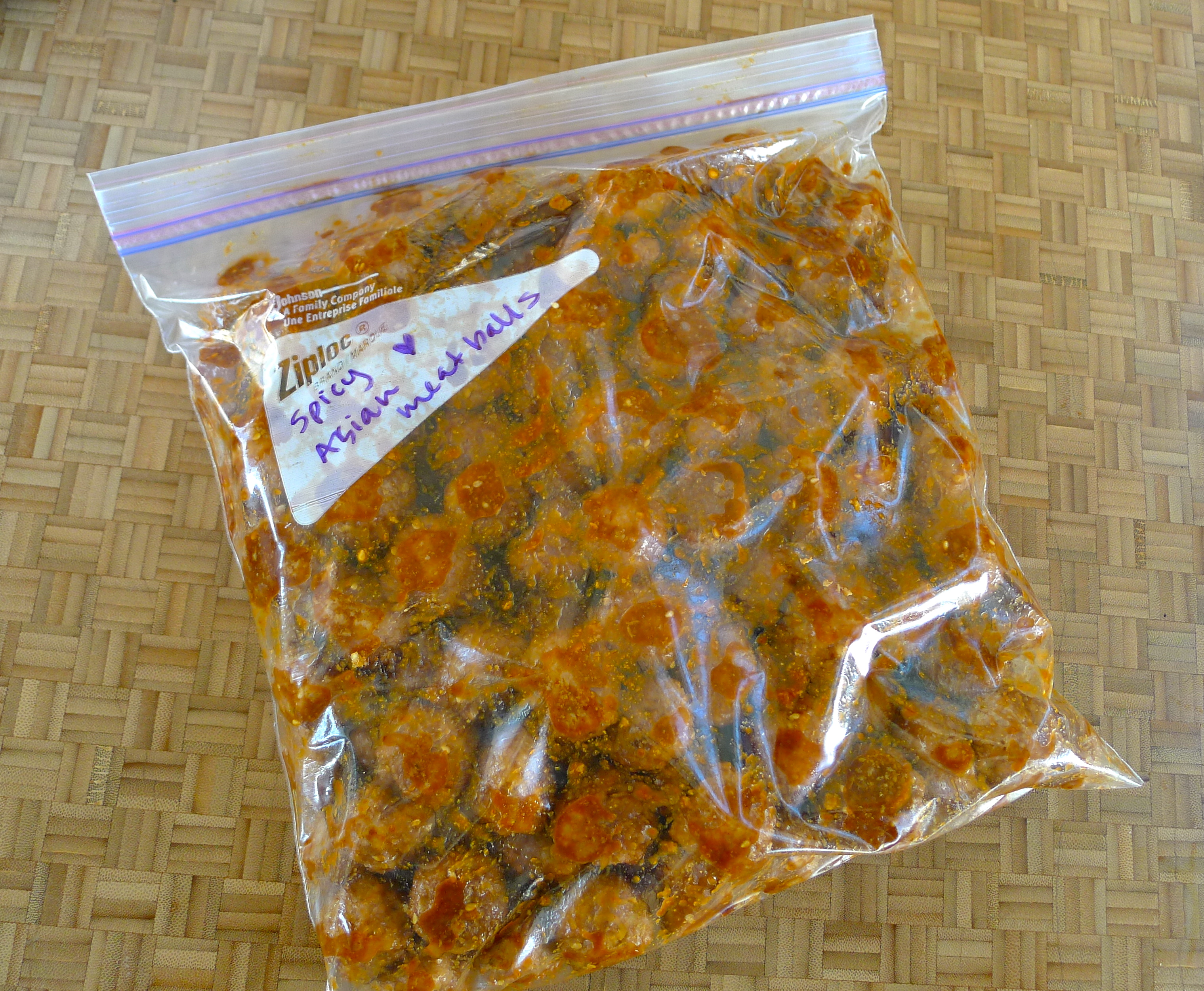 In a bowl, combine hoisin, rice vinegar, plenty of Sriracha, minced garlic, soy sauce, ground ginger, and sesame oil. Adjust the heat to your liking. When the meatballs have cooled, put them in a big bowl and pour the sauce right over them! Carefully stir the meatballs so that each one is coated in sauce. At this stage, you can serve them right up- or pop them in a freezer bag and freeze them until game time. Heat these saucy meatballs in a skillet and you’re good to go!