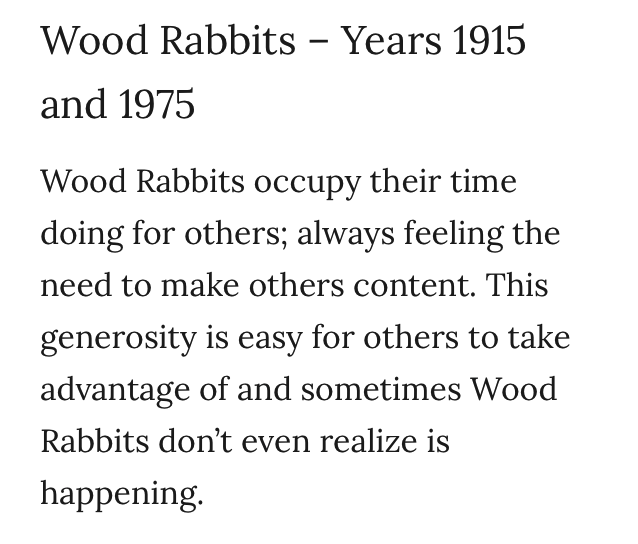 I’m a Wood Rabbit and this is totally accurate.
