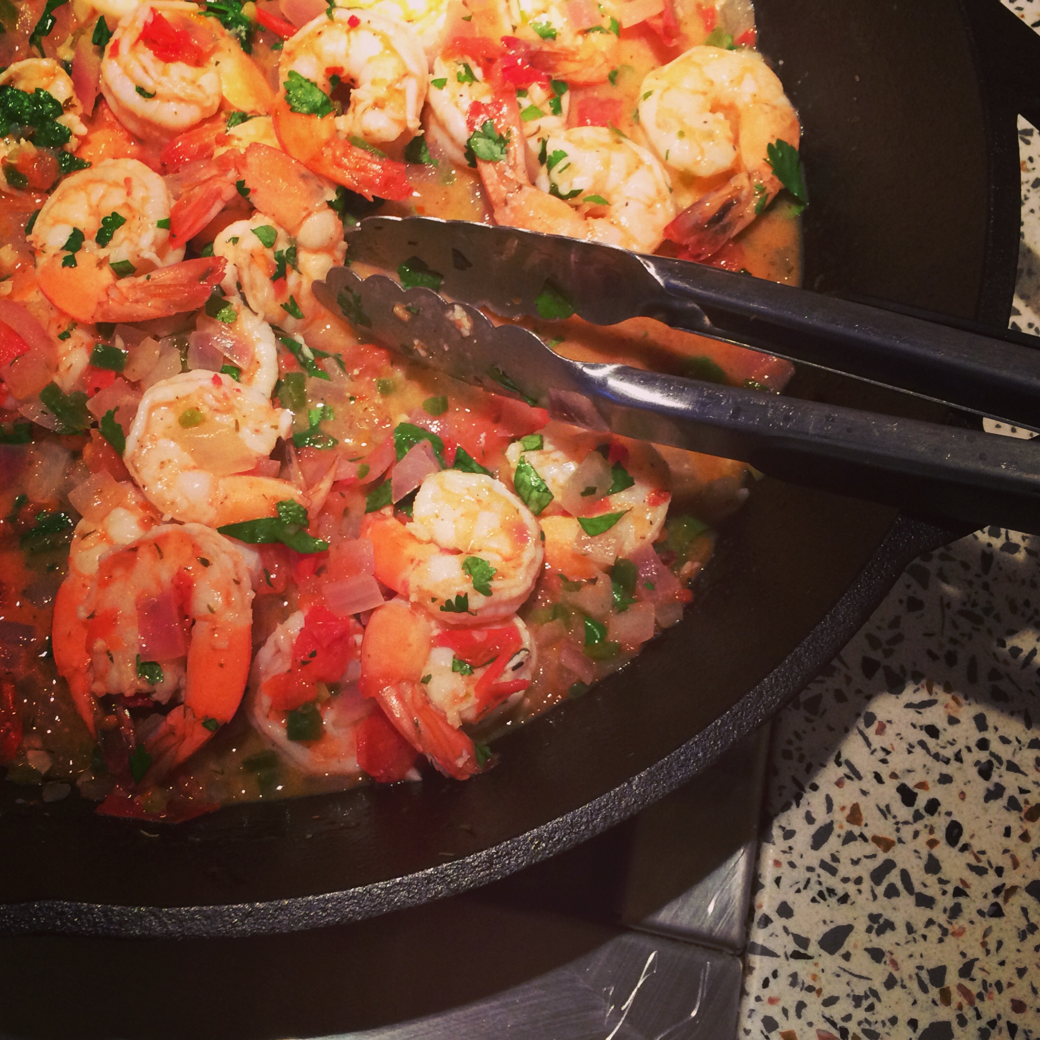 Cilantro-lime shrimp! I love my cast iron skillet.