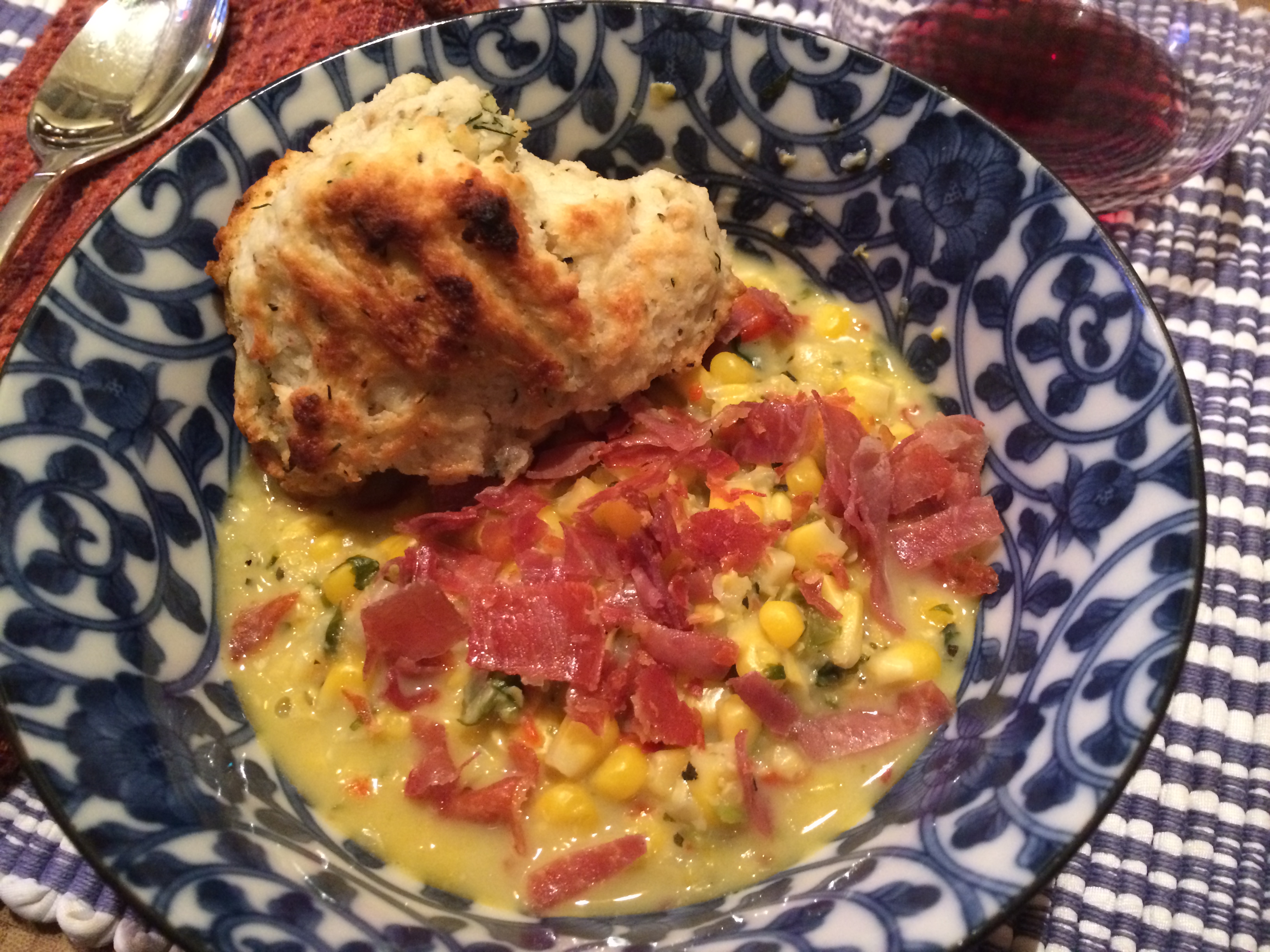 We ate biscuits with risotto. We ate biscuits with corn chowder. We ate biscuits for breakfast, toasted with butter on them.
