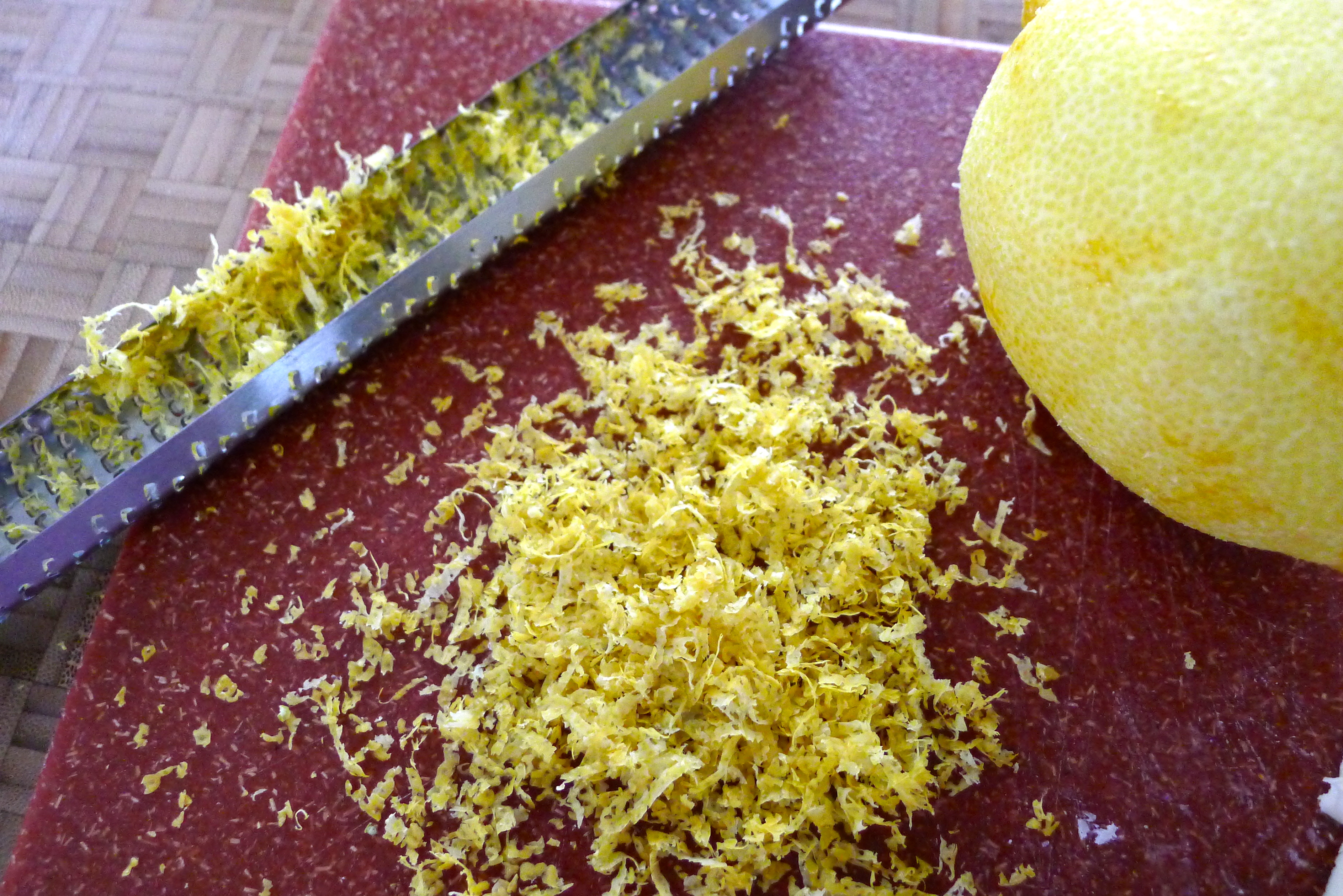 The recipe has a couple of interesting ingredient choices (whole wheat flour, olive oil) to make a slightly healthier version of traditional scones. I used the food processor to combine the ingredients, which made it far simpler than I expected! First, I blended the dry ingredients- flour, sugar, baking powder and soda- with lots of lemon zest.