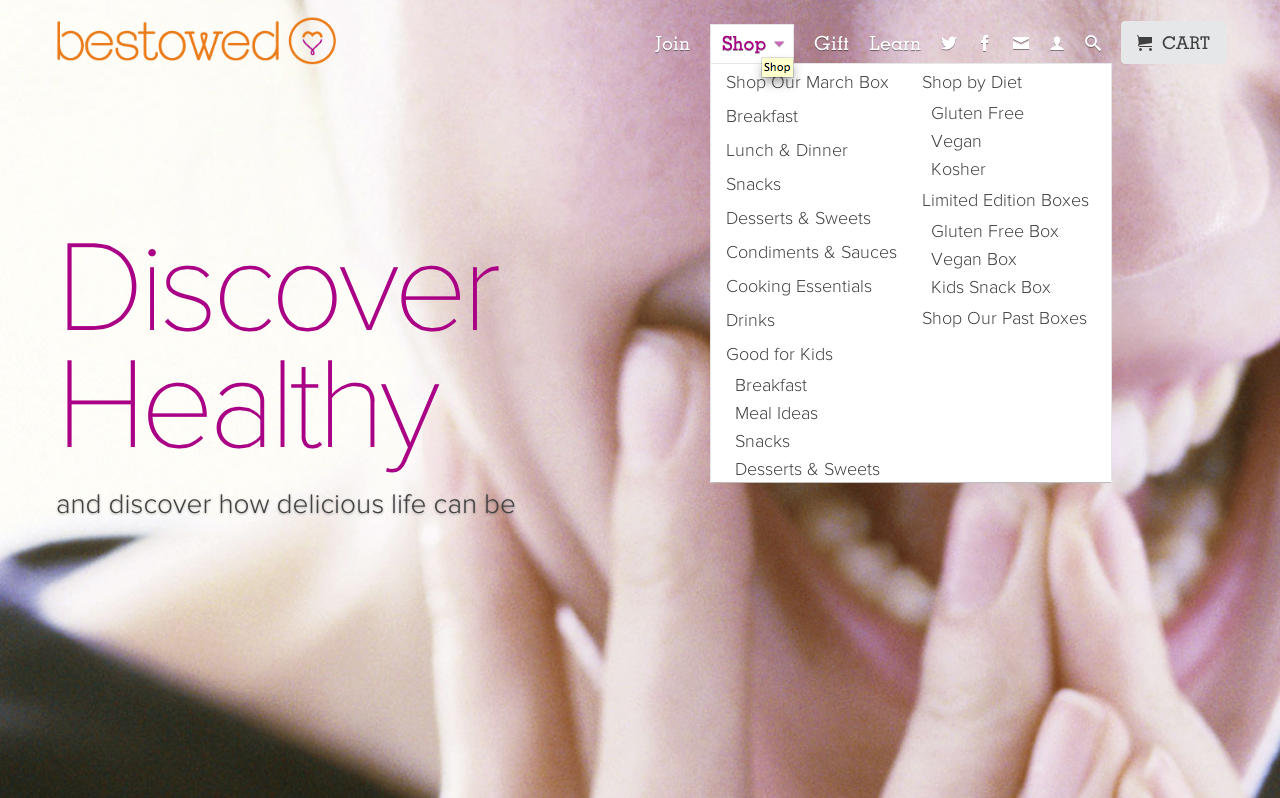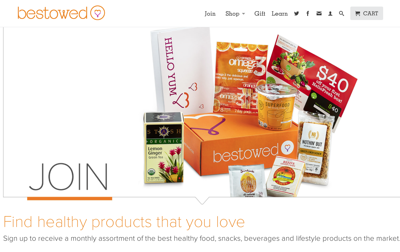 Instead of booze or sweets, what about healthy food? Anyone who’s wandered the aisles at Whole Foods knows that the good-for-you food trend is here to stay. Organic. Gluten-free. Vegan. No GMO. There are countless options to cater to specific dietary needs or health-conscious lifestyles. We’re lucky to have good food available to us, but how do you know the tasty options from the ones that taste like cardboard? I can’t count how many times I’ve bought a pricey box of organic whatever, only to taste said whatever– and have it grow stale in the cupboard, ignored. Enter Bestowed.