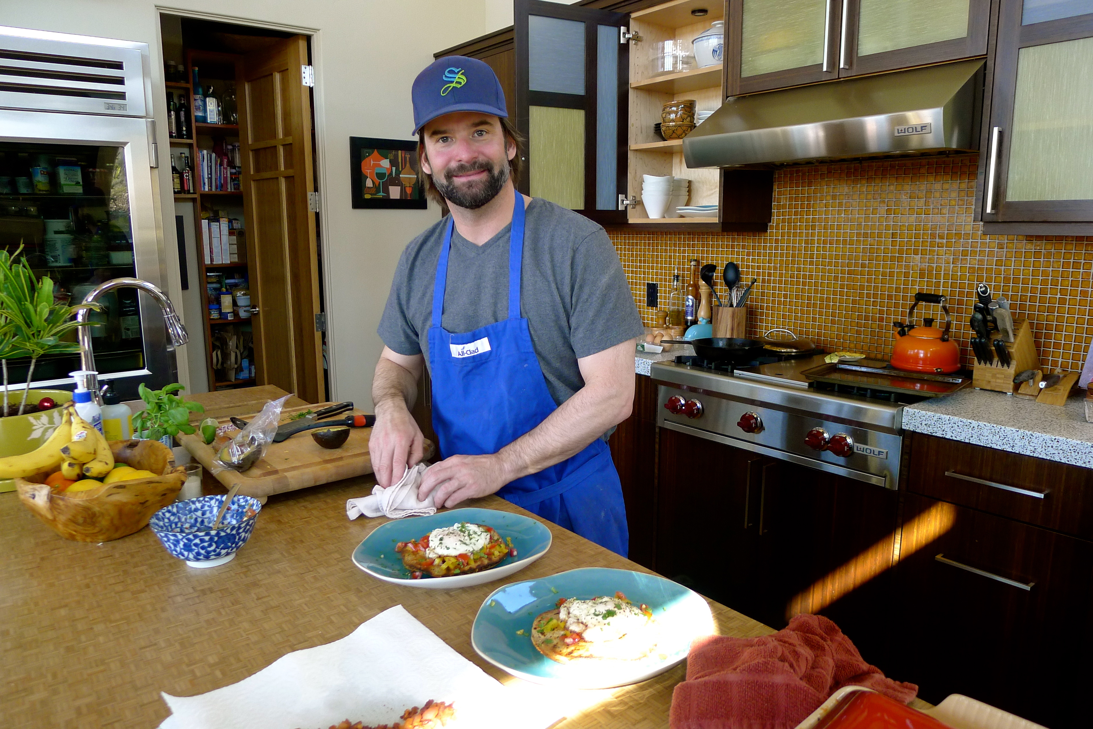 As much fun as it is to play away the weekend, it’s also often the only available time to tackle the ever-present to-do list– and this weekend, our list was long. So we set aside Sunday as a “work” day, helping each other through dishes, laundry, a mountain of glass and cardboard recycling, hanging neglected artwork, paying bills, etc. But not before John made breakfast.
