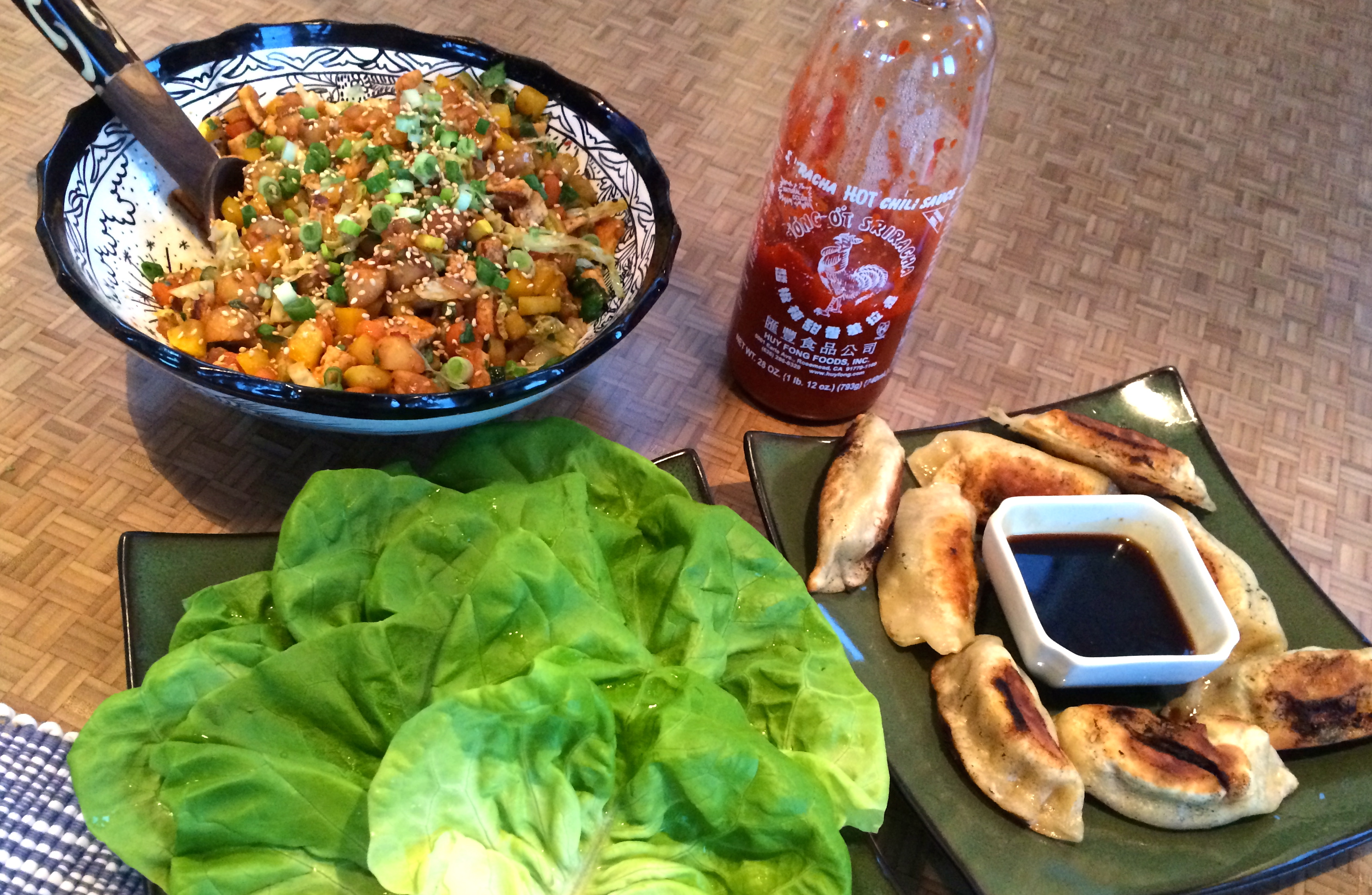 We had spicy tofu lettuce wraps and potstickers for dinner. #srirachaforever