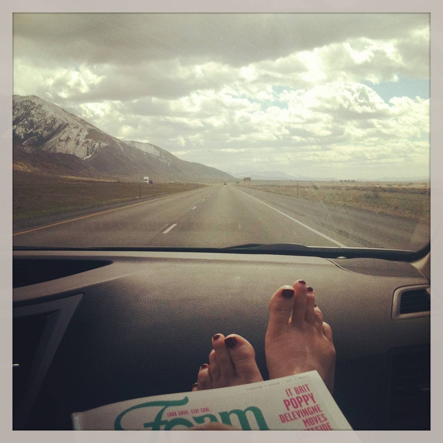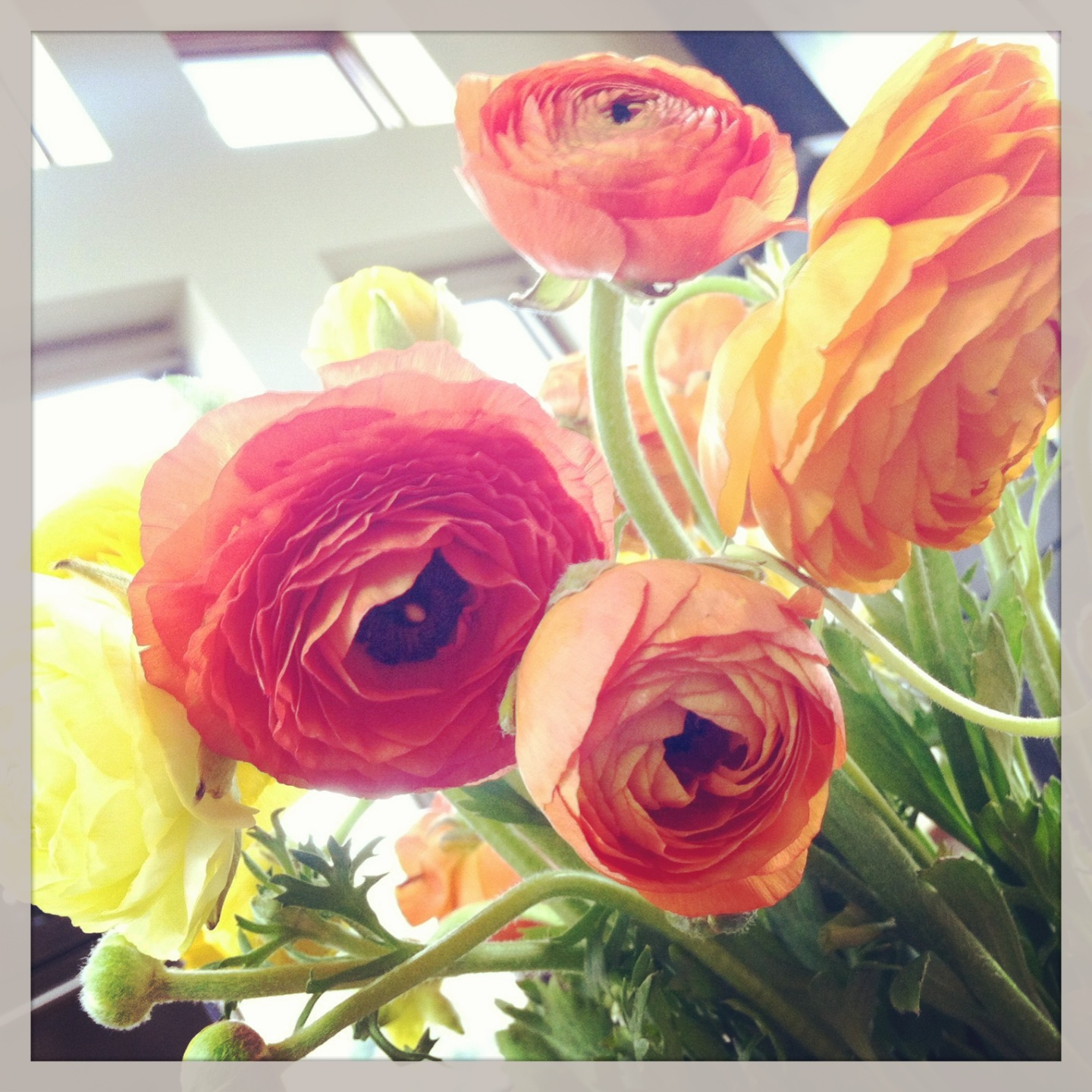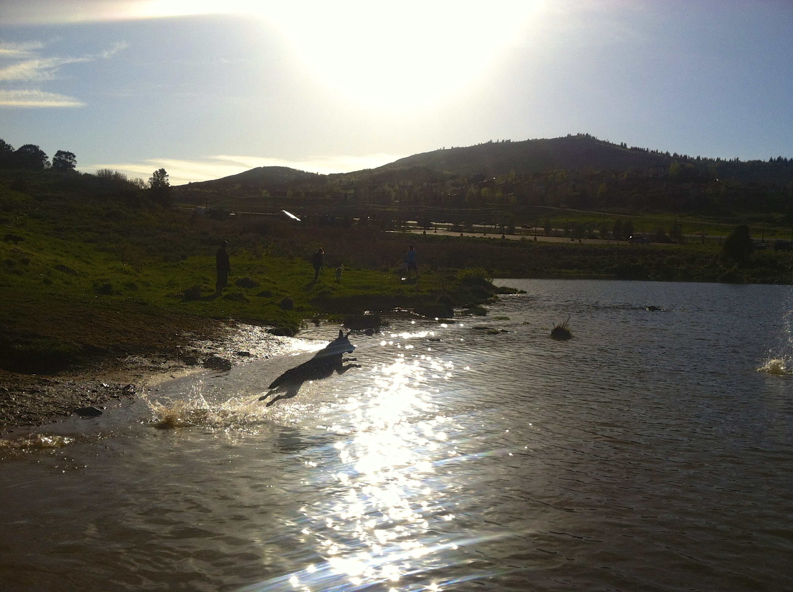 Flowers everywhere– in my home, on the hillside, in my garden. Pedicured toes, warm weather shoes, and a happy reunion with my dresses. Dog diving!