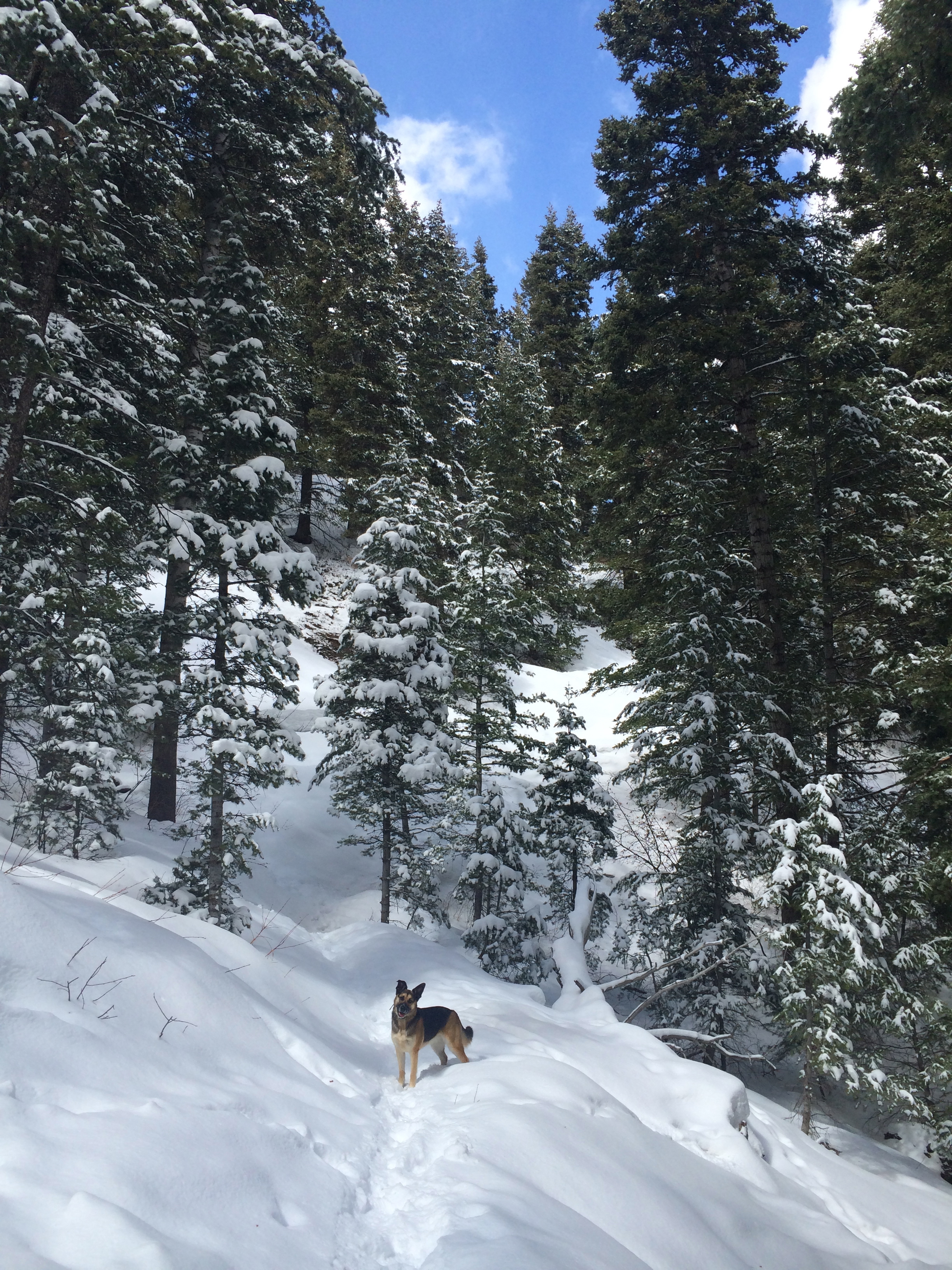 Last week, I wandered over to the snowy side of our valley for a hike under the pines.